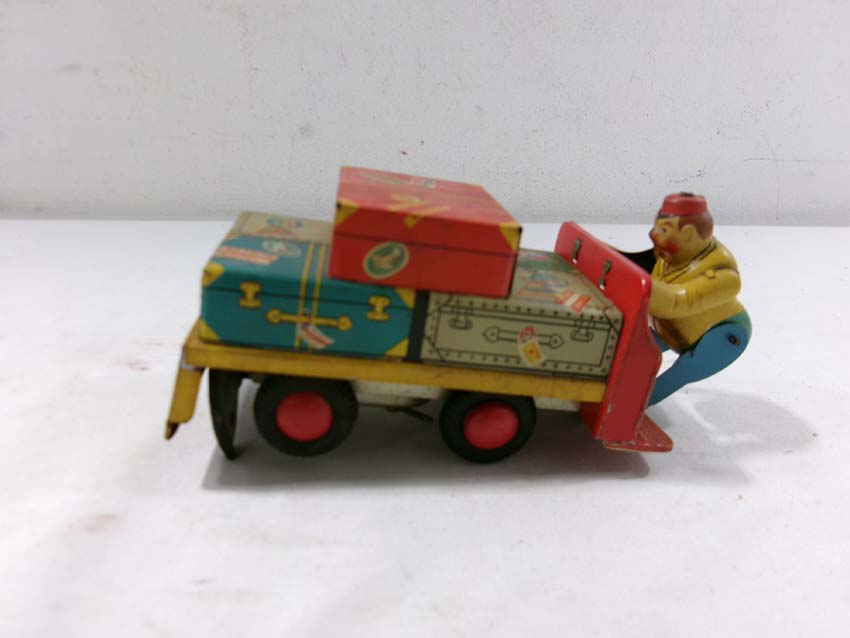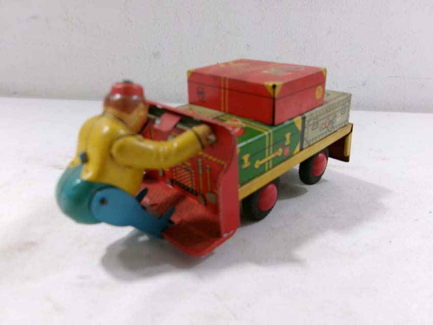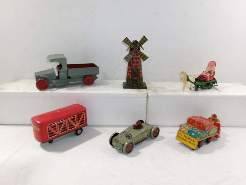 These are six Assorted Manufacturers Tin Toys (6"L - 9"L, 3 wind-up). No Boxes. Examine closely; what is pictured is what you will receive. Please add $40.00 for US-48 Shipping and Insurance (more west of the Mississippi).