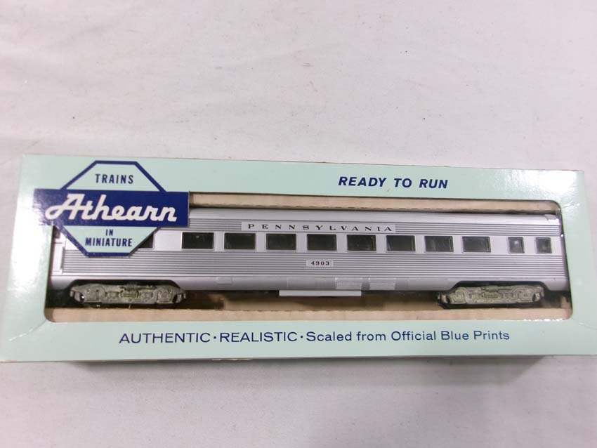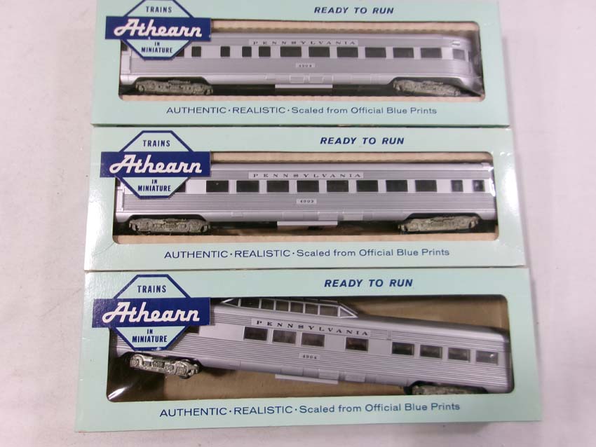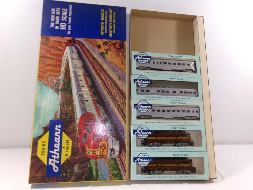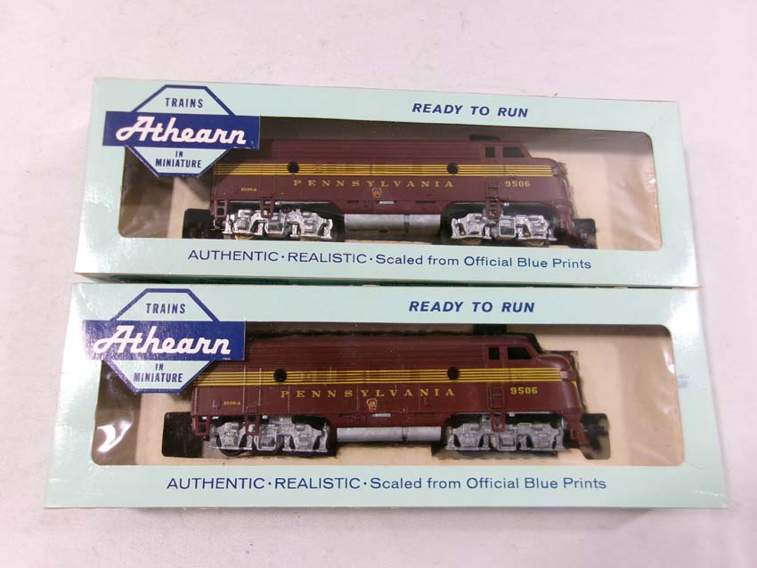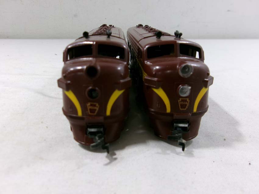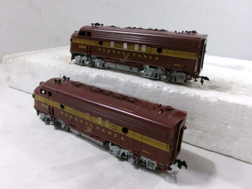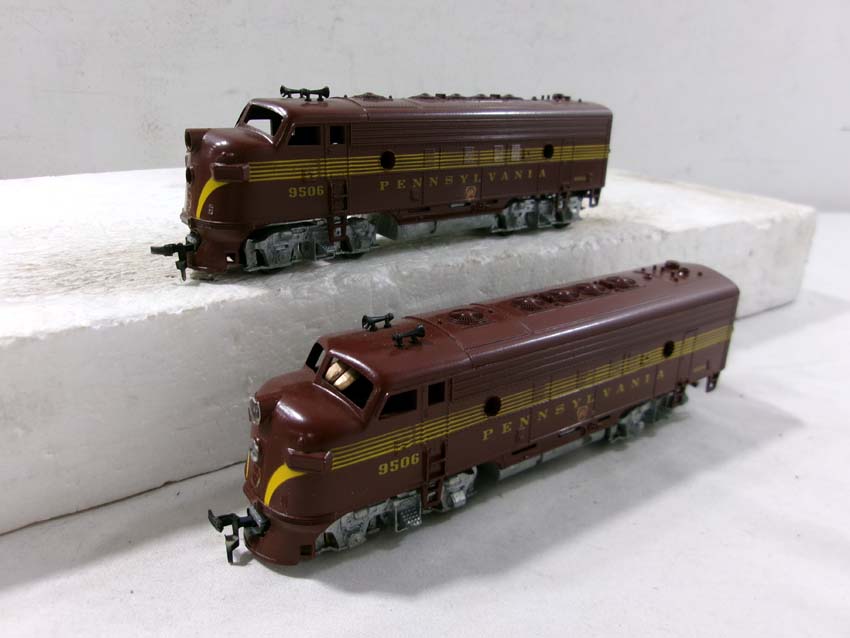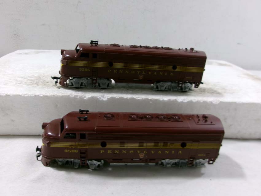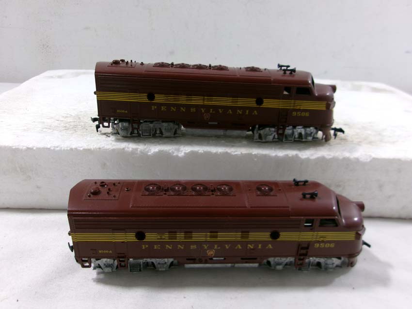 These are the Athearn HO Gauge PRR #9506 F3 AA Diesel Engines and #9503/9504/9504 Passenger Set. Original Boxes. Examine closely; what is pictured is what you will receive. Please add $35.00 for US-48 Shipping and Insurance (more west of the Mississippi). |