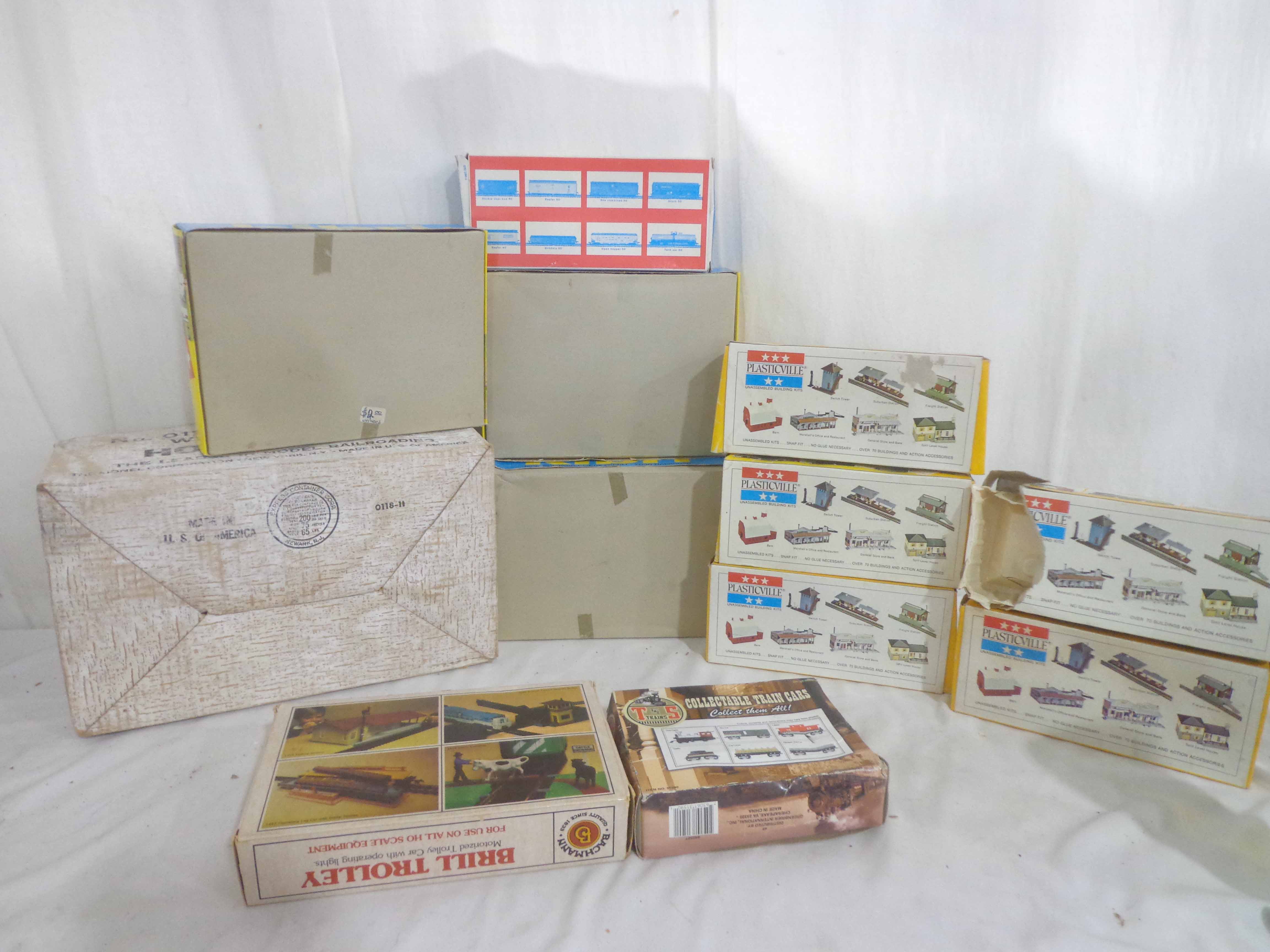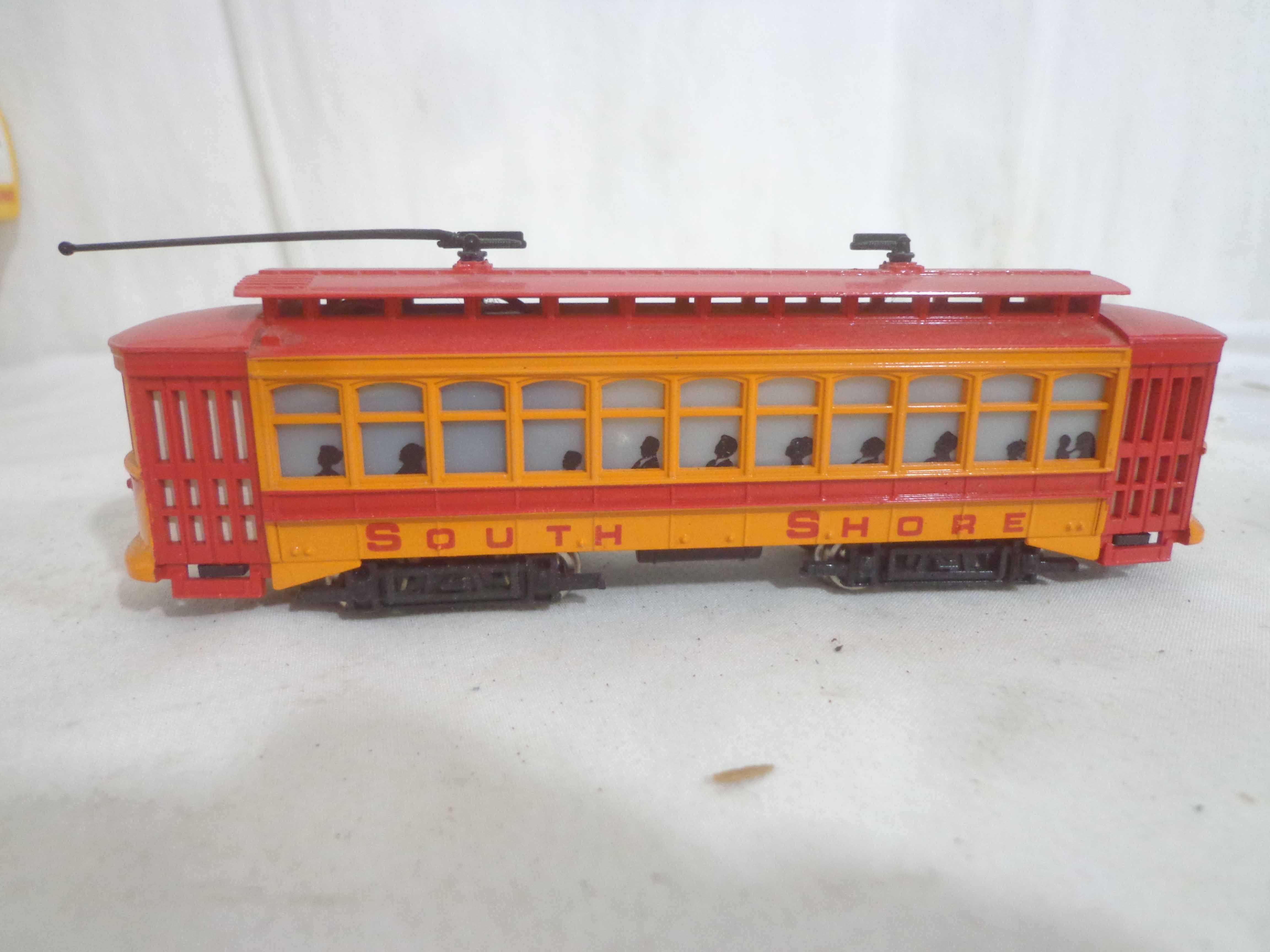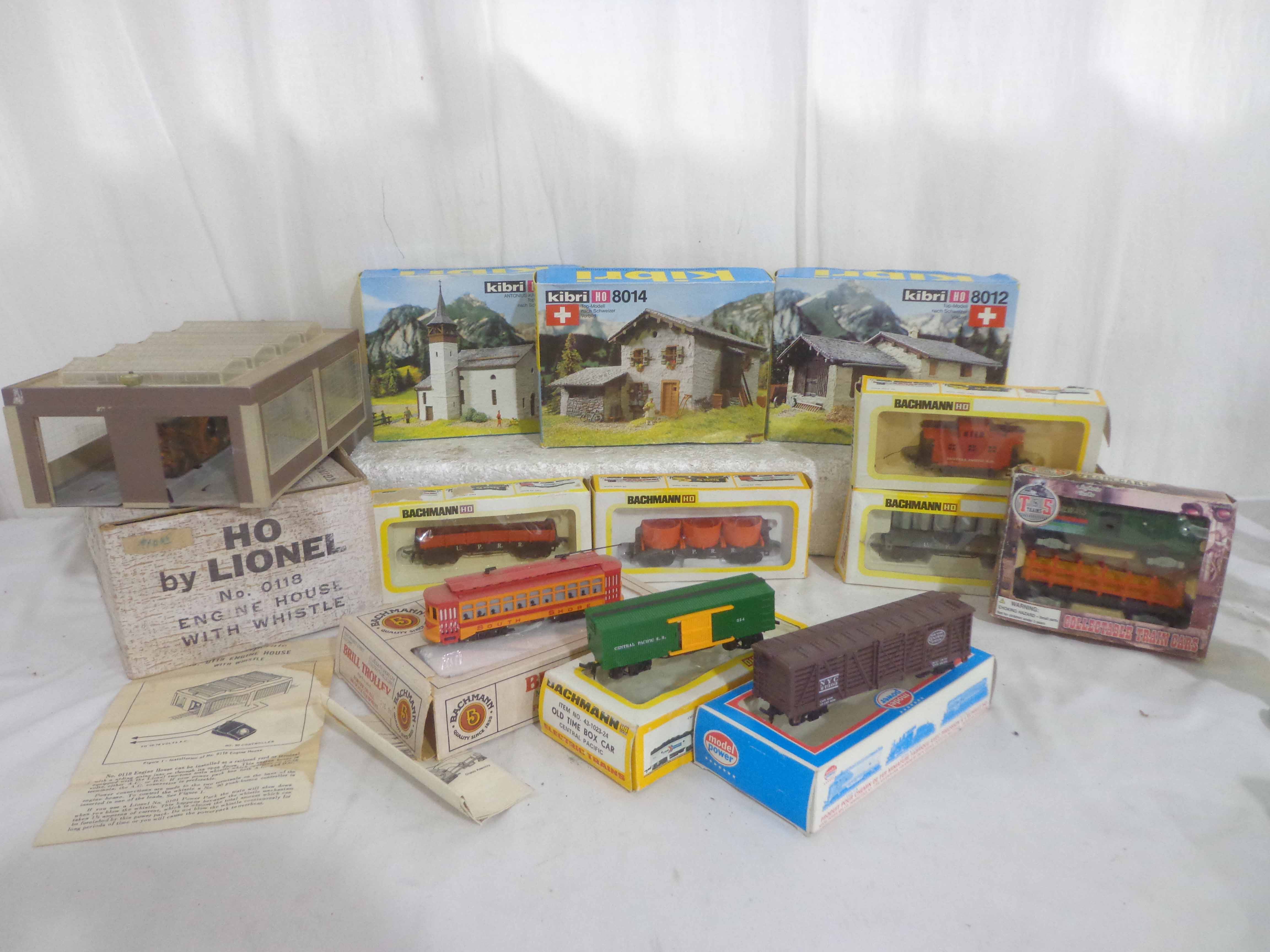 These are the Assorted Manufactures HO Gauge #1312 South Shore Line Trolley, Lionel #0118 Engine House with Whistle and ten Assorted Vehicles and Kits. Original Boxes. Examine closely; what is pictured is what you will receive. Please add $50.00 for US-48 Shipping and Insurance (more west of the Mississippi).