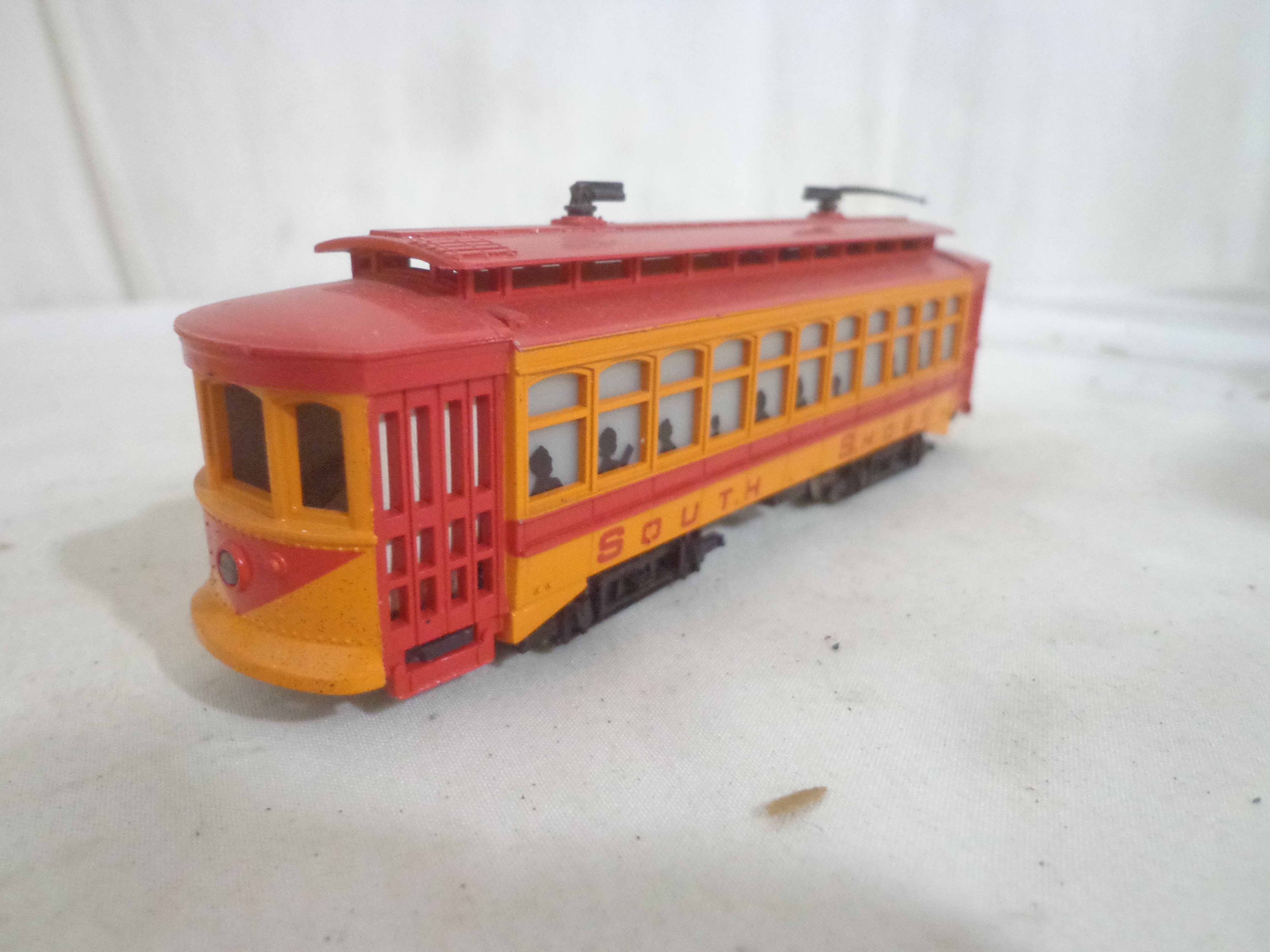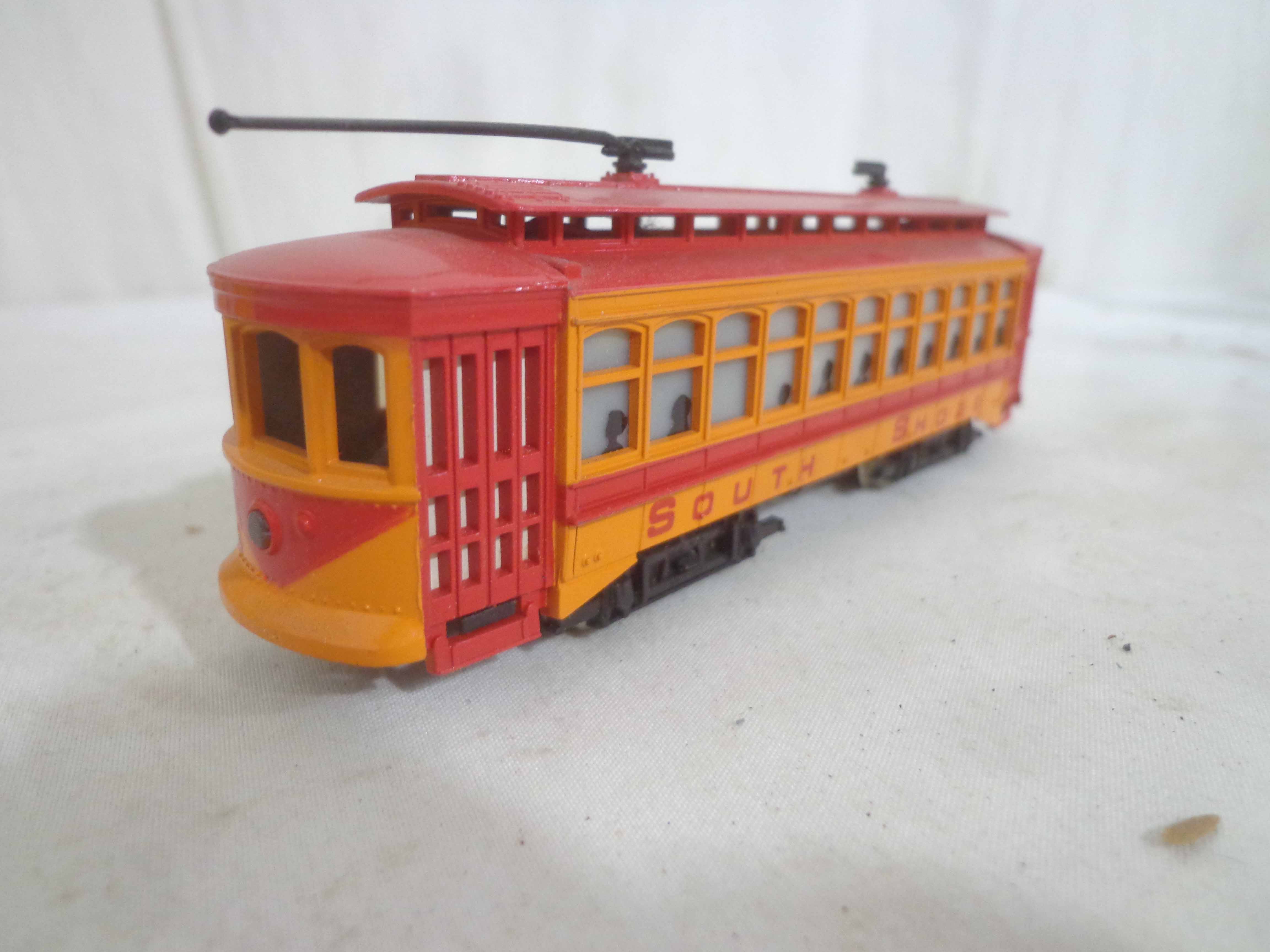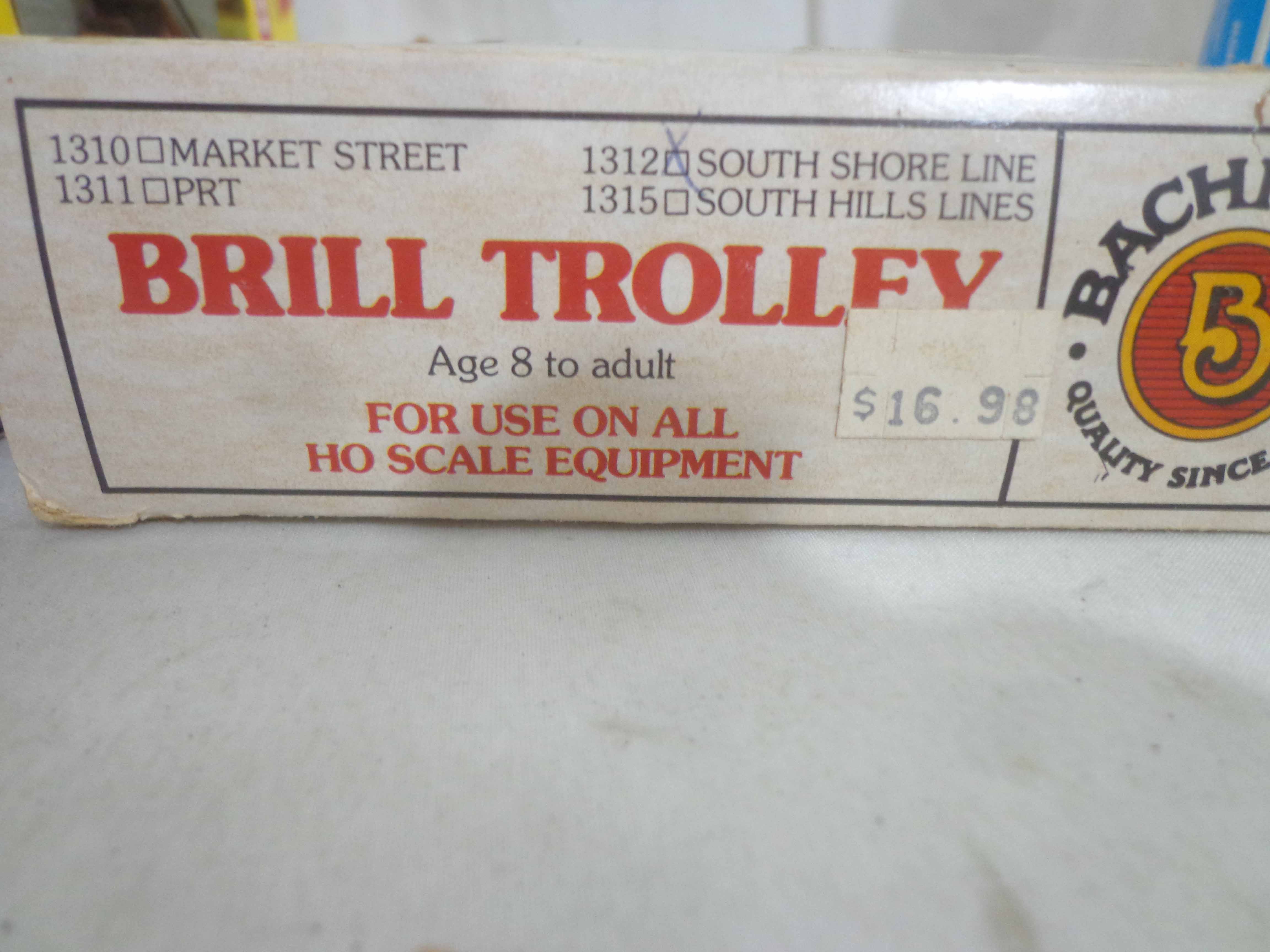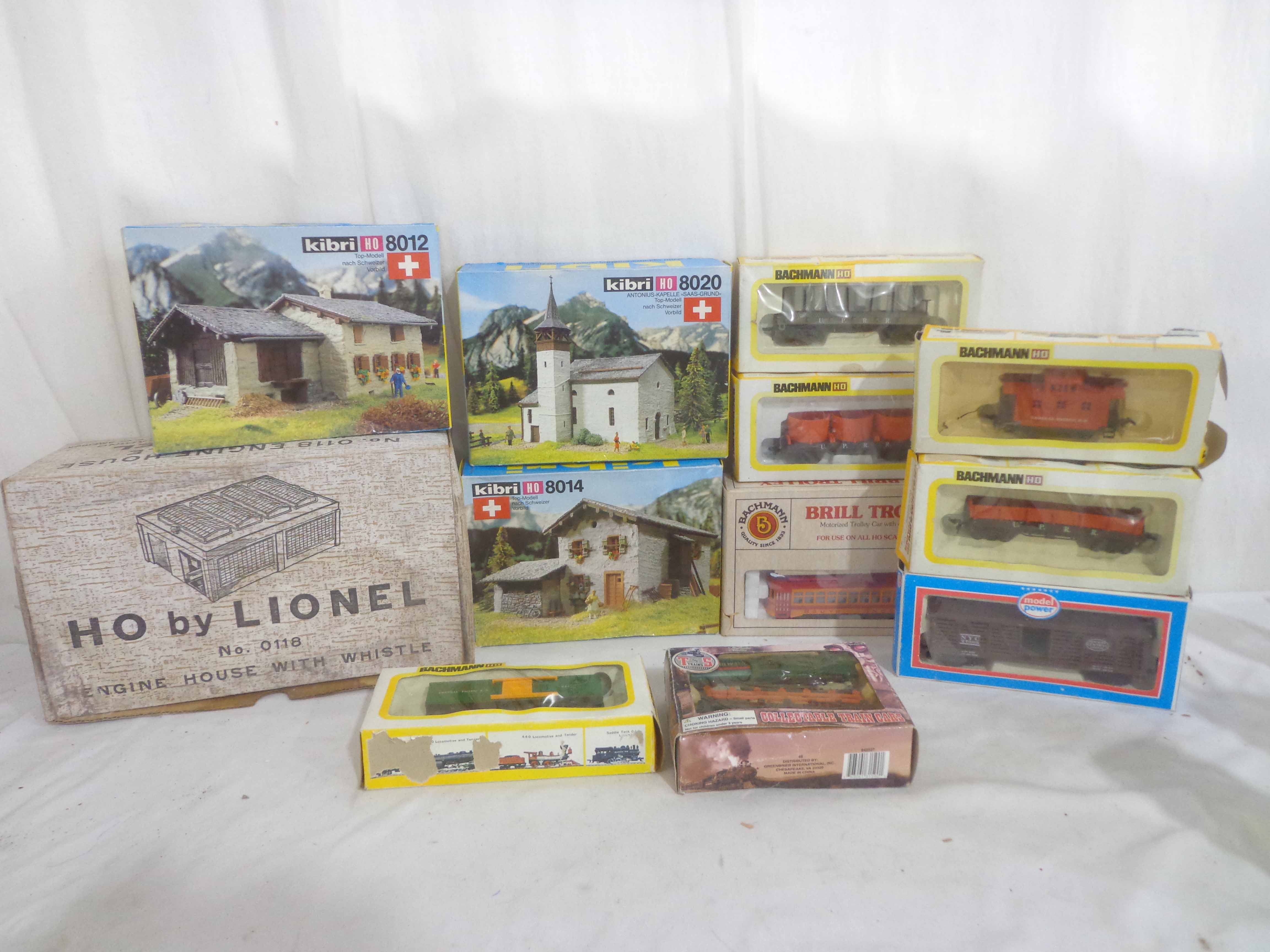 These are the Assorted Manufactures HO Gauge #1312 South Shore Line Trolley, Lionel #0118 Engine House with Whistle and ten Assorted Vehicles and Kits. Original Boxes. Examine closely; what is pictured is what you will receive. Please add $50.00 for US-48 Shipping and Insurance (more west of the Mississippi).