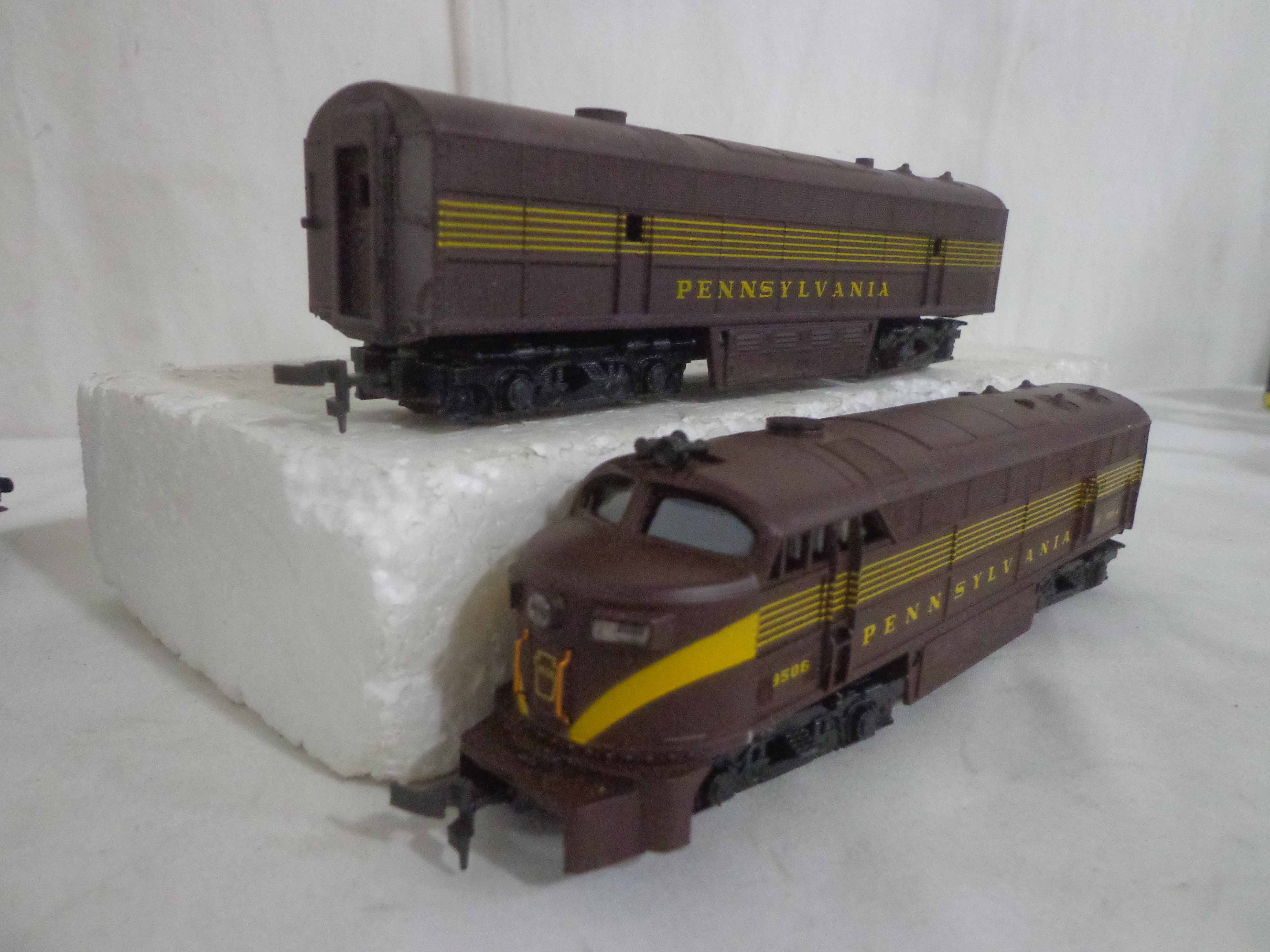 These are the AHM/Limo HO Gauge #9506 Pennsylvania AB Units and #8025 Electric Engine. Original Box. Examine closely; what is pictured is what you will receive. Please add $35.00 for US-48 Shipping and Insurance (more west of the Mississippi). |