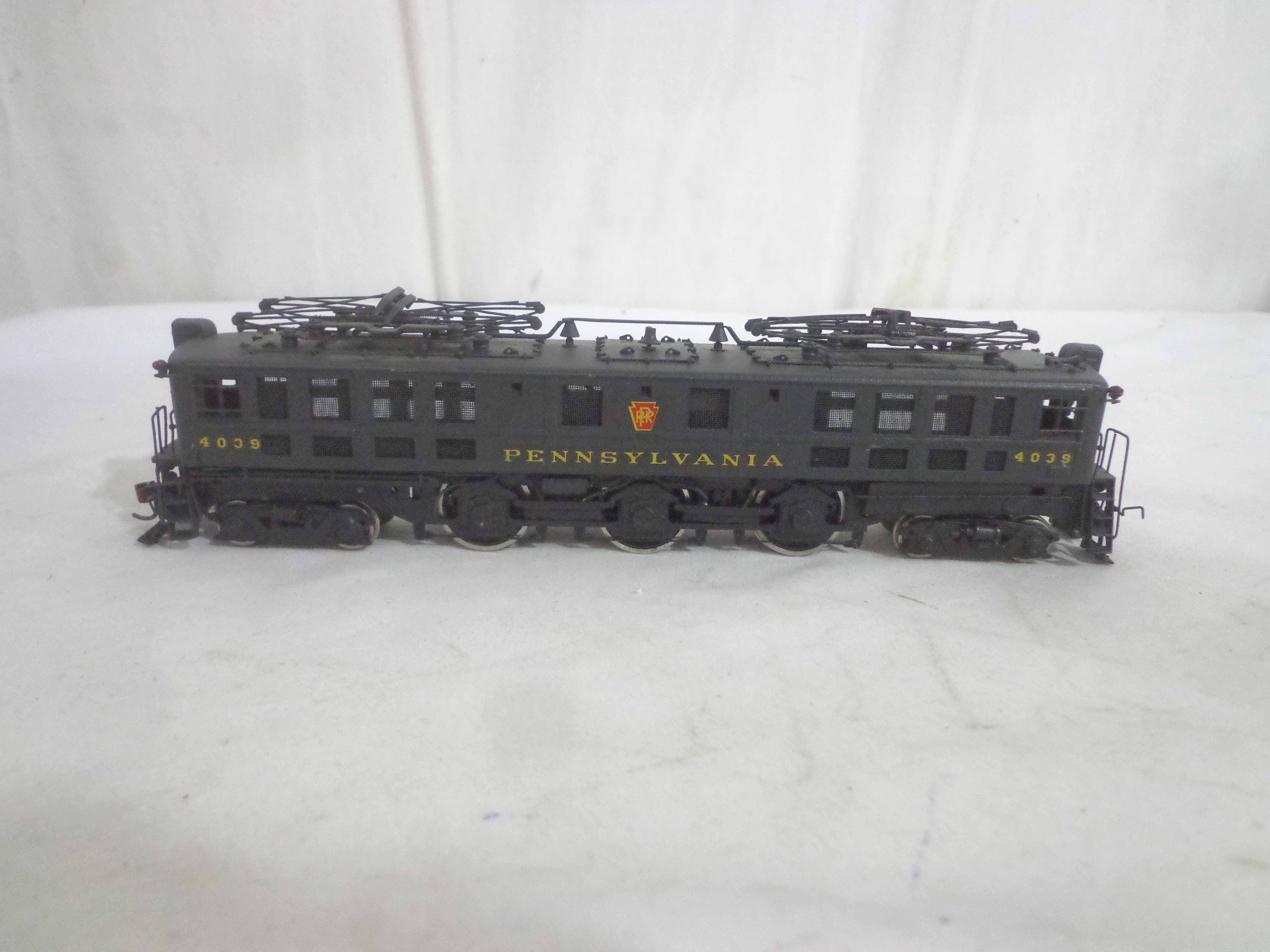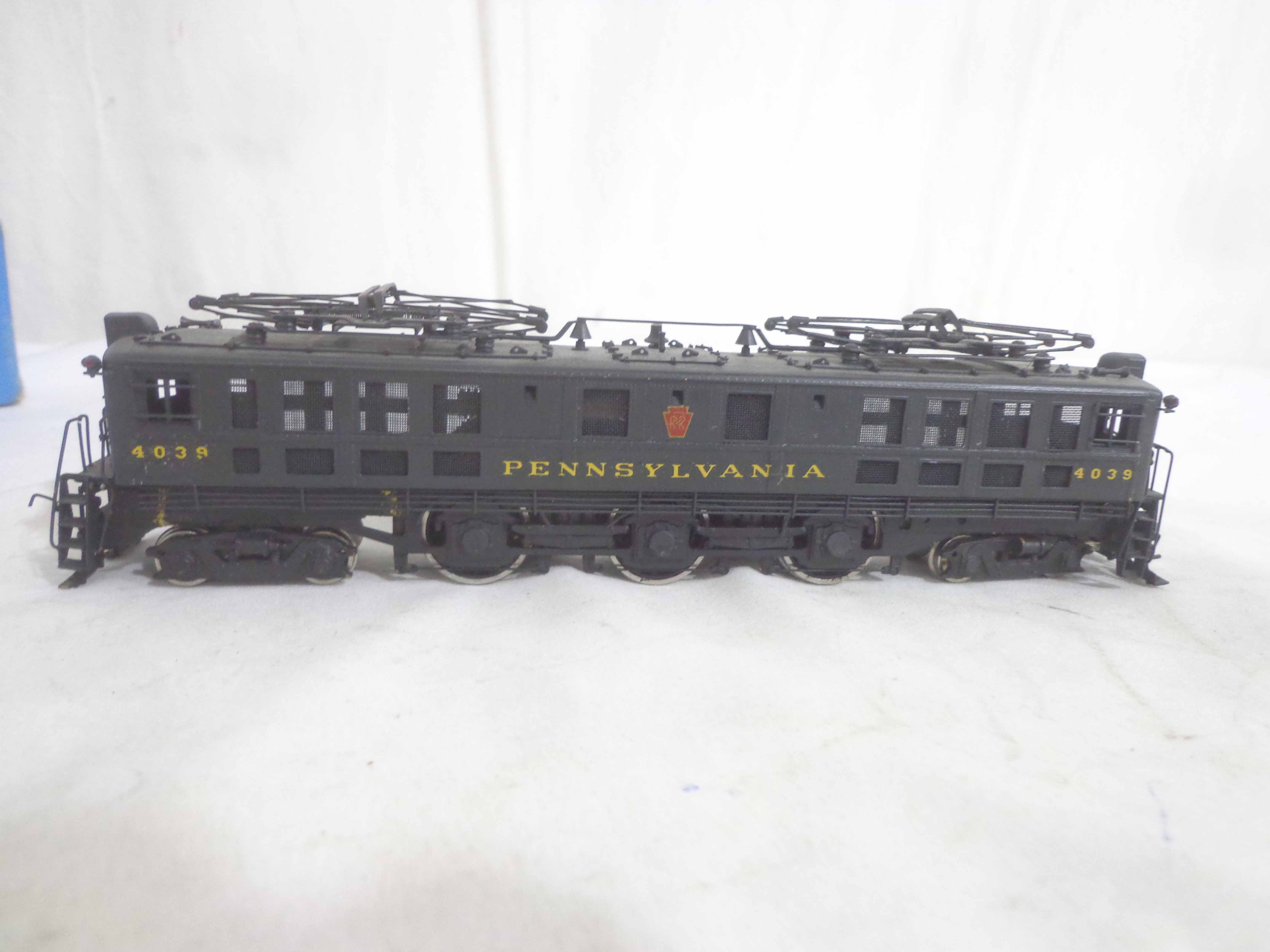 This is the Alco HO Gauge Brass #E-118 Pennsylvania P-5B Electric Engine. Original Box. Examine closely; what is pictured is what you will receive. Please add $30.00 for US-48 Shipping and Insurance (more west of the Mississippi).