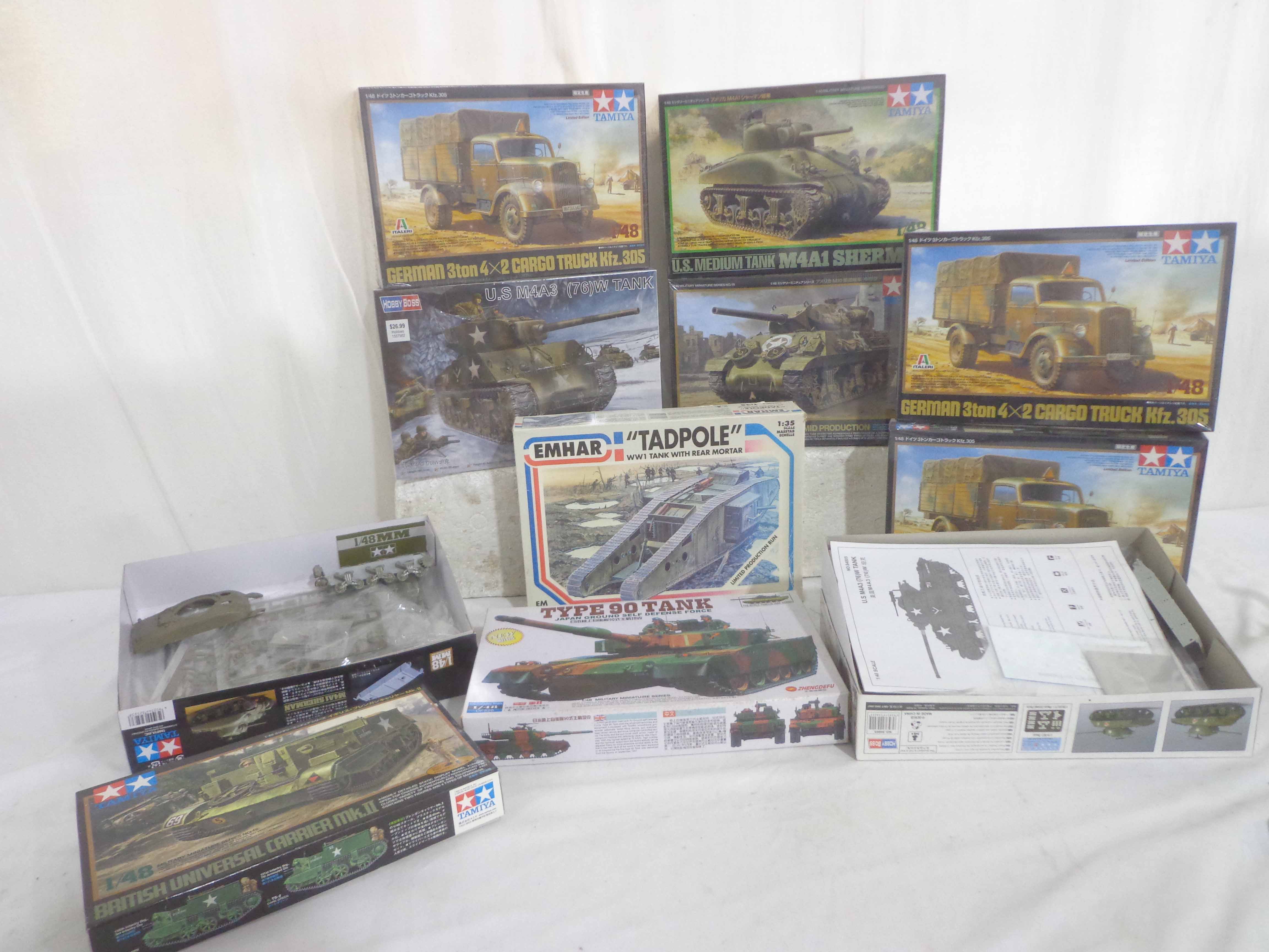 11 Assorted Manufactures 1:35/1:48 Scale Assorted Military Vehicle Kits/OBs