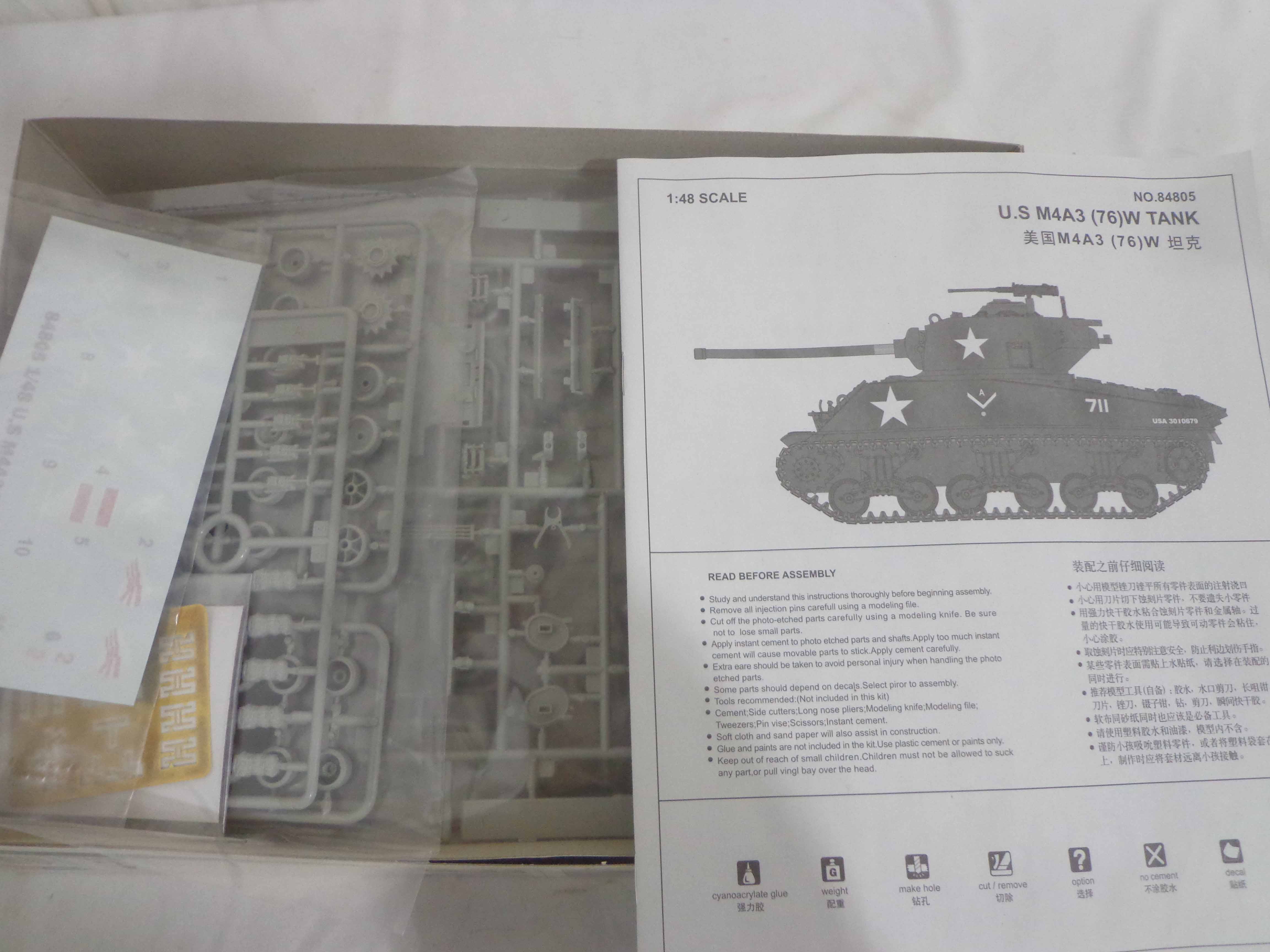 These are eleven Assorted 1:35/1:48 Scale Assorted Military Vehicle Model Kits that were made some time in the past. Original Boxes, six are sealed. Examine very, very closely; what is pictured is what you will receive. Please add $50.00 for US-48 Shipping and Insurance (more west of the Mississippi).