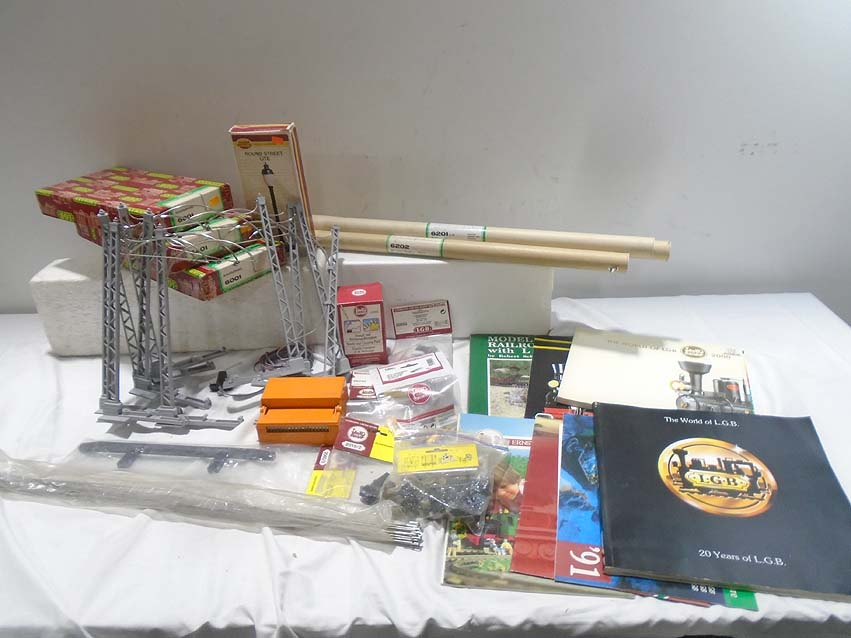 LGB G Gauge: 30+ Assorted Catenary Poles & Wires and Other Accessories and LGB Books/OBs