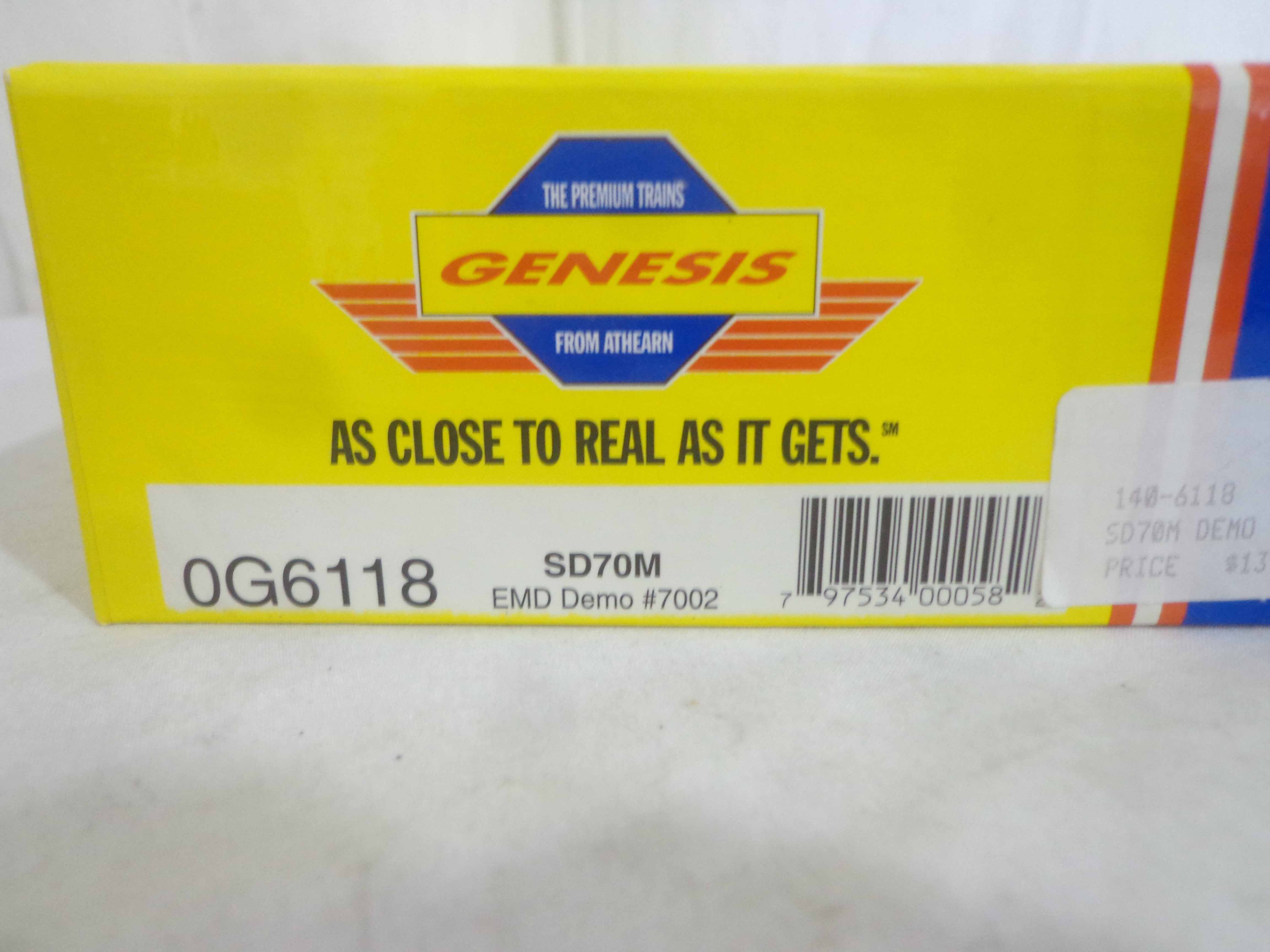 This is the Genesis HO Gauge #OG6118 SD70M EMD Demo Engine. Original Box. What you see is what you get. Please add $30.00 for US-48 Shipping and Insurance (more if west of the Mississippi).