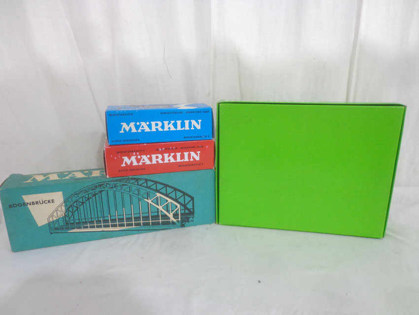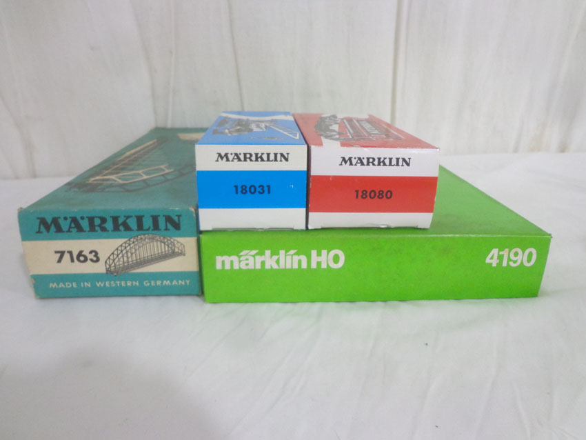 These are the Marklin HO Gauge #4190 Set of 3 Passenger Cars, #18080 Double Decker Bus, #18031 Magirus Crane Truck and #7163 Bridge. Original Boxes. Examine closely; what is pictured is what you will receive. All Original in our Opinion. Please add $45.00 for US-48 Shipping and Insurance (more west of the Mississippi). |