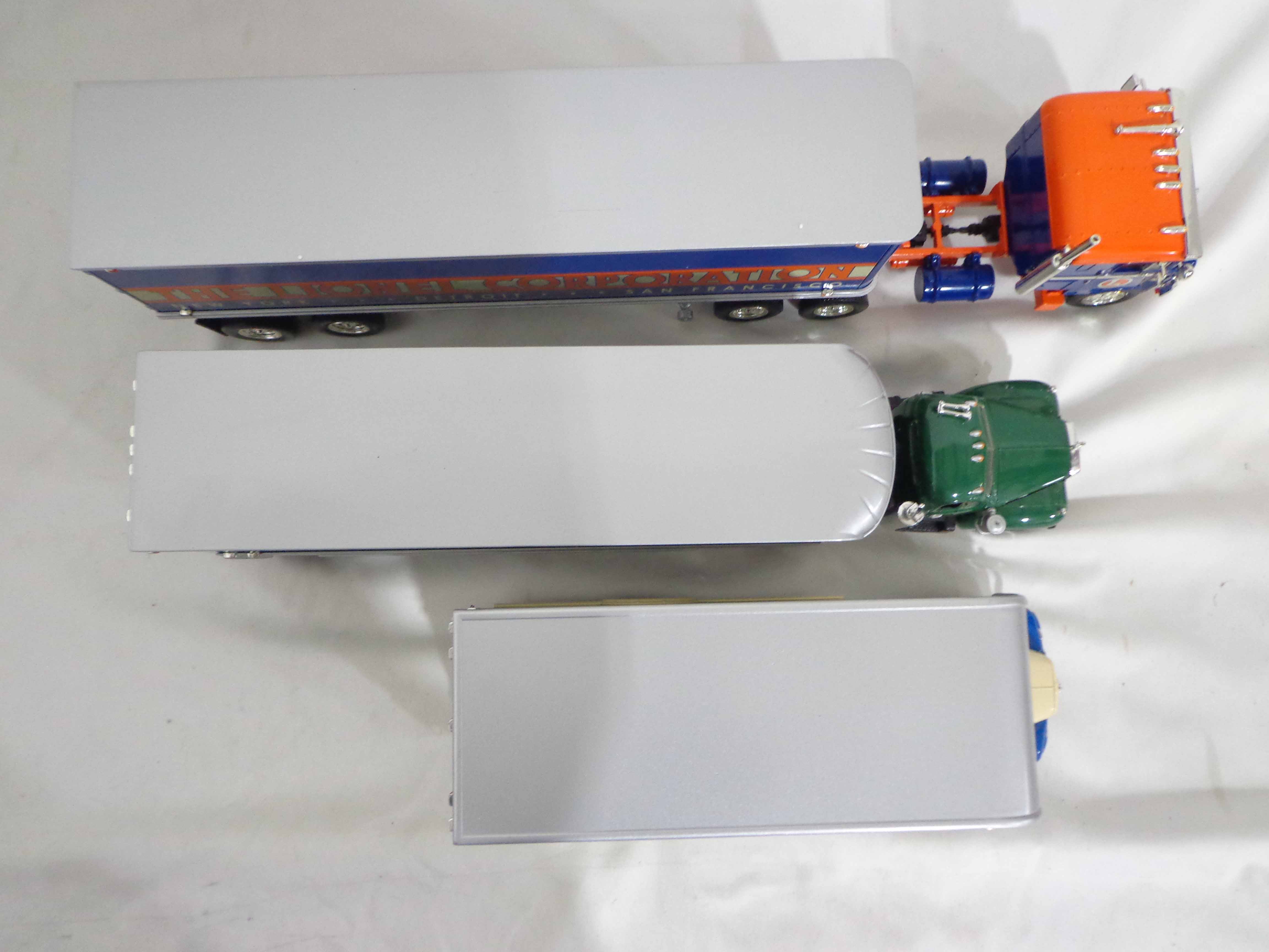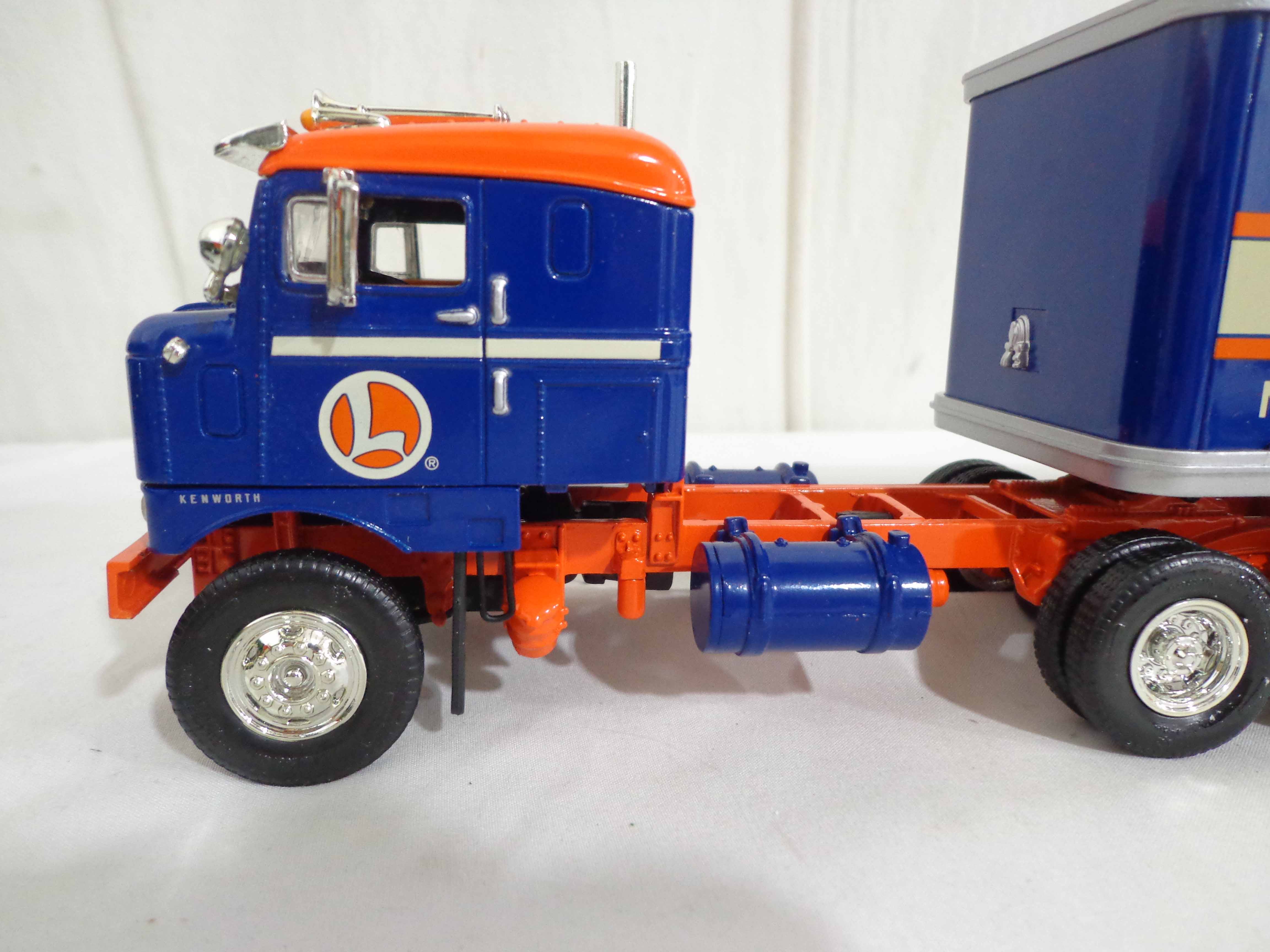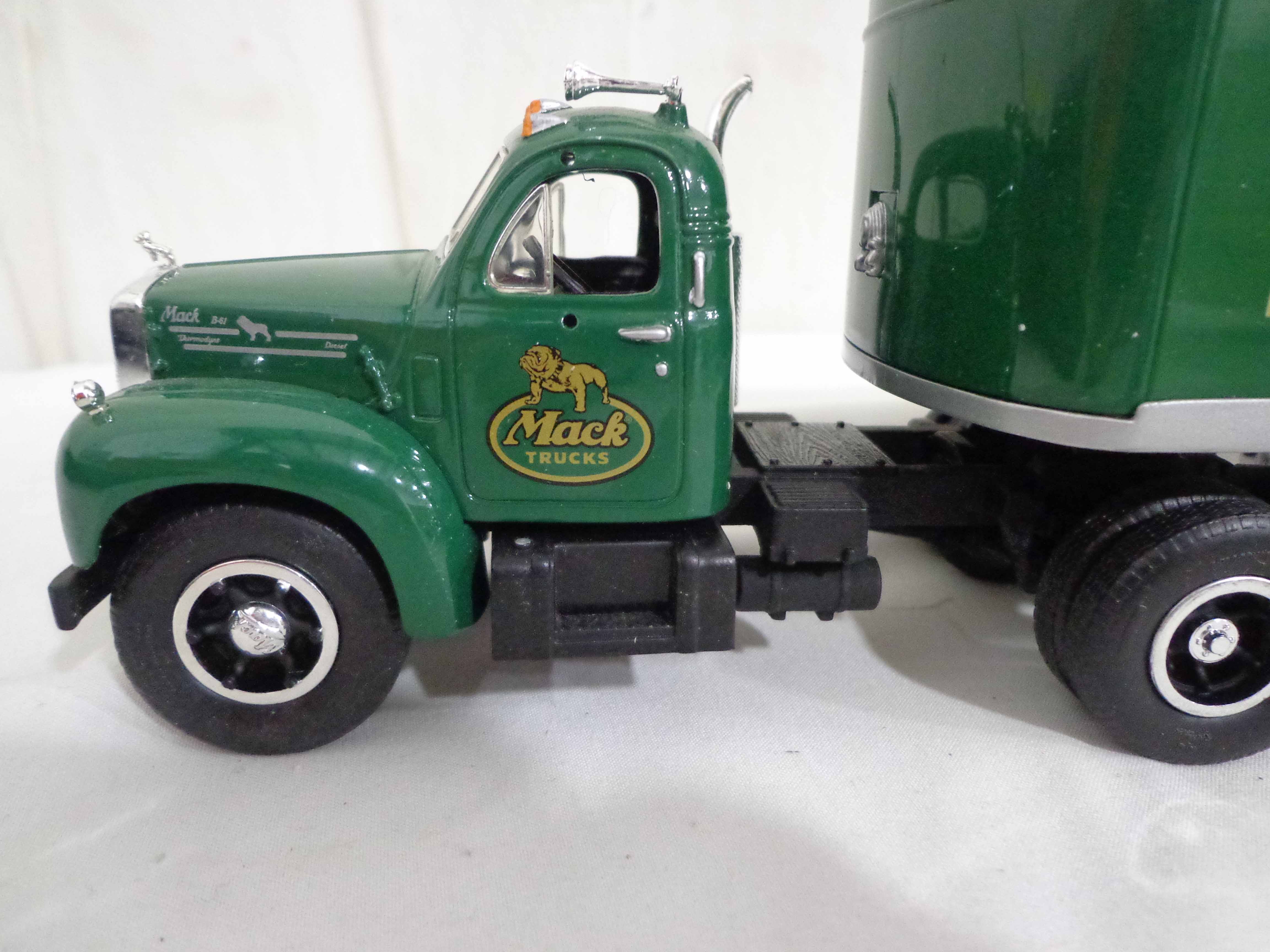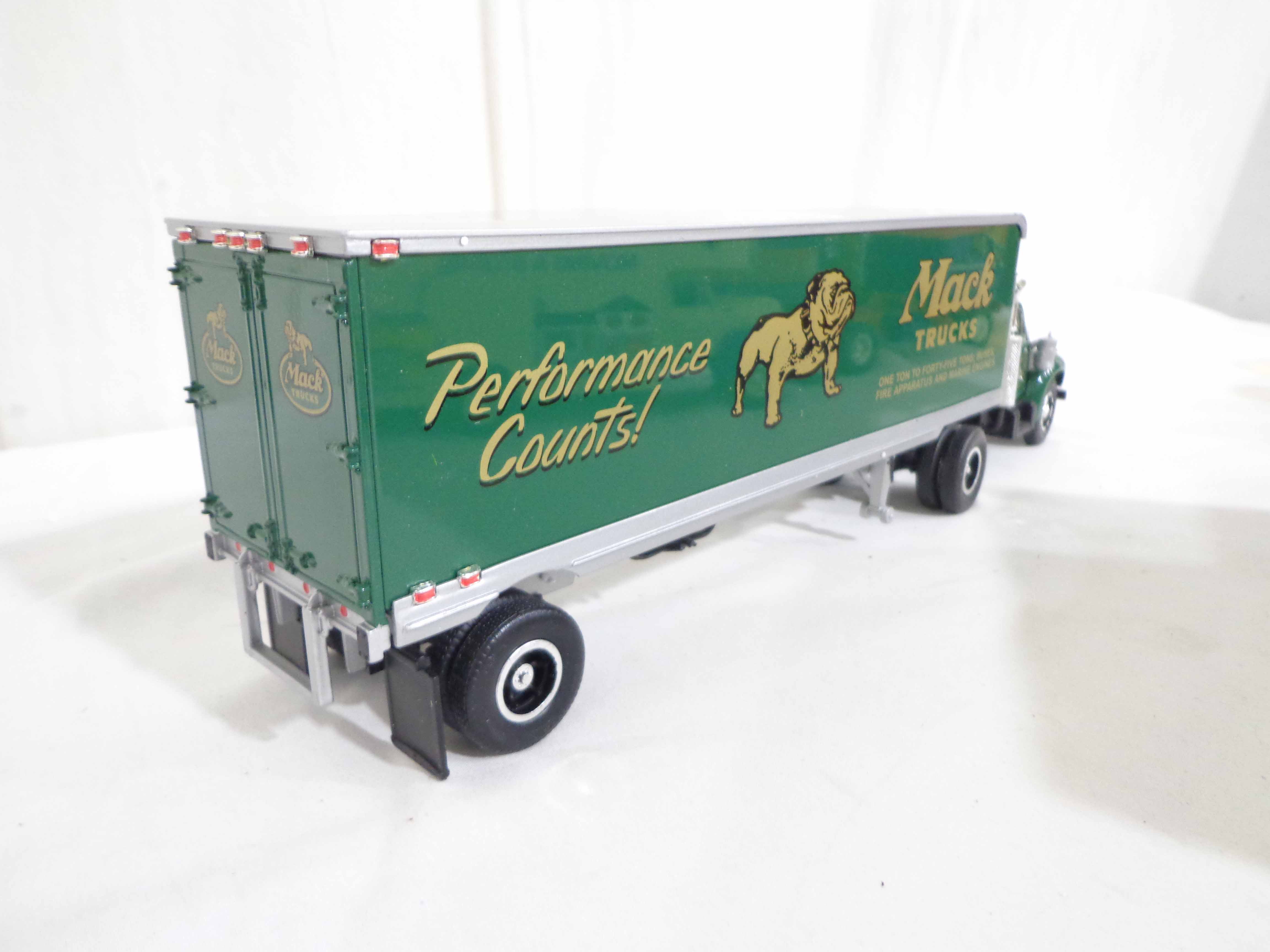 First Gear/Woodland Scenes 1:34 Scale #19-1671 International Moving Van, #19-0117 Mack Tractor Trailer, #19-1833 Bull Nose Lionel Tractor Trailer and 15 Plastic Rock Molds/OBs