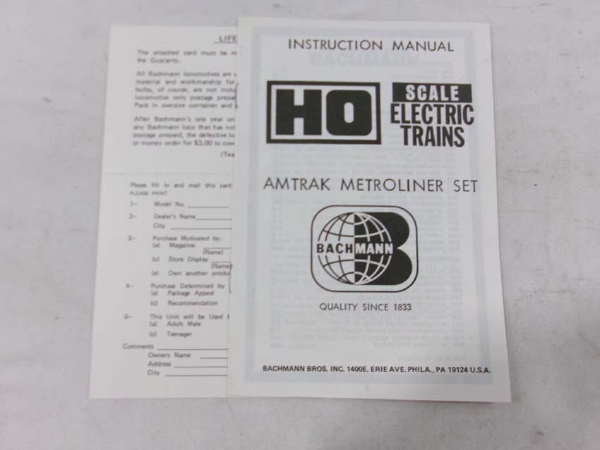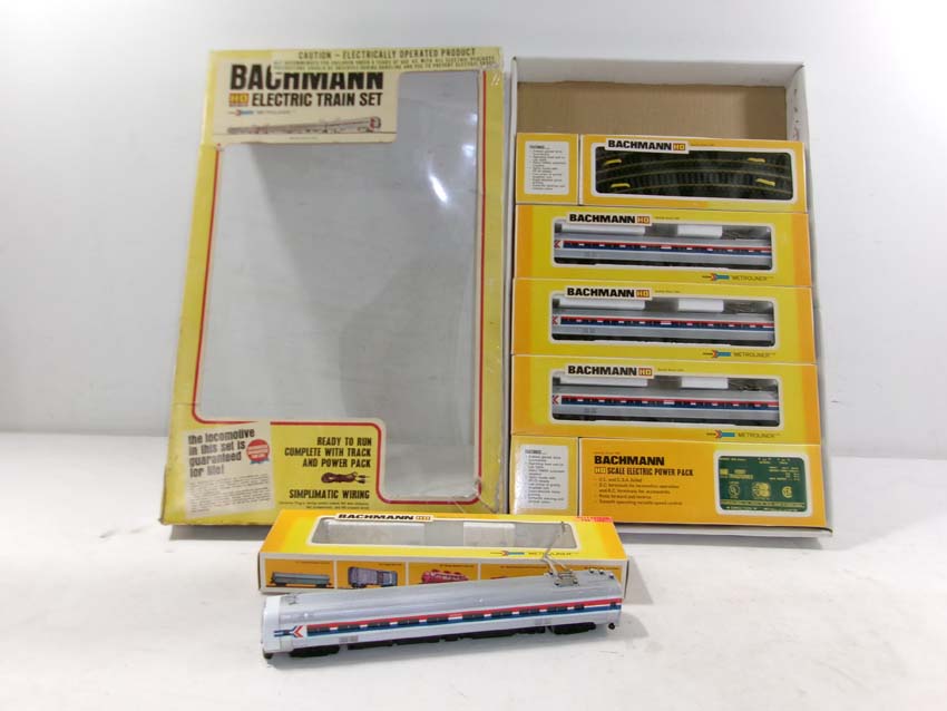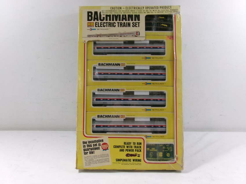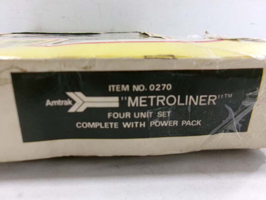 This is the #0270 Amtrak Metroliner 4-Unit Passenger Set that Bachmann made in HO Gauge some time in the past. Original Boxes. Examine closely; what is pictured is what you will receive. Please add $35.00 for US-48 Shipping and Insurance (more west of the Mississippi).