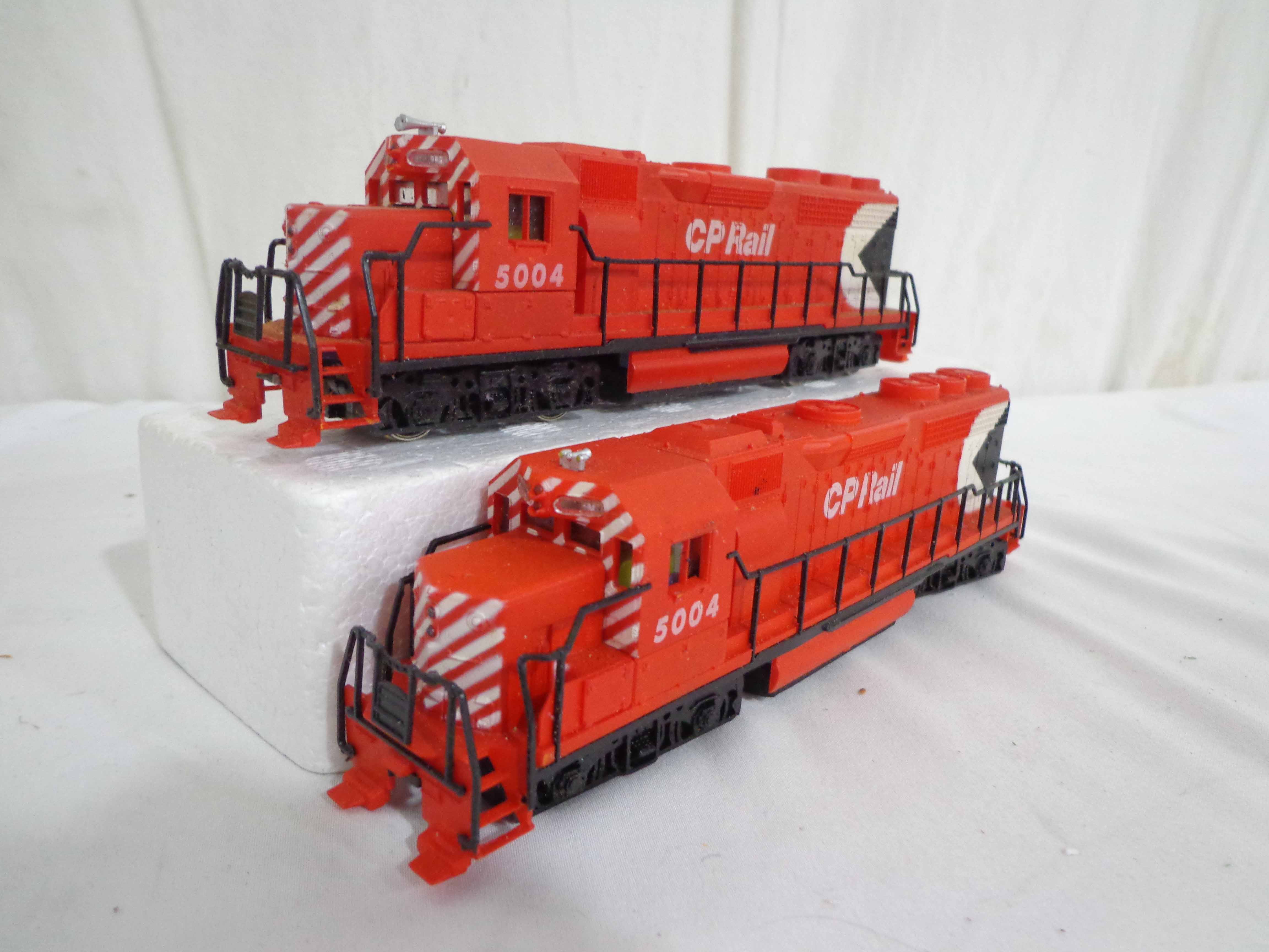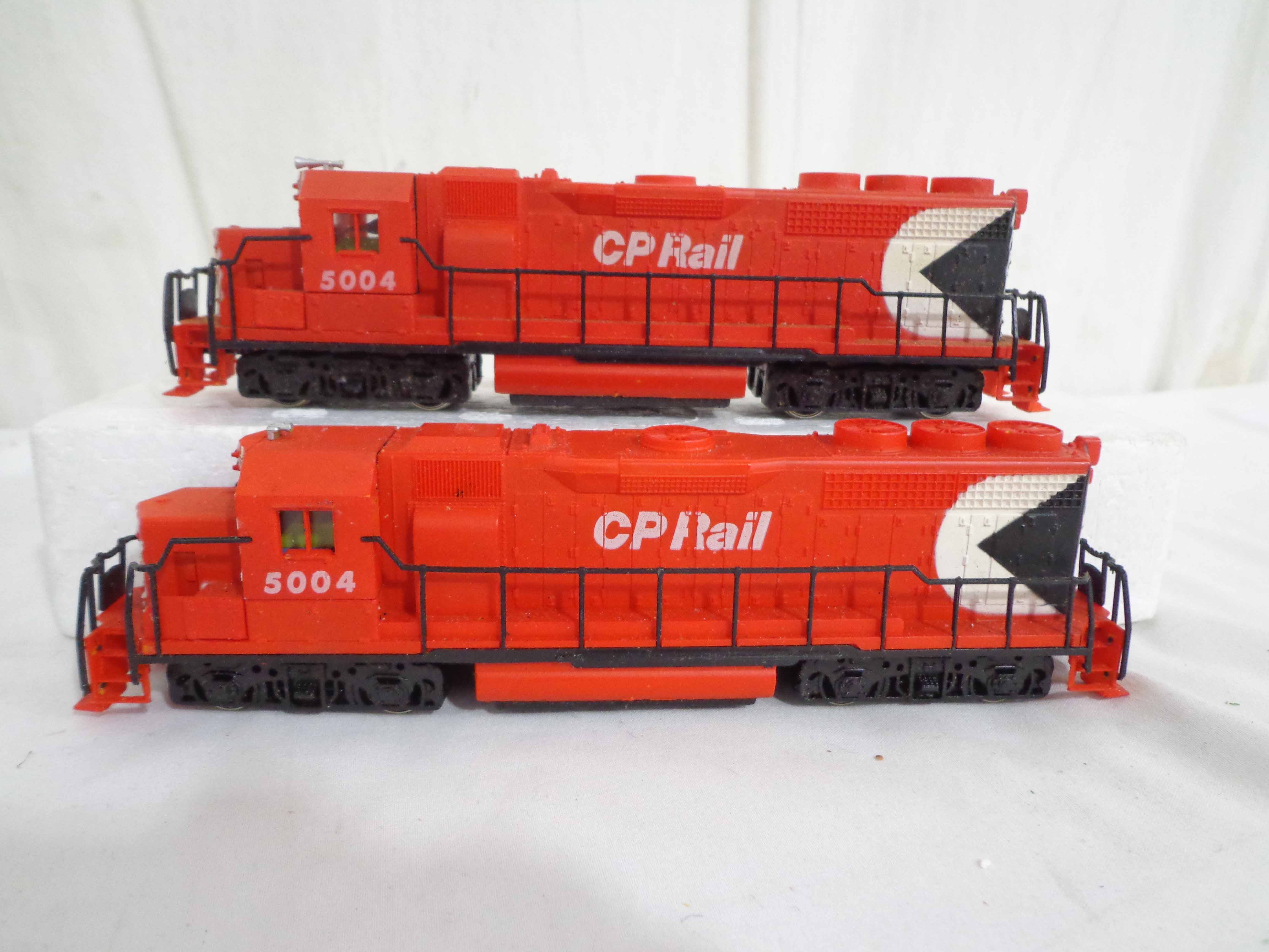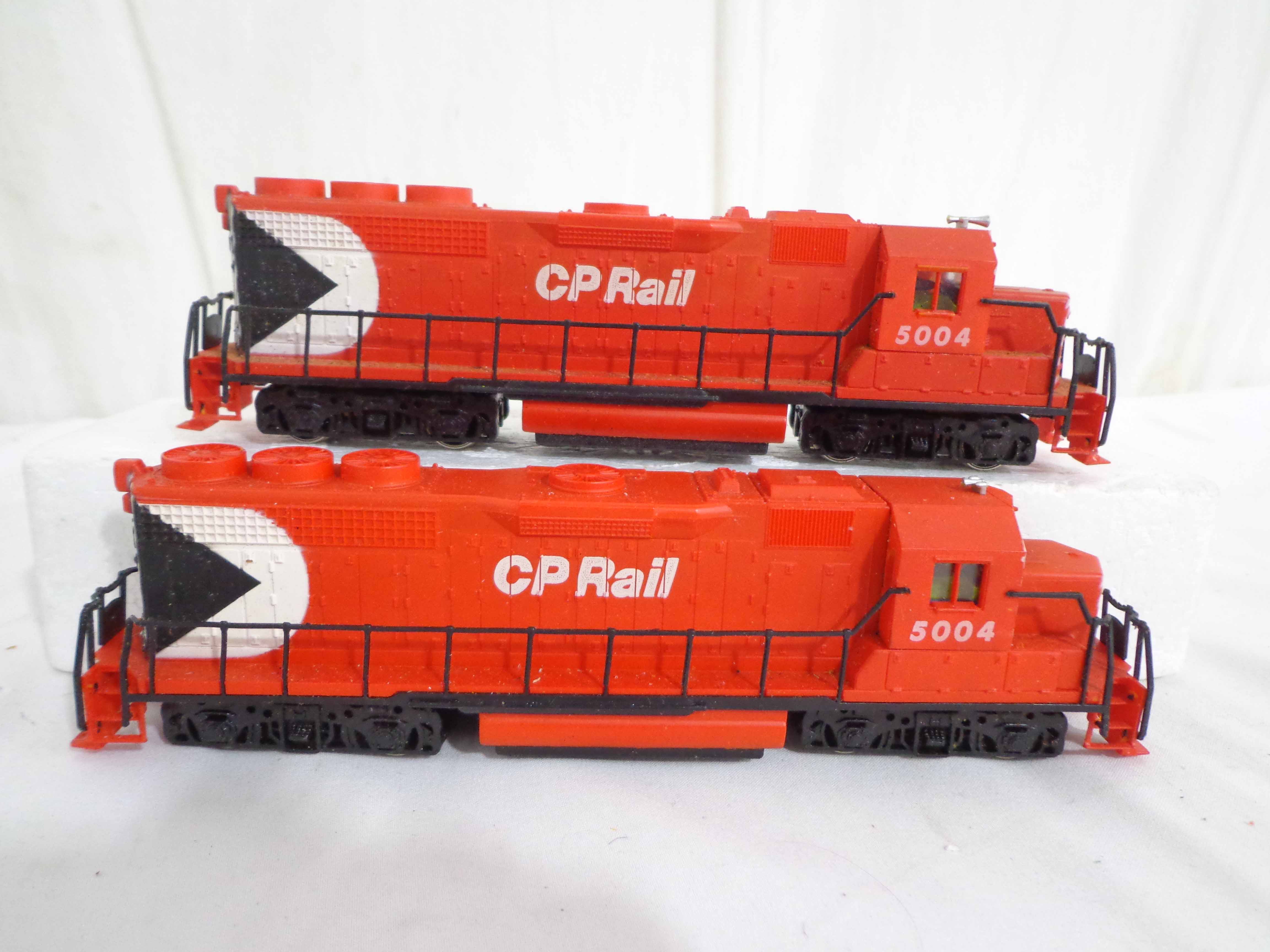 These are the #0272 New Haven Engine, #8213 New York Central Engine, two #5004 CP Rail Engines, Great Northern Engine and #1184/Observation Passenger Cars that Assorted Manufactures made in HO Gauge in the past. Original Box. Examine closely; what is pictured is what you will receive. Please add $40.00 for US-48 Shipping and Insurance (more west of the Mississippi).