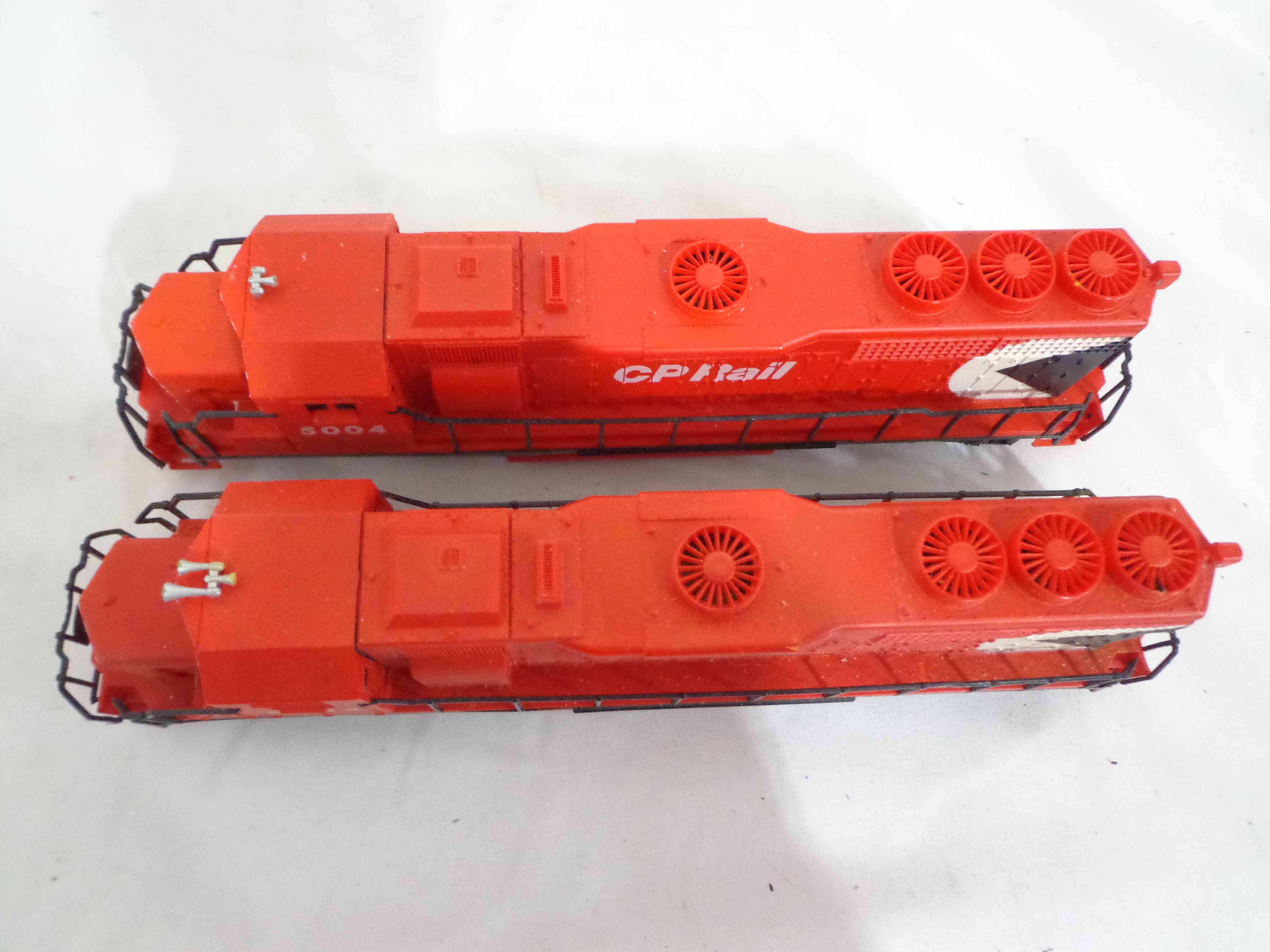 Assorted Manufactures HO Gauge: #0272 New Haven Engine, #8213 New York Central Engine, 2 #5004 CP Rail Engines, Great Northern Engine and #1184/Observation Passenger Cars/OB