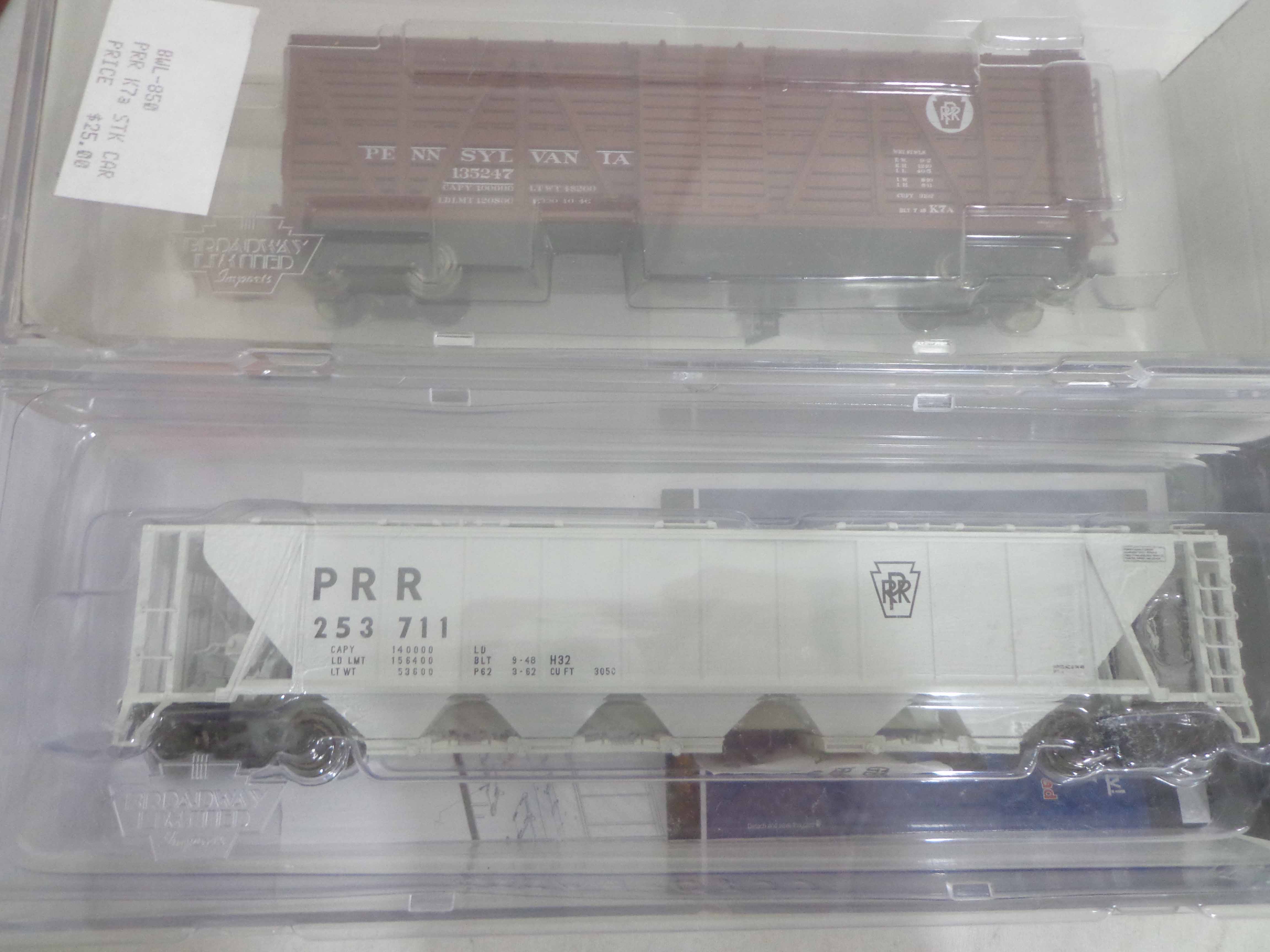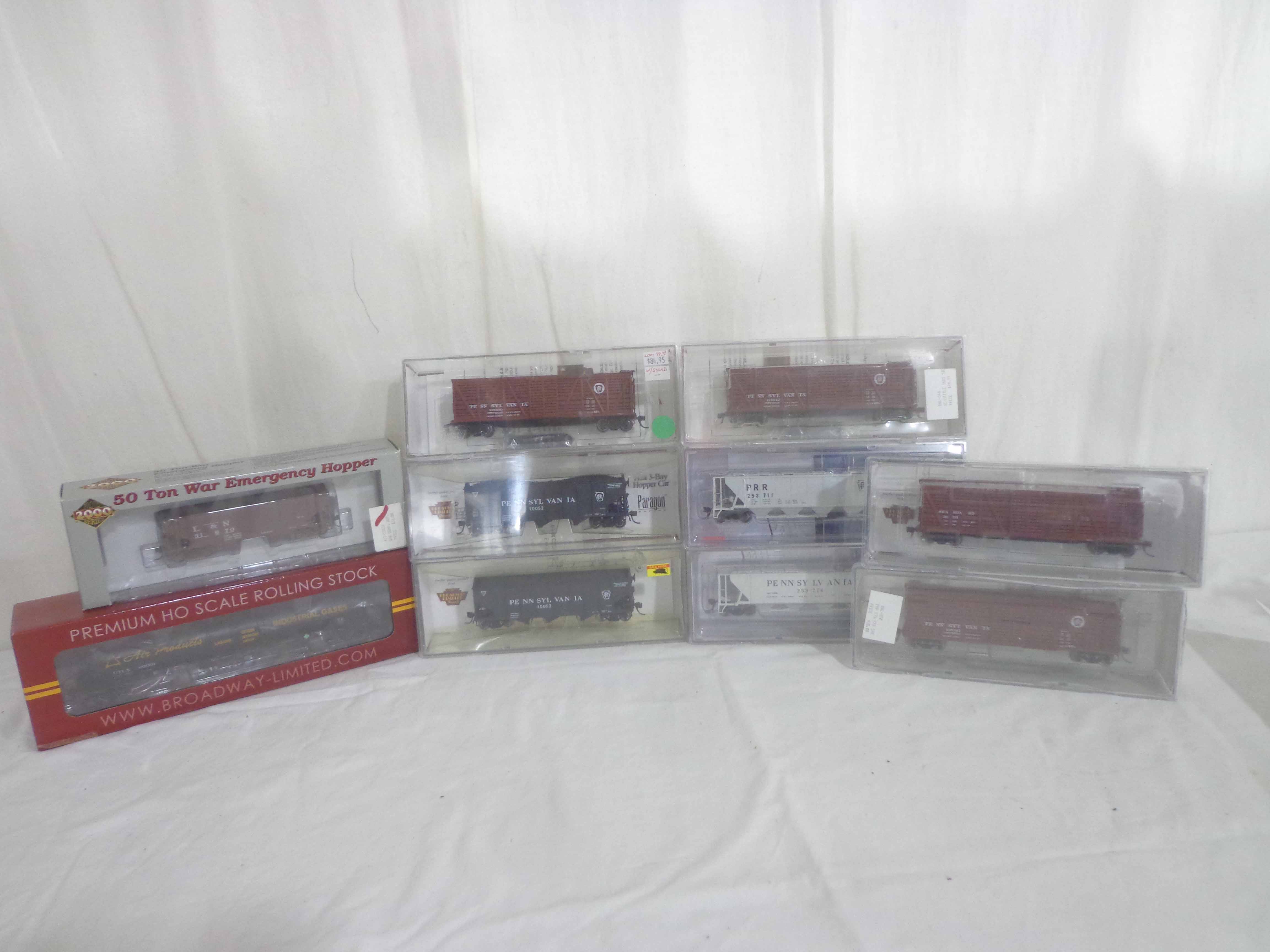 These are ten Assorted Broadway Limited/Life-Like HO Gauge Assorted Freight Cars. Original Boxes/Plastic Cases. Examine closely; what is pictured is what you will receive. Please add $40.00 for US-48 Shipping and Insurance (more west of the Mississippi). |
