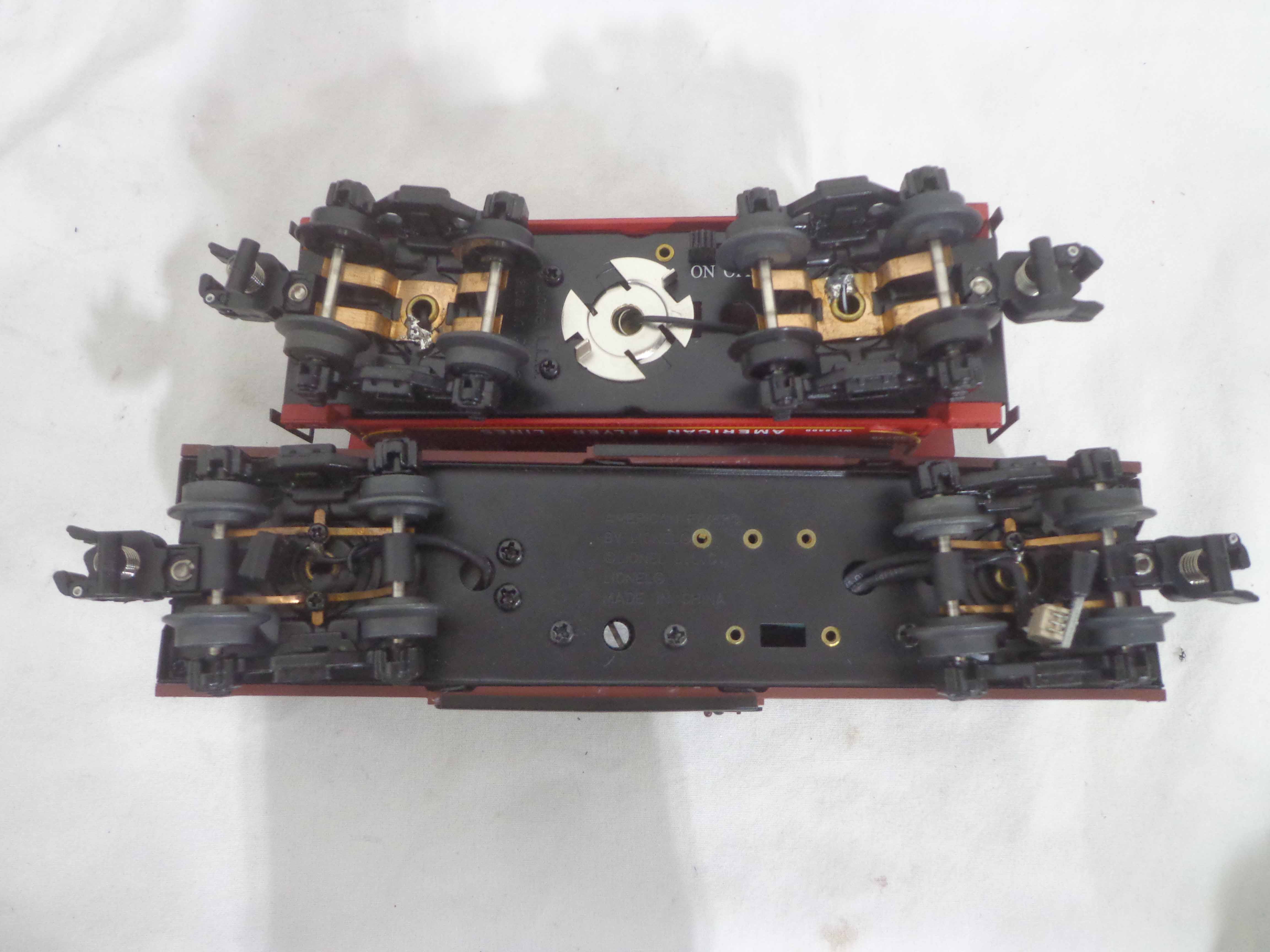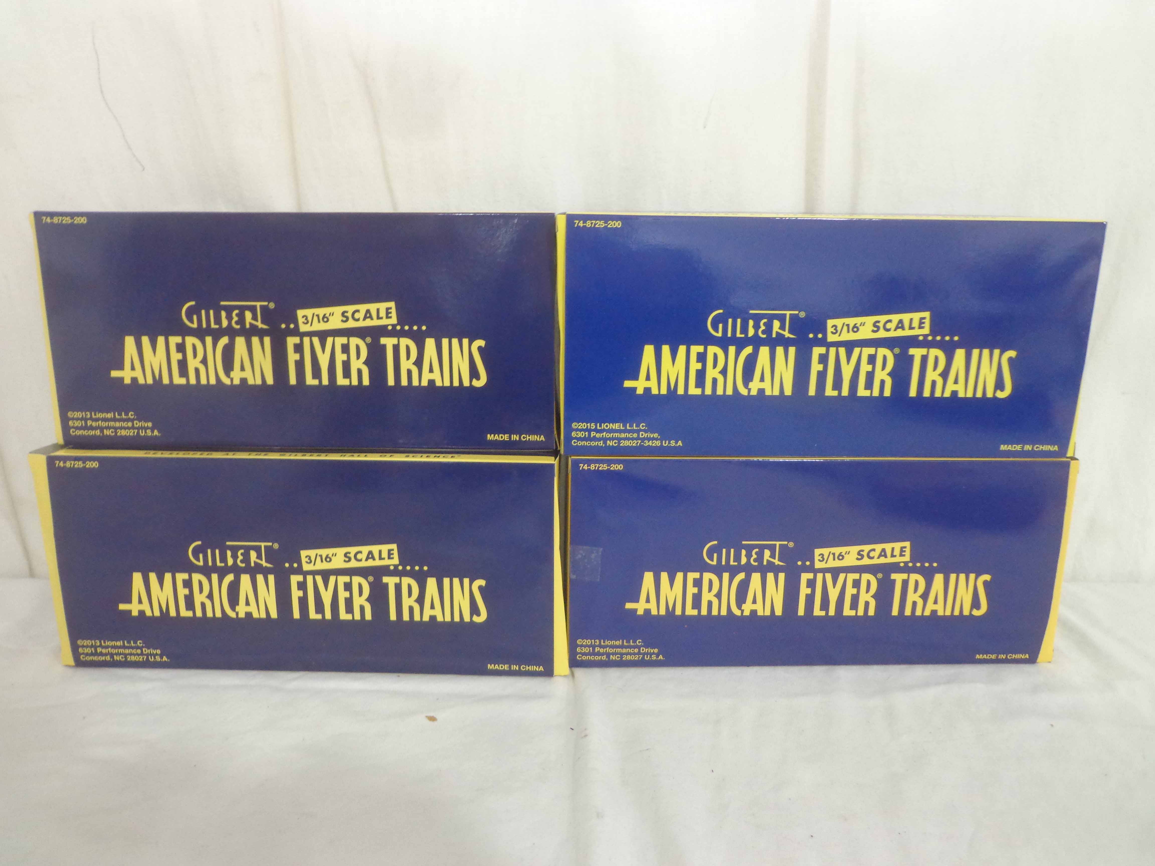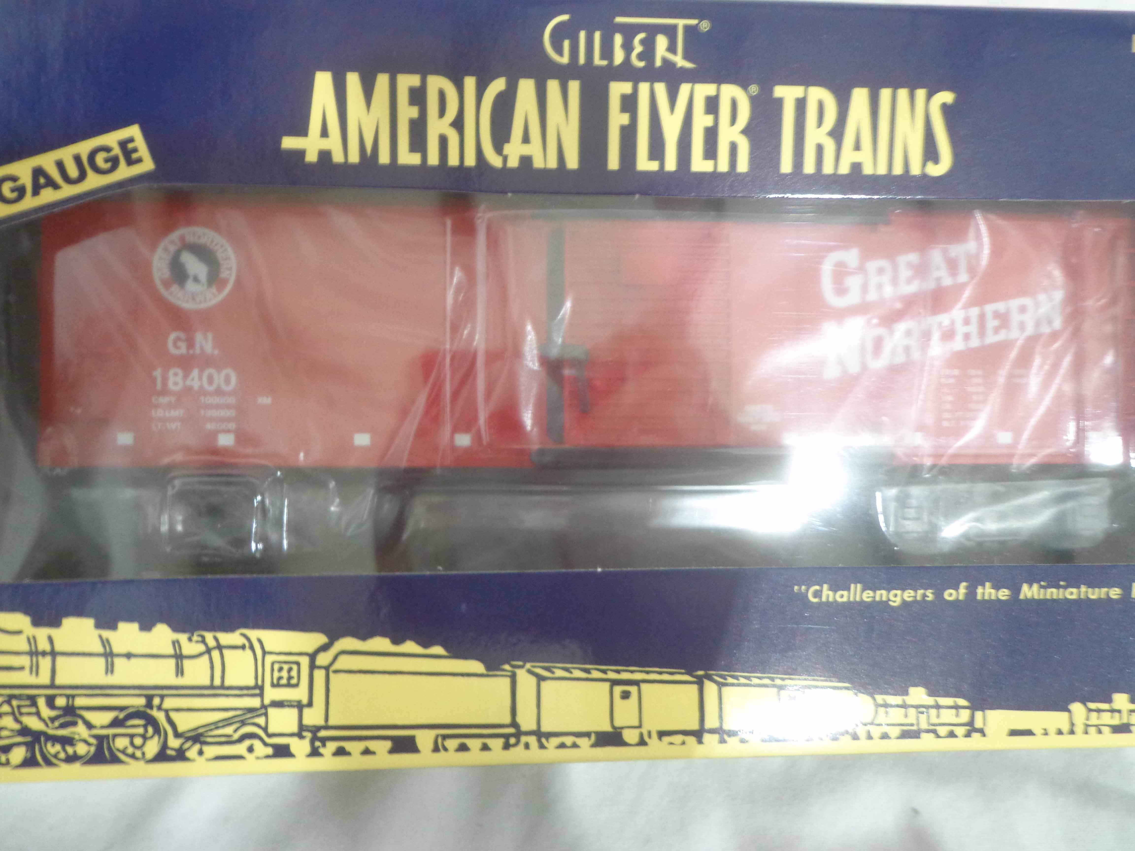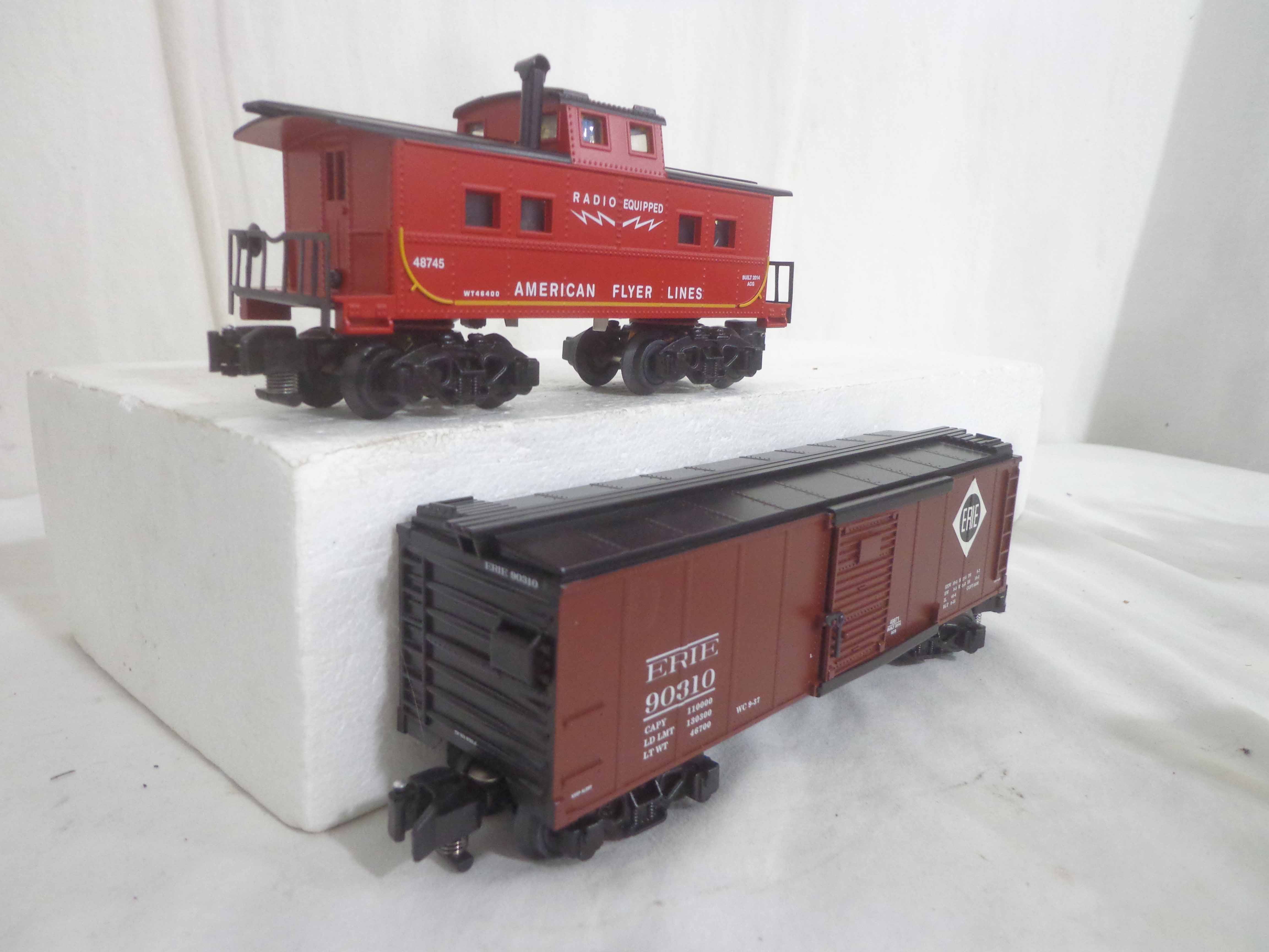 These are the #48870 Great Northern Steam Railsounds Box Car, #48871 Erie Steam Railsounds Box Car, #49064 New Haven Steam Railsounds Box Car and #48745 AF Caboose that Lionel/American Flyer made a few years ago. Original Boxes. All Original in Our Opinion. Examine closely; what is pictured is what you will receive. Please add $30.00 for US-48 Shipping and Insurance (more west of the Mississippi).