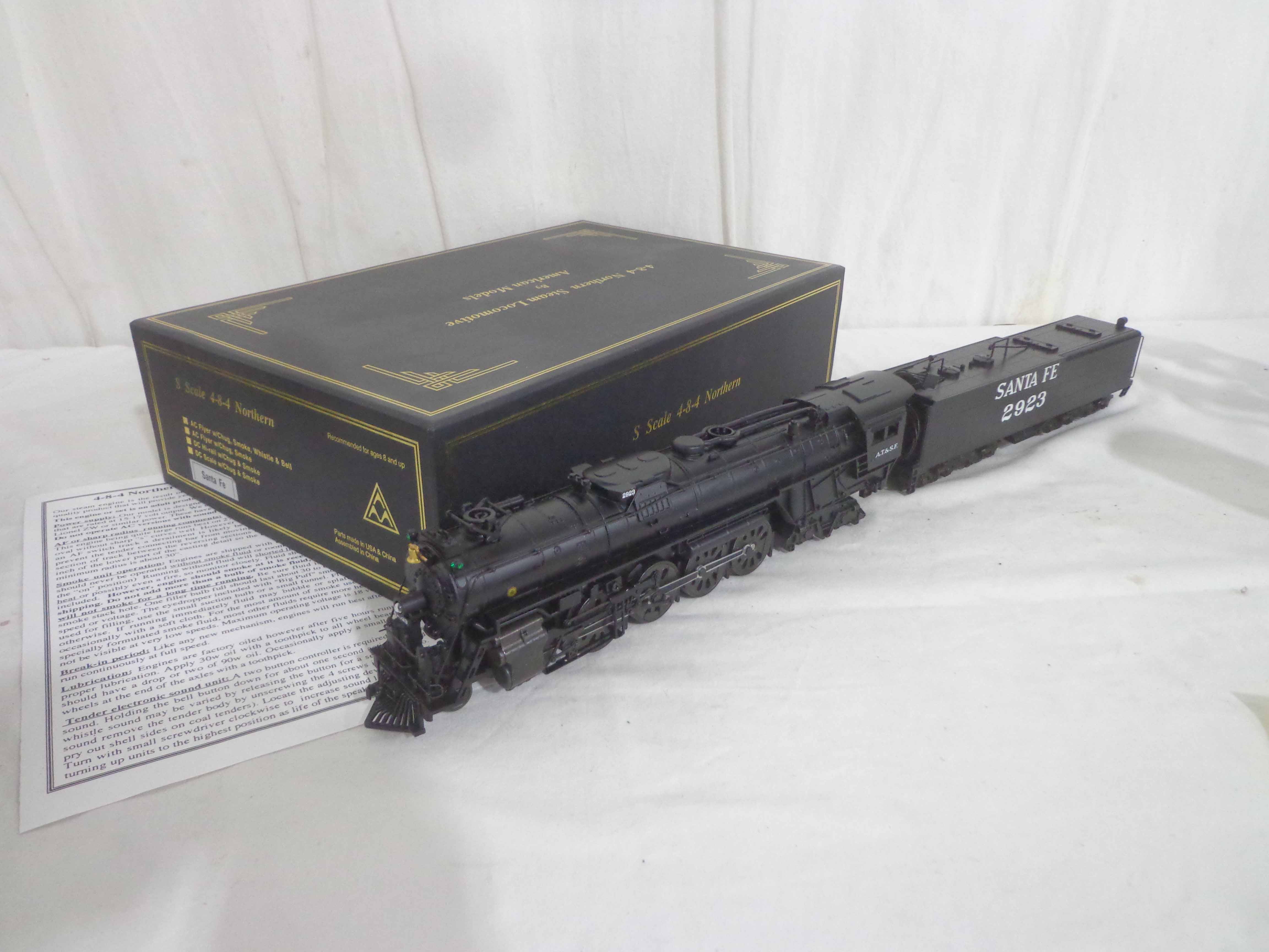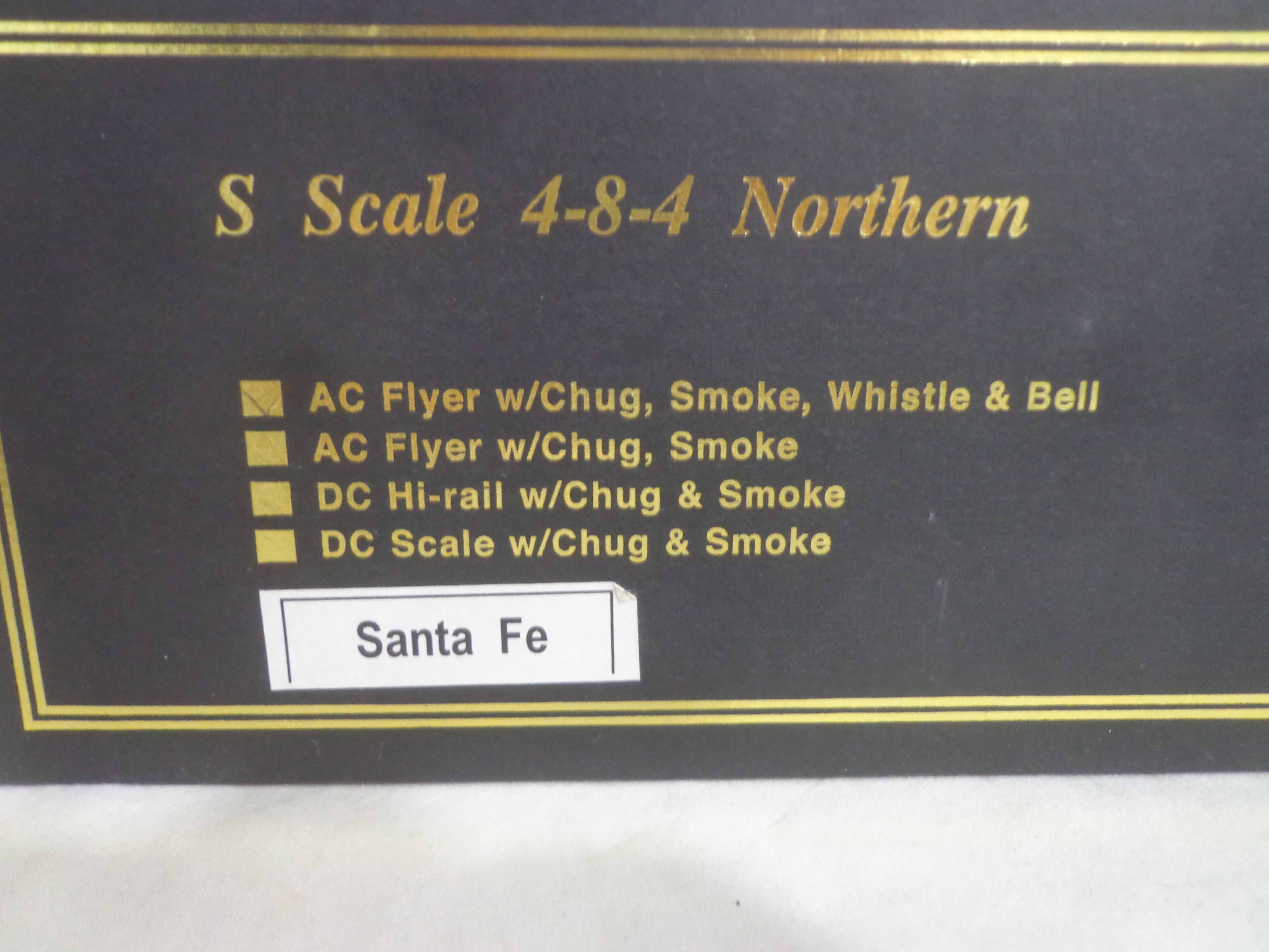 These are the American Models S Gauge #2923 Santa Fe 4-8-4 Northern AC Engine and Tender. Original Box. Examine closely; what is pictured is what you will receive. Please add $40.00 for US-48 Shipping and Insurance (more west of the Mississippi).