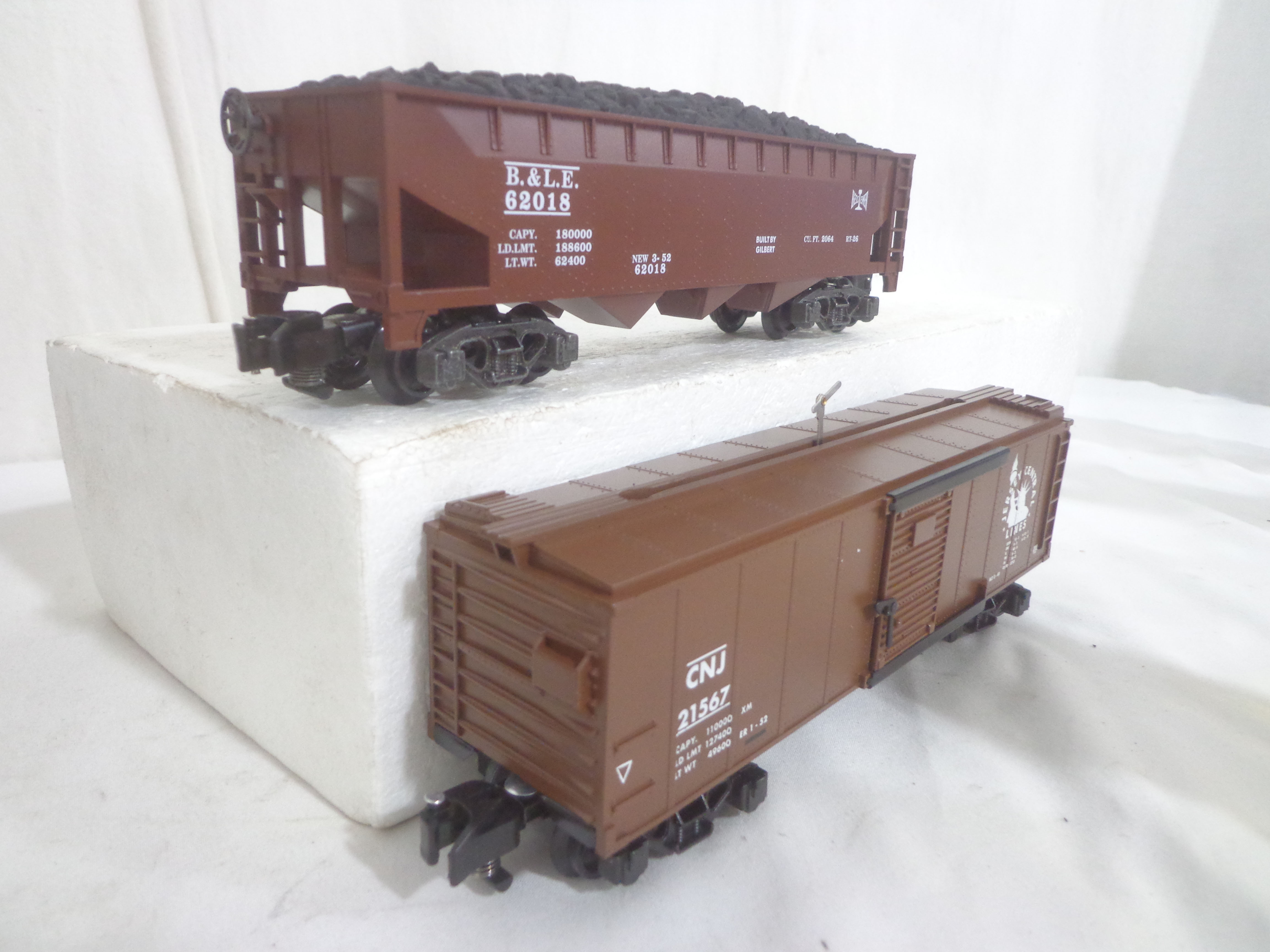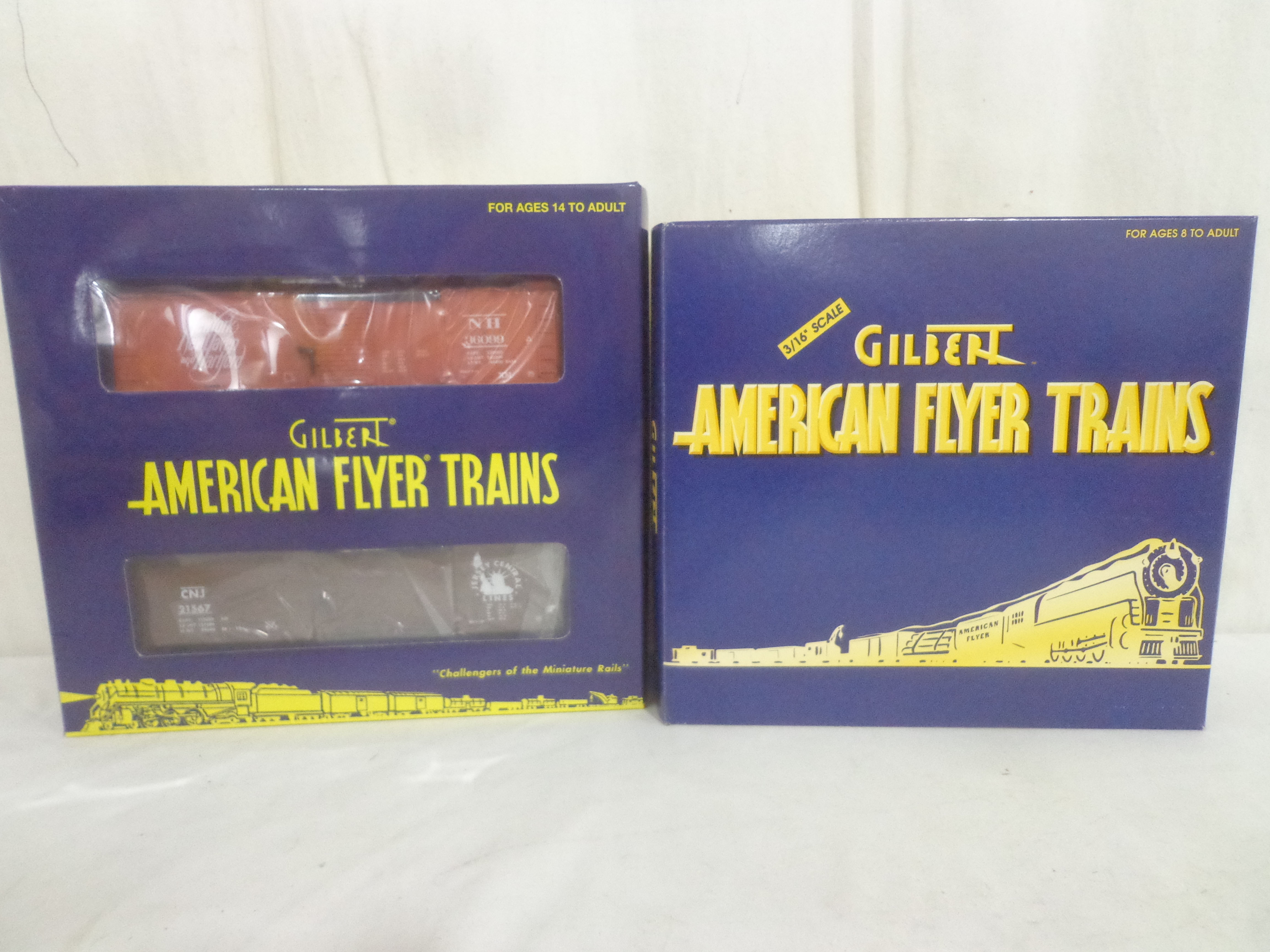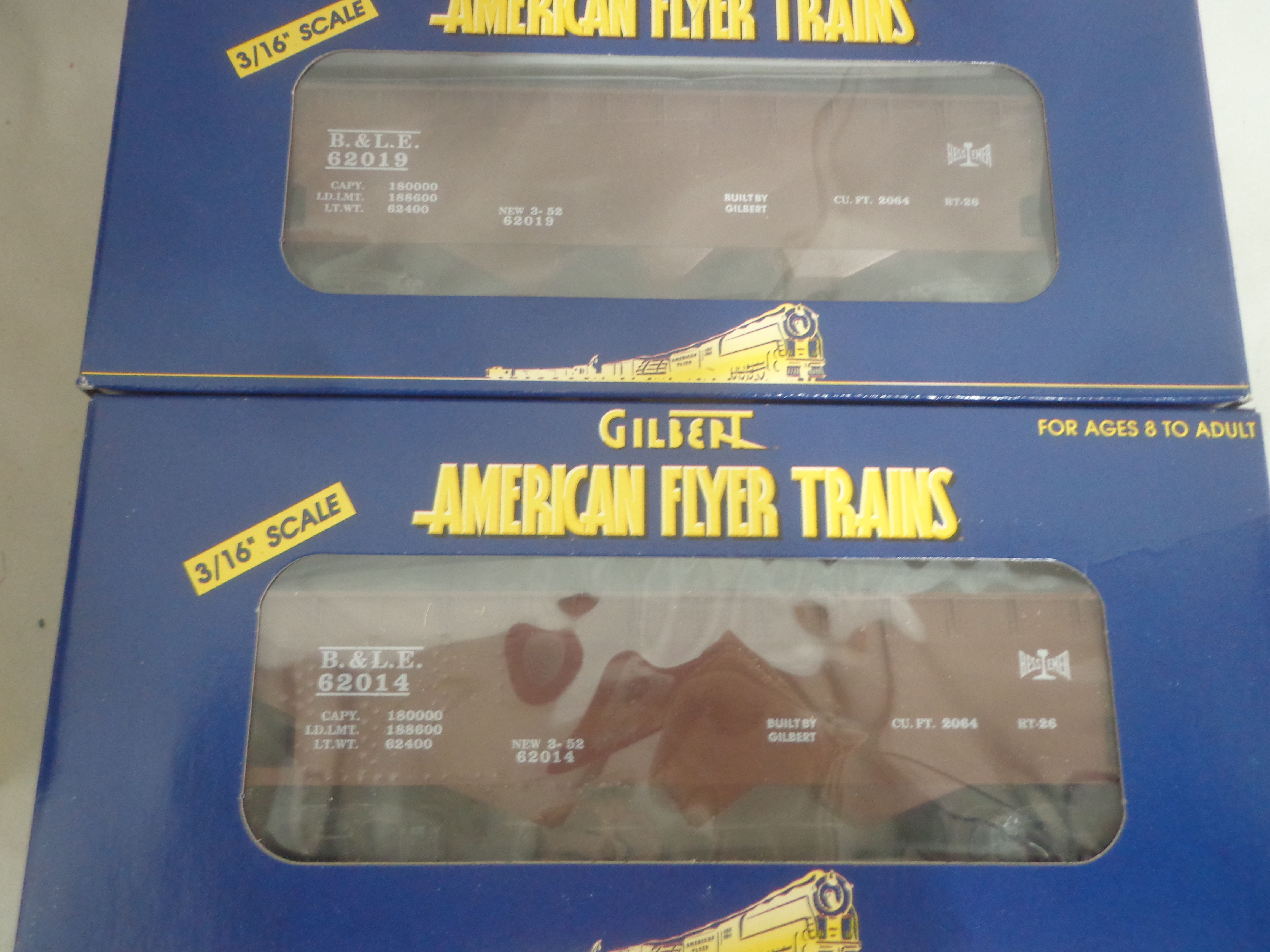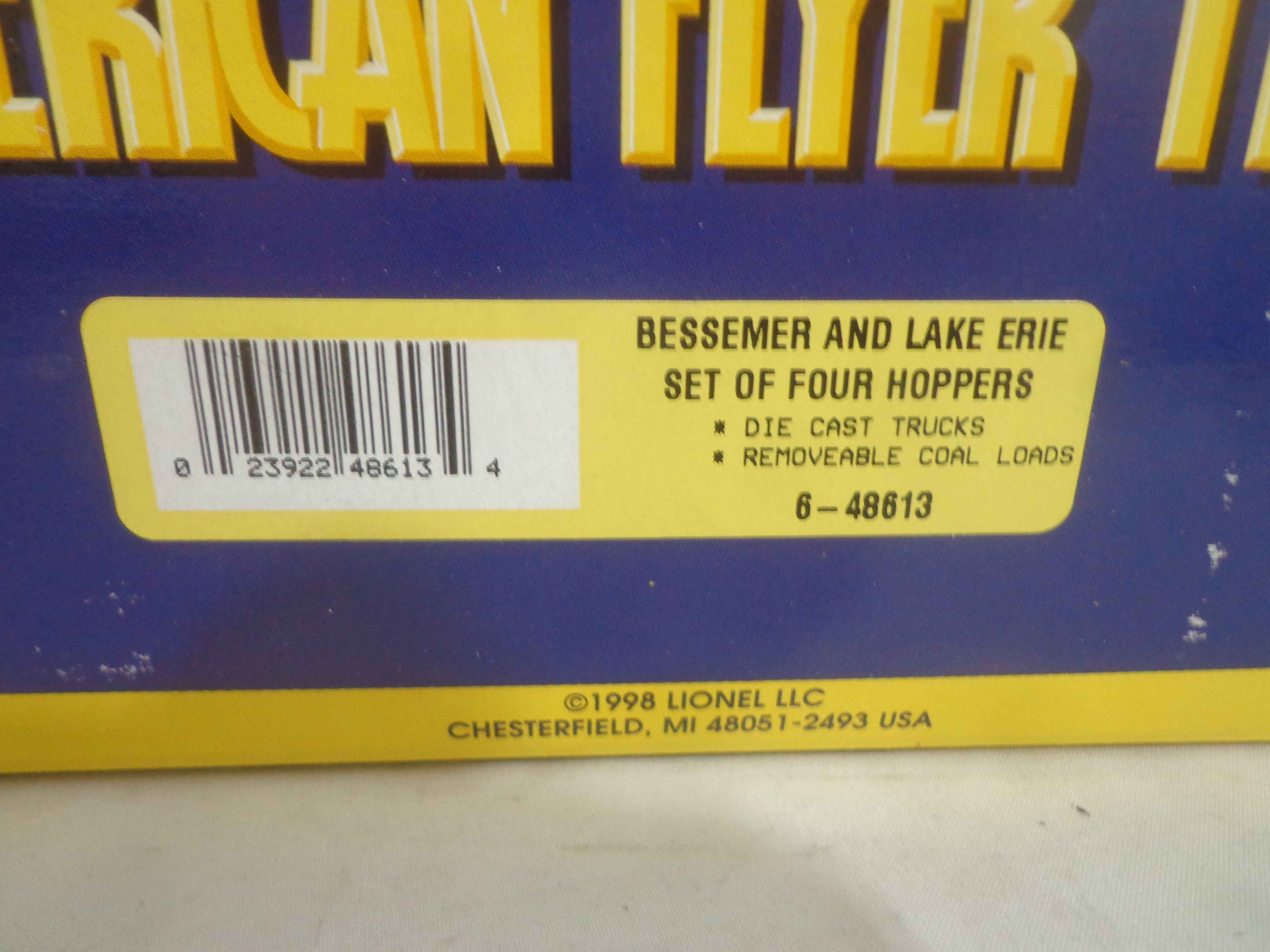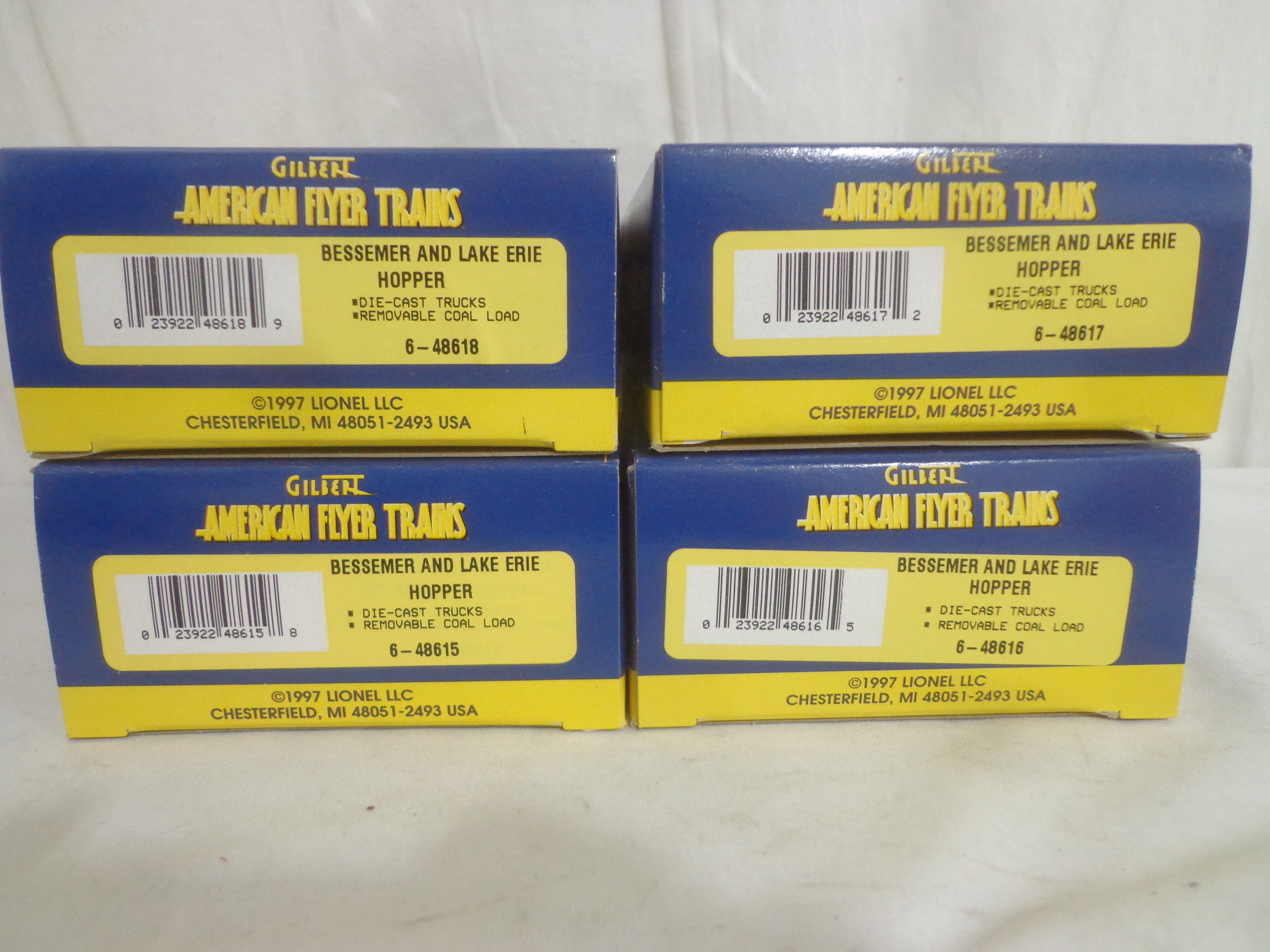 These are the #48613 Bessemer and Lake Erie Hoppers Set of 4 and #2219040 Hobo and Bull Box Cars Set of that Lionel made several years ago in their American Flyer S Gauge Line. Original Boxes. Examine closely; what is pictured is what you will receive. Please add $35.00 for US-48 Shipping and Insurance (more west of the Mississippi).