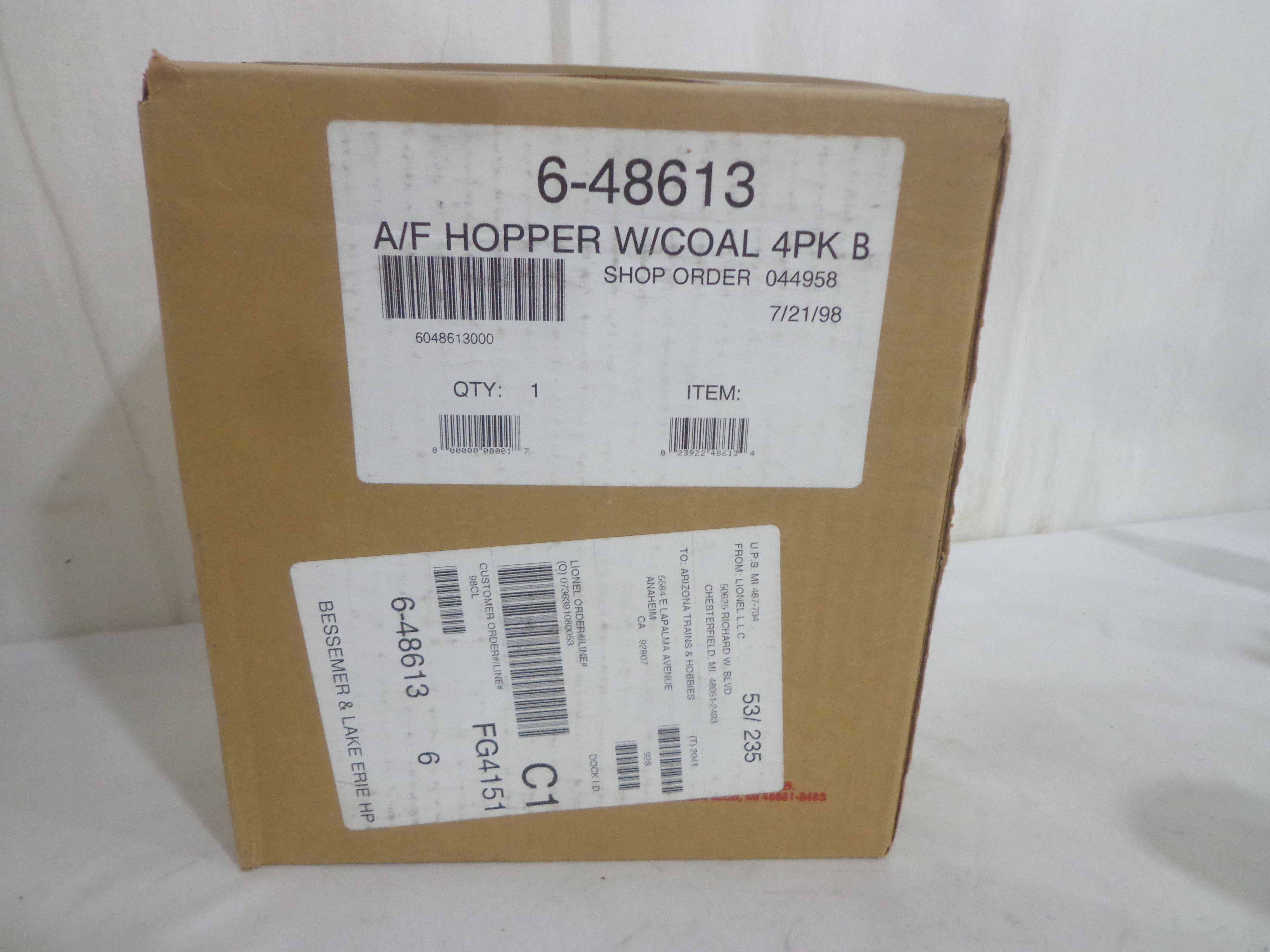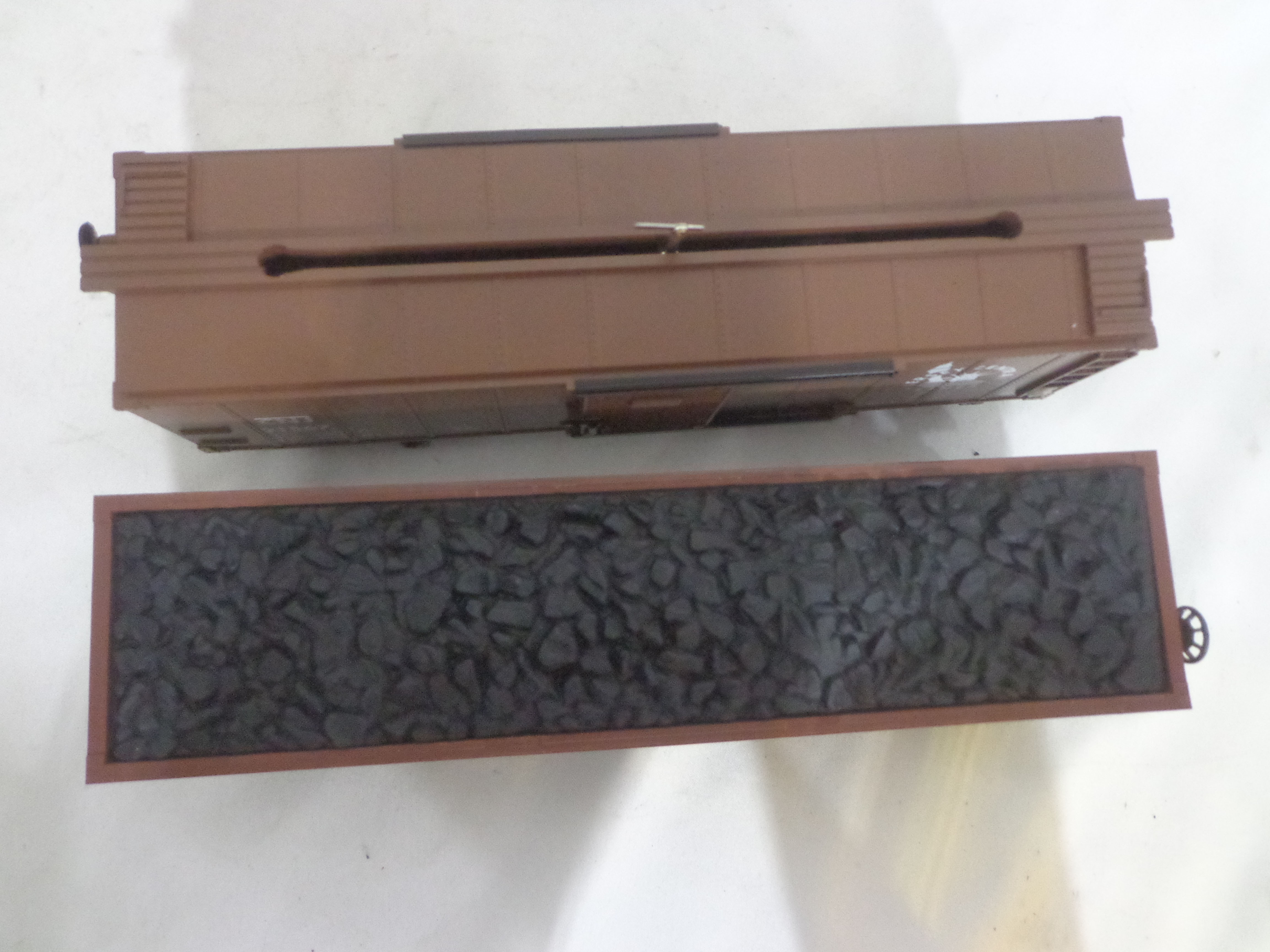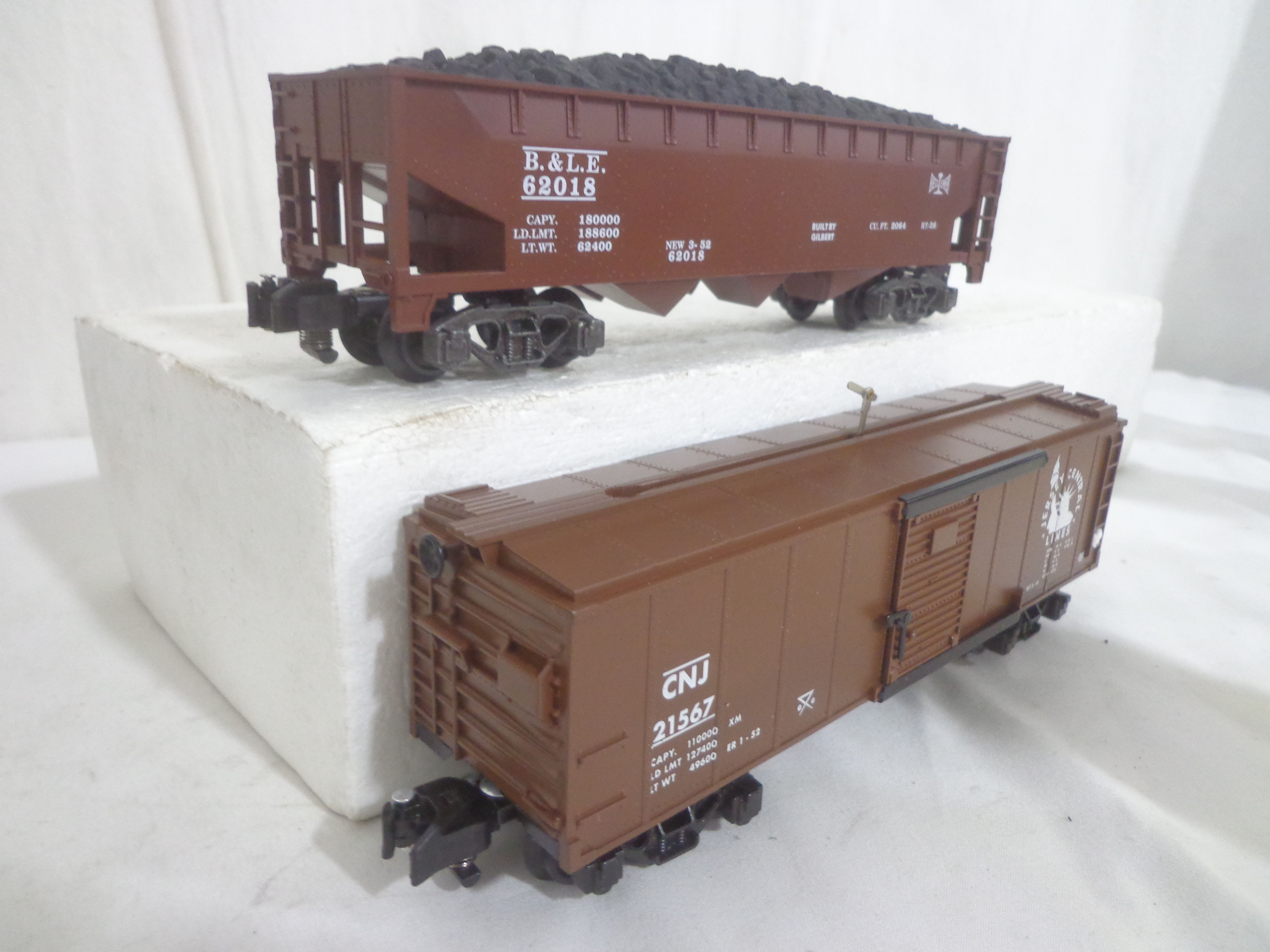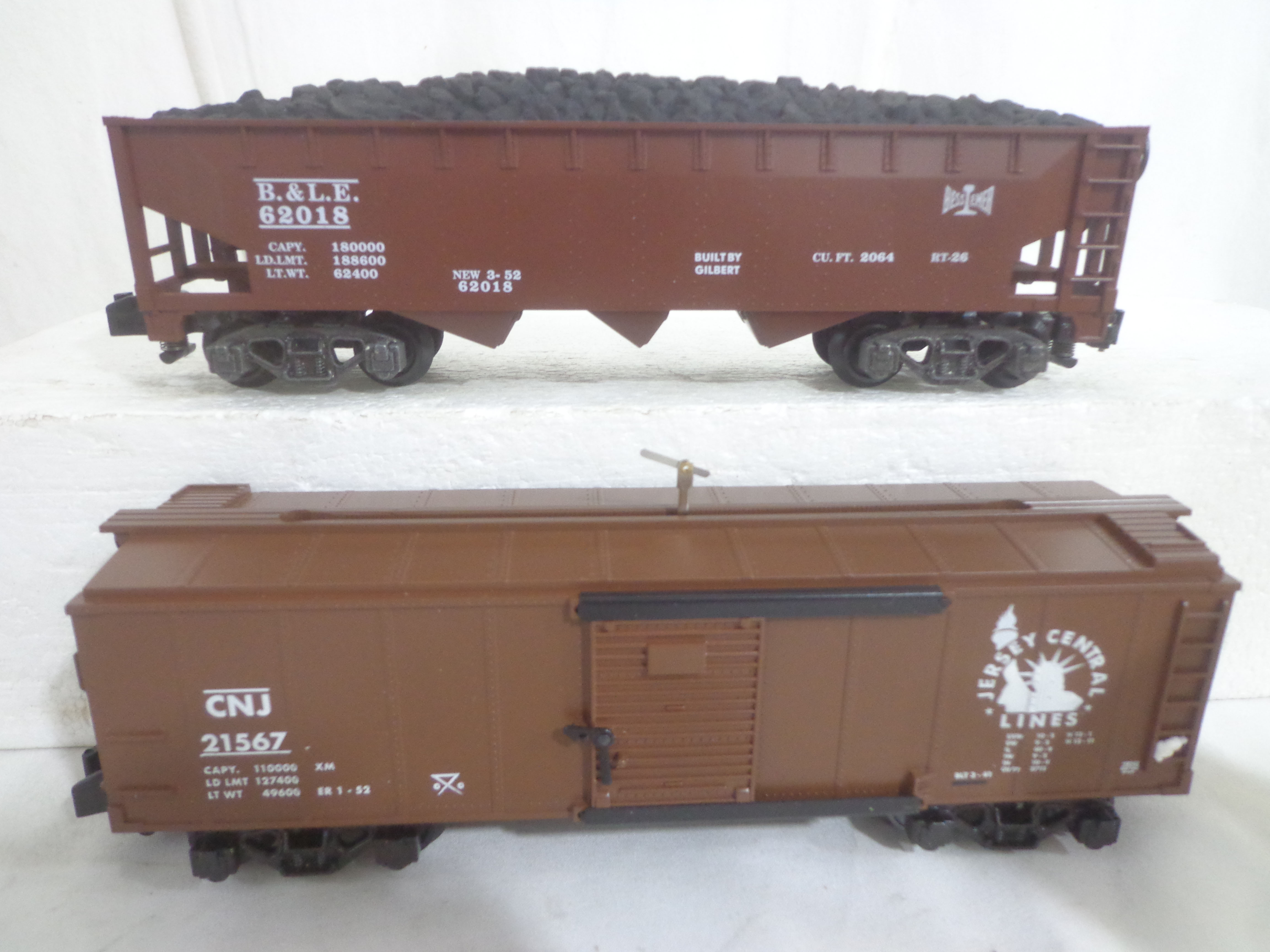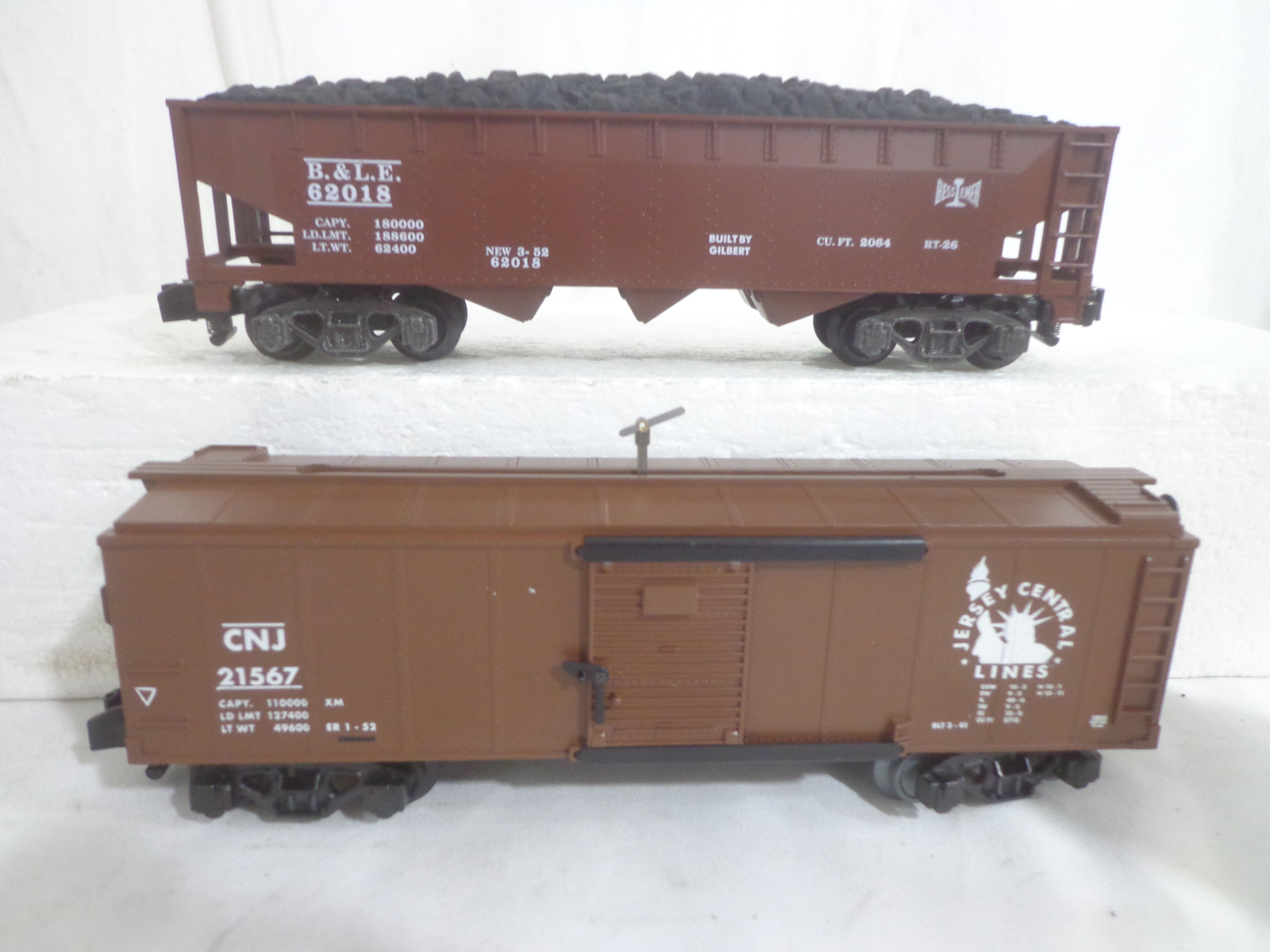 These are the #48613 Bessemer and Lake Erie Hoppers Set of 4 and #2219040 Hobo and Bull Box Cars Set of that Lionel made several years ago in their American Flyer S Gauge Line. Original Boxes. Examine closely; what is pictured is what you will receive. Please add $35.00 for US-48 Shipping and Insurance (more west of the Mississippi).