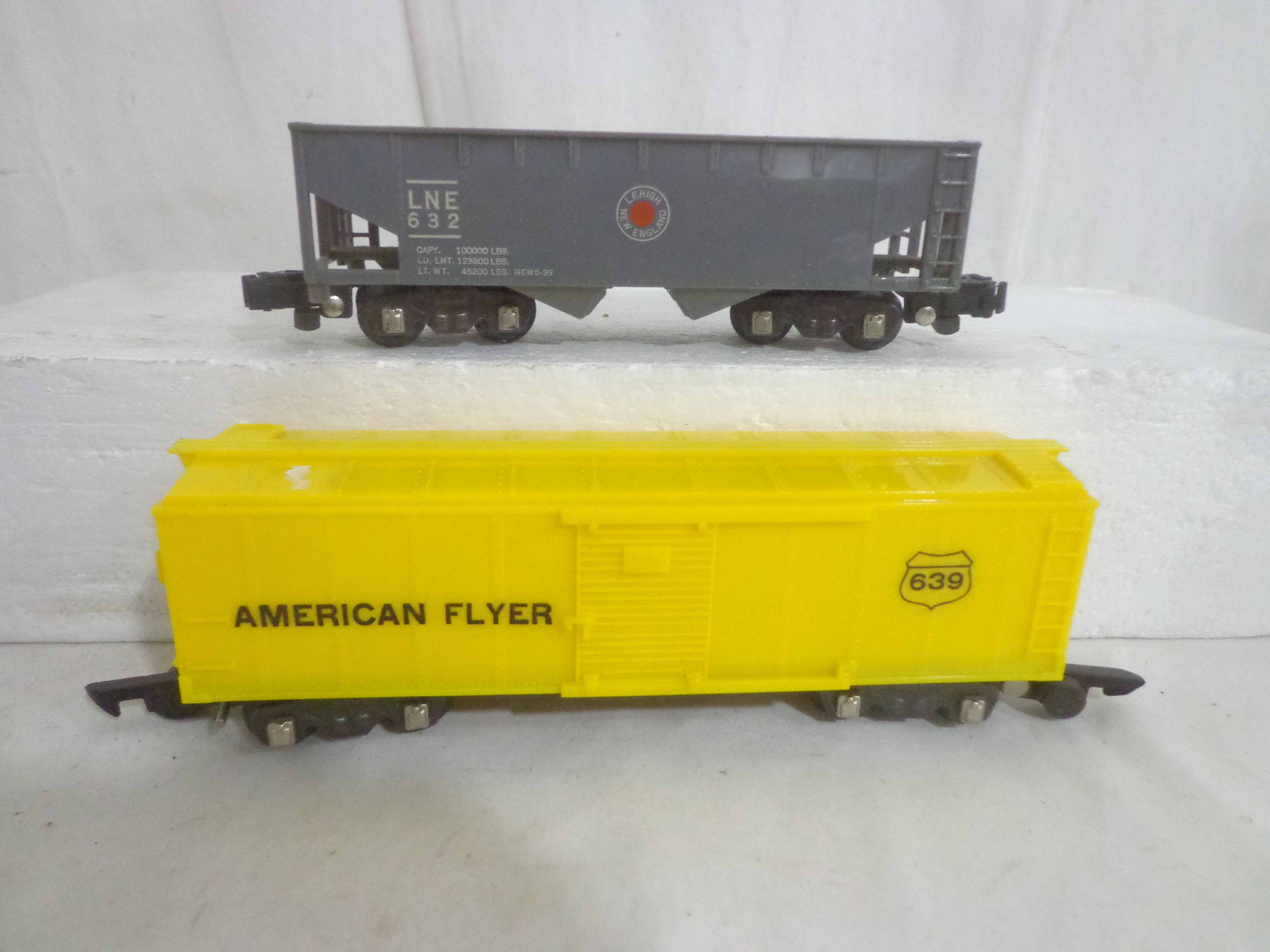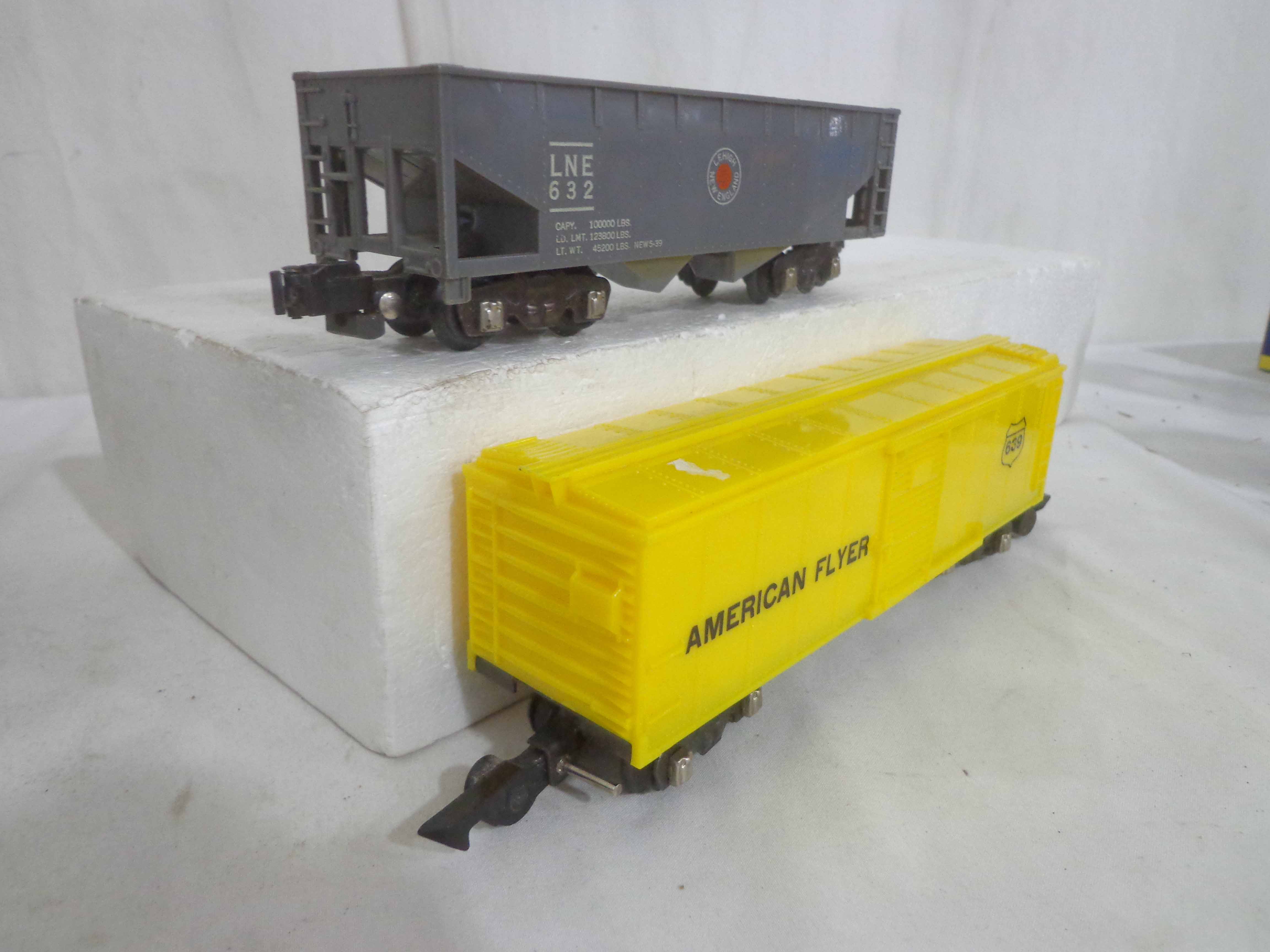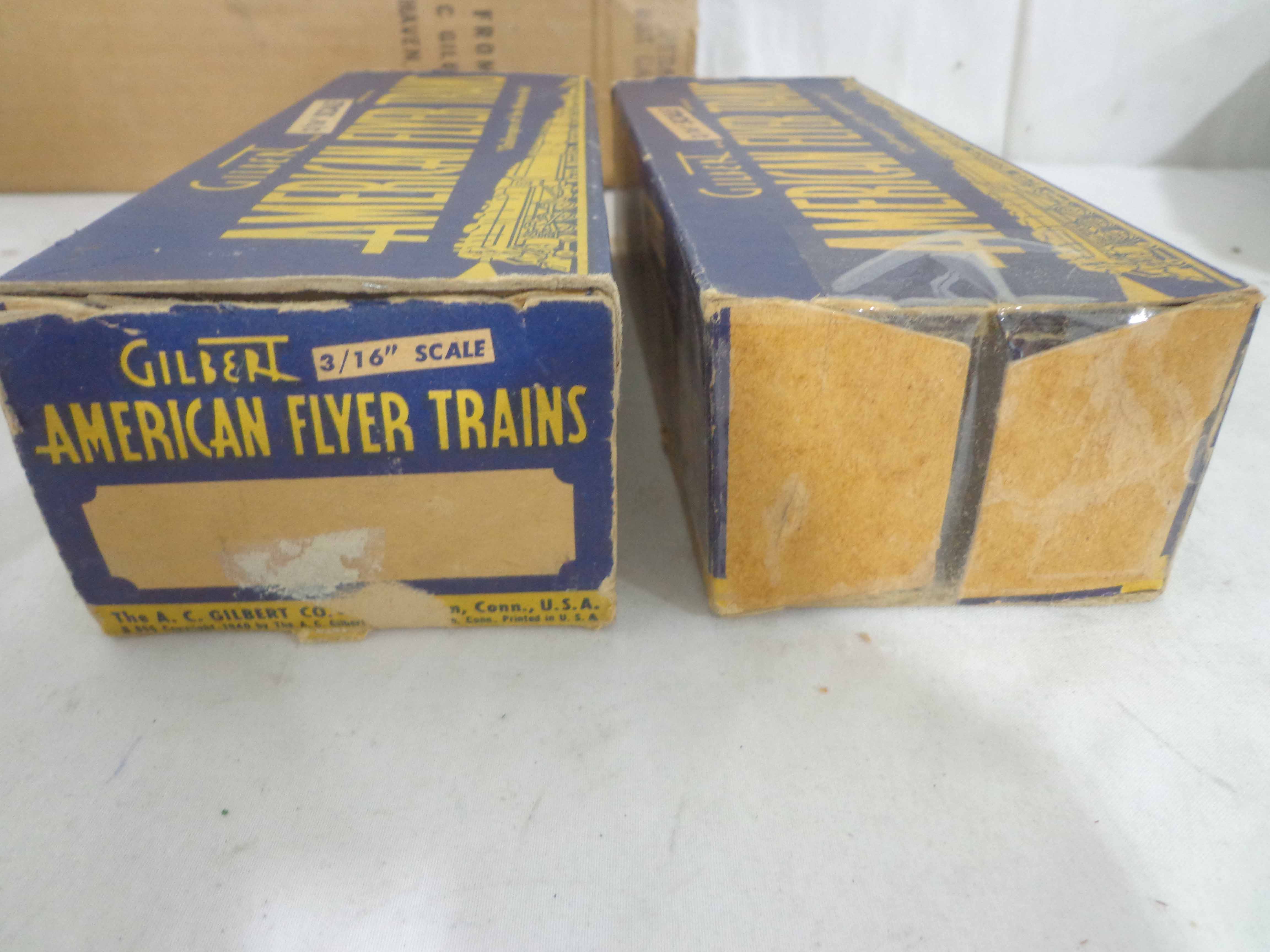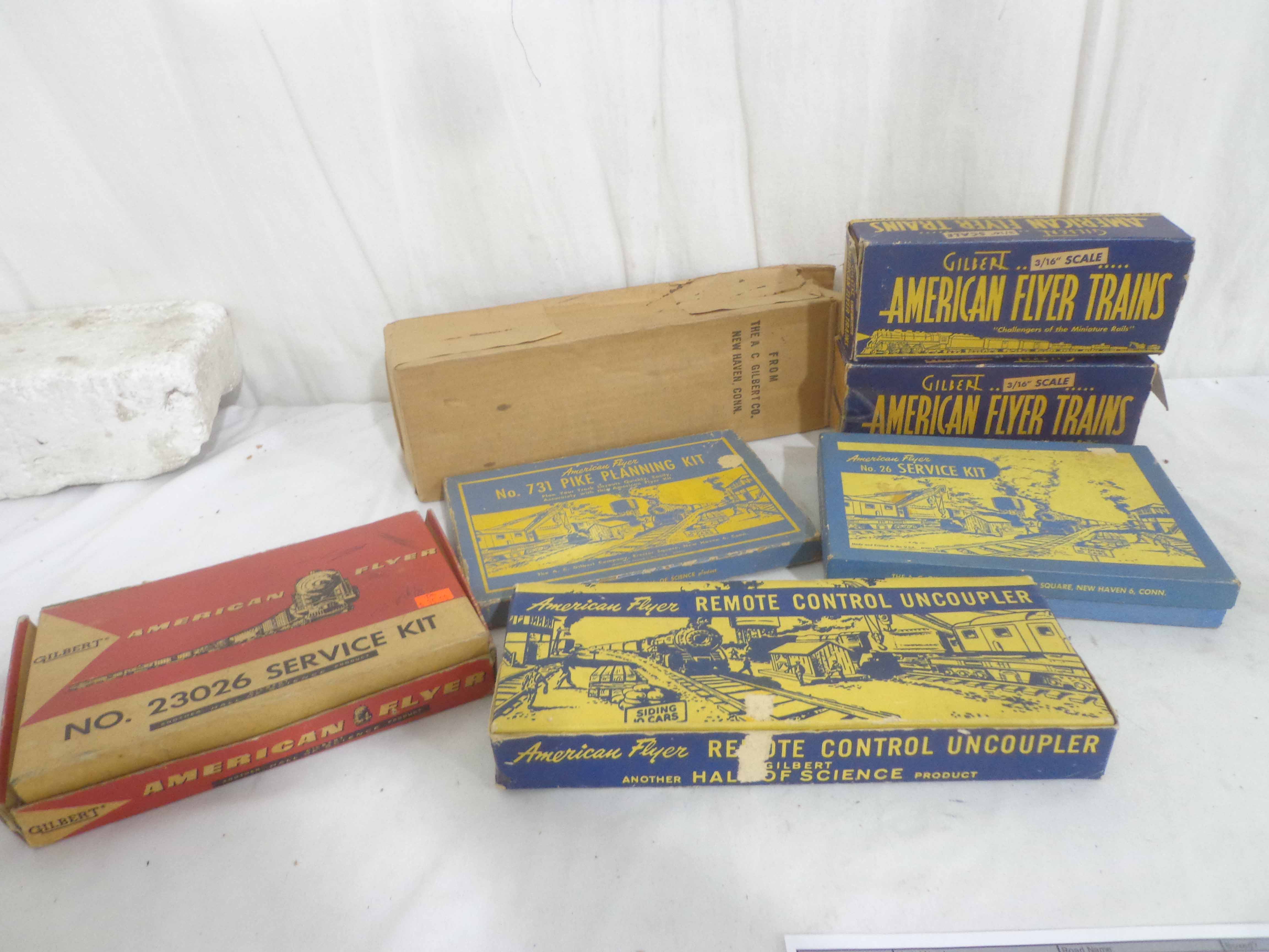 These are three Freight Cars and four Accessories that American Flyer made in the 1950s/60s. Seven Boxes. Examine very closely; what is pictured is what you will receive. Please add $40.00 for US-48 Shipping and Insurance (more west of the Mississippi). |