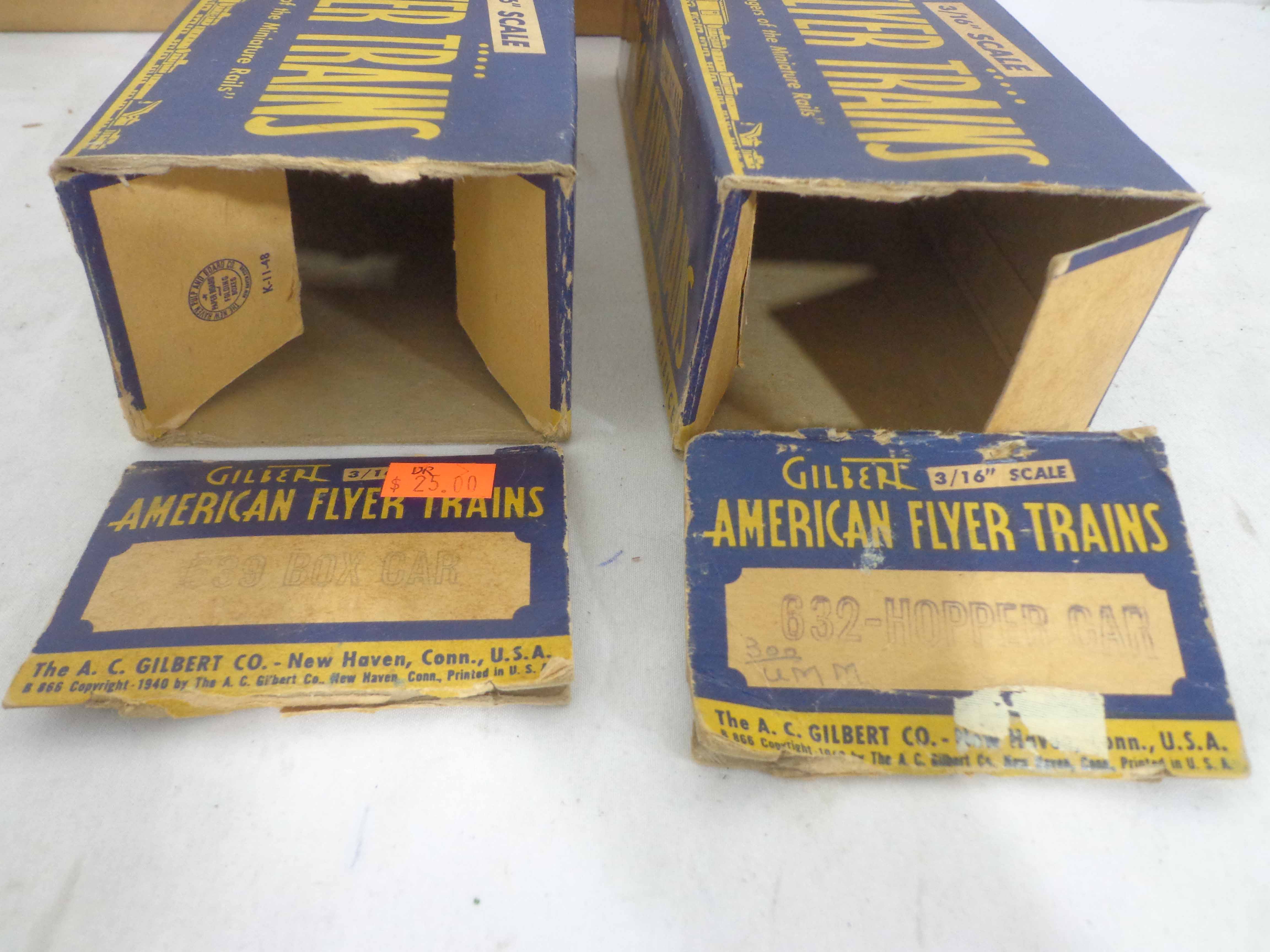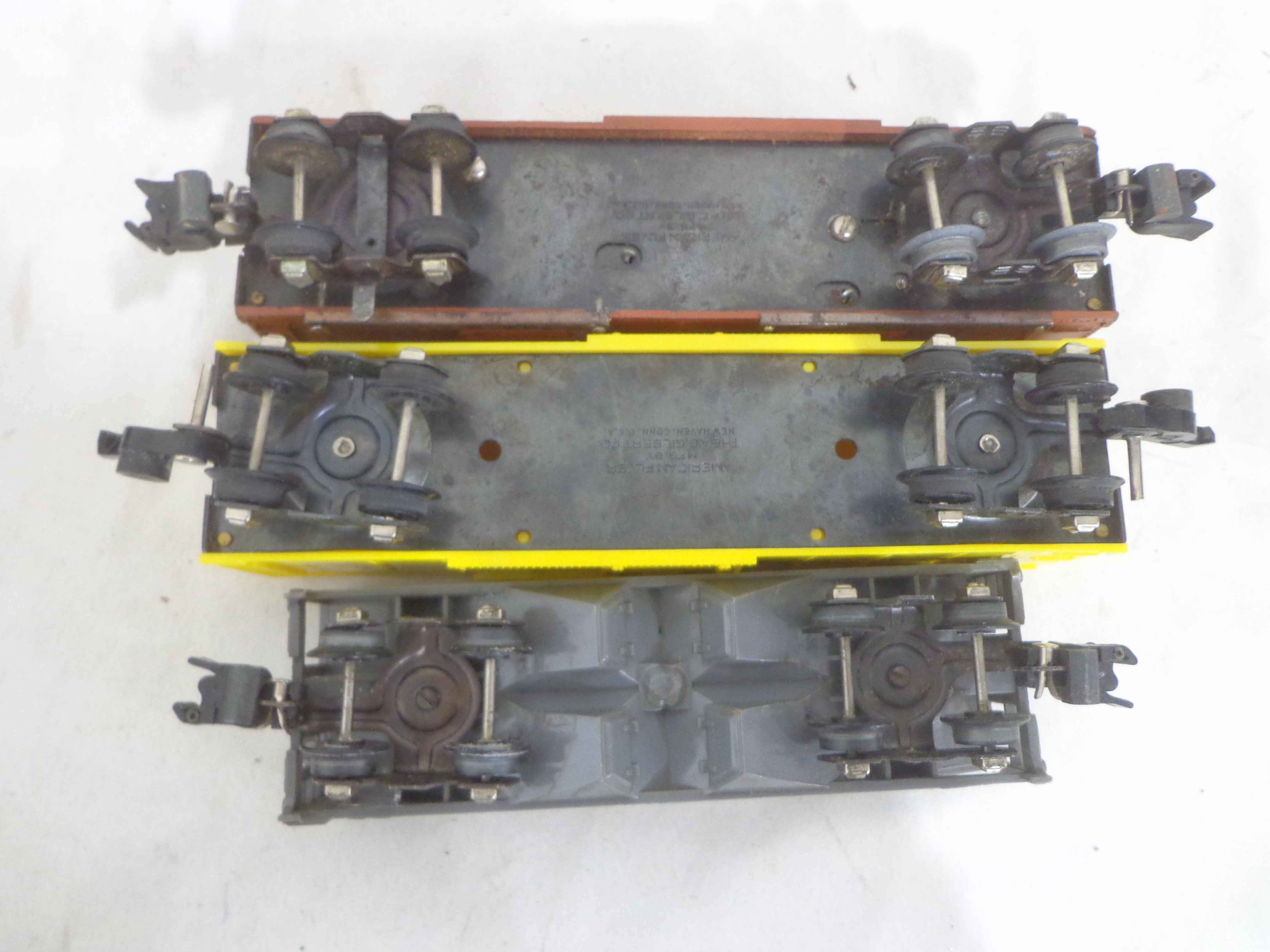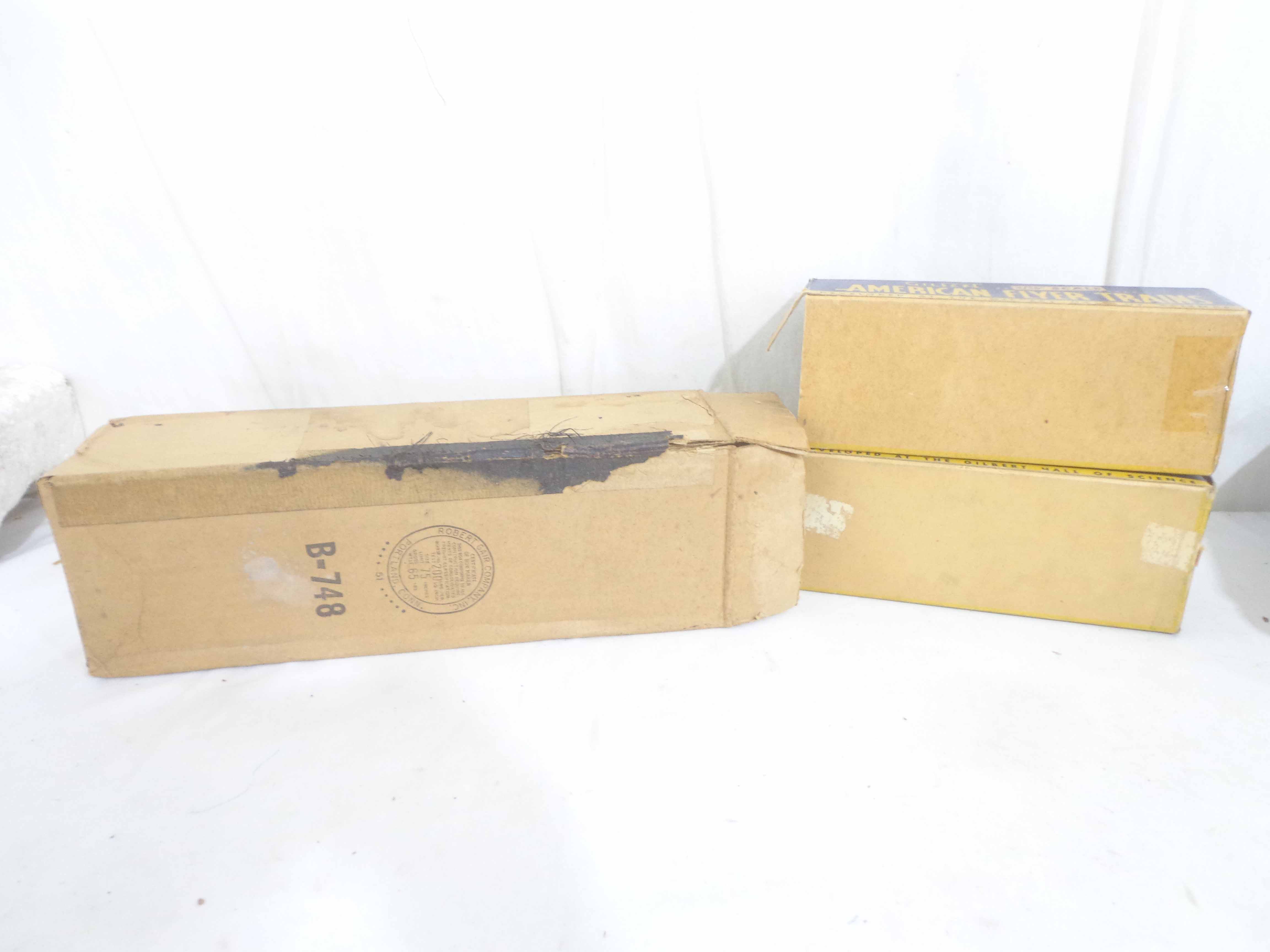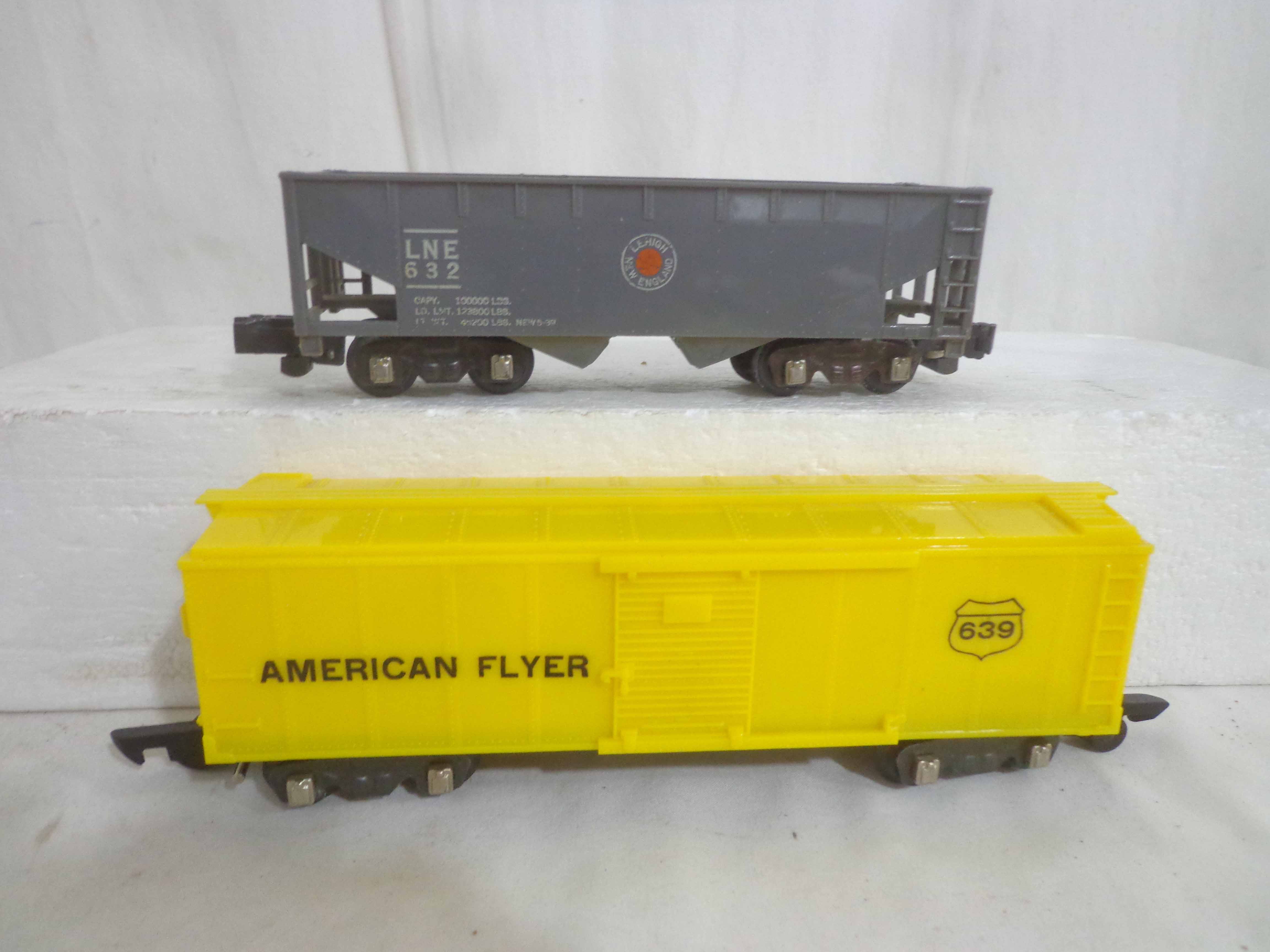 These are three Freight Cars and four Accessories that American Flyer made in the 1950s/60s. Seven Boxes. Examine very closely; what is pictured is what you will receive. Please add $40.00 for US-48 Shipping and Insurance (more west of the Mississippi). |