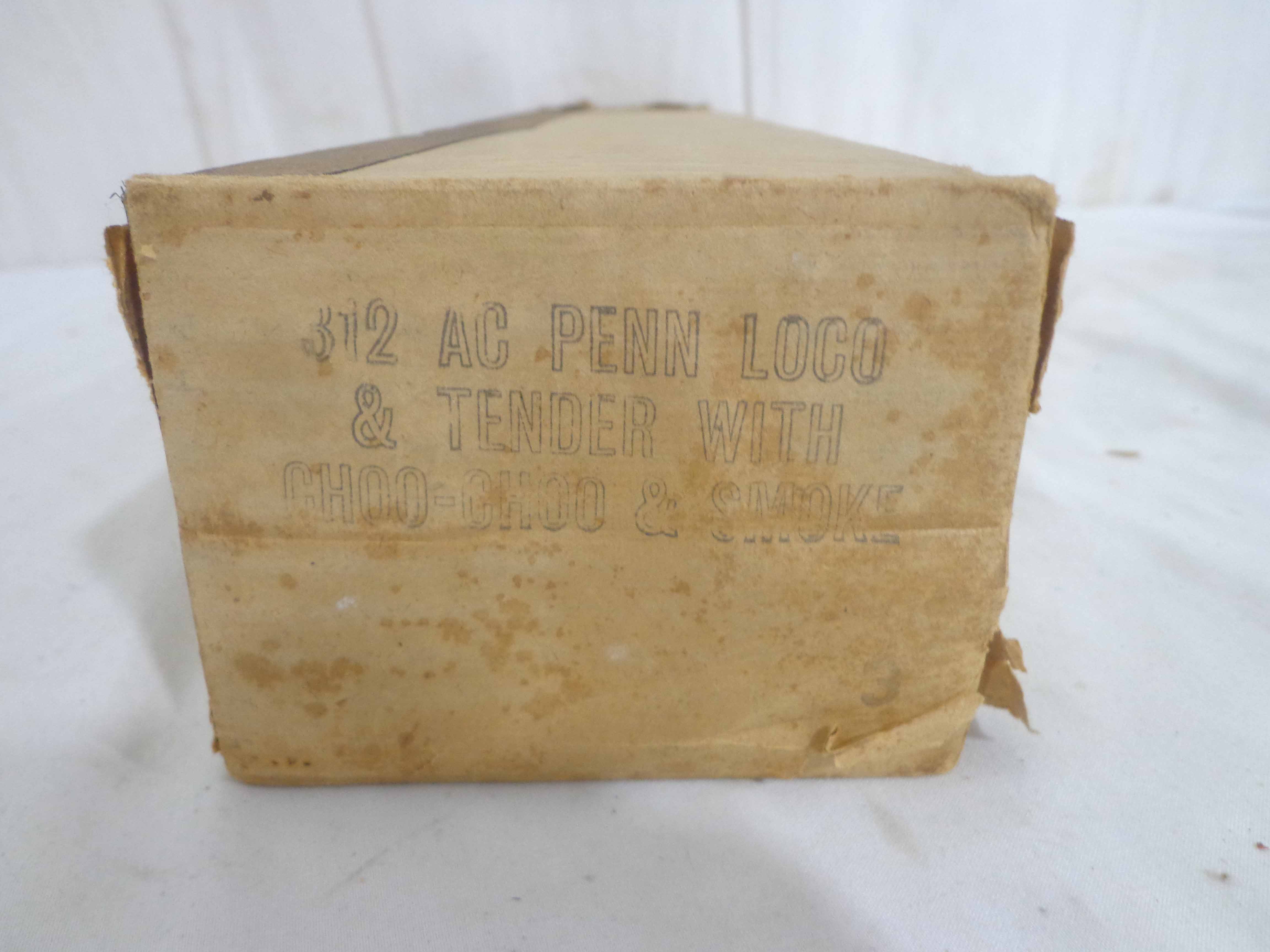 These are the #312AC Pennsylvania 4-6-2 Engine and Tender that American Flyer made in the 1940s/50s. Original Box/corrugated paper. What you see is what you get. Please add $35.00 for US-48 Shipping and Insurance (more west of the Mississippi).