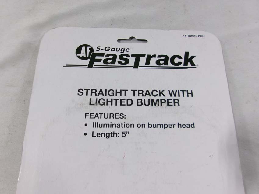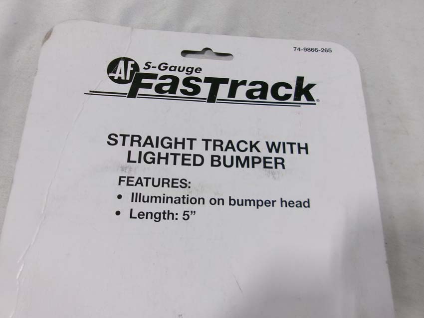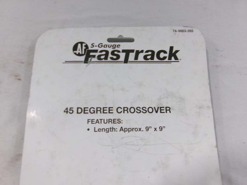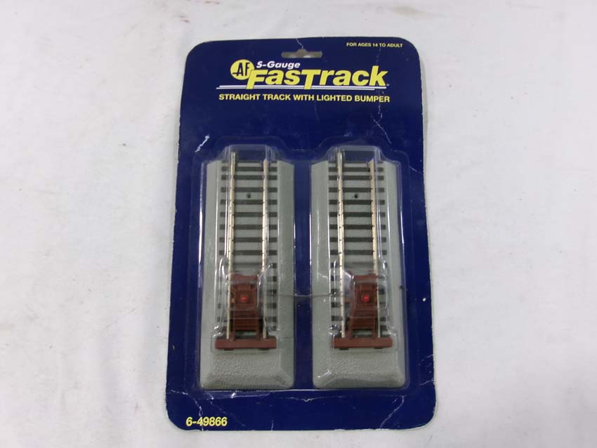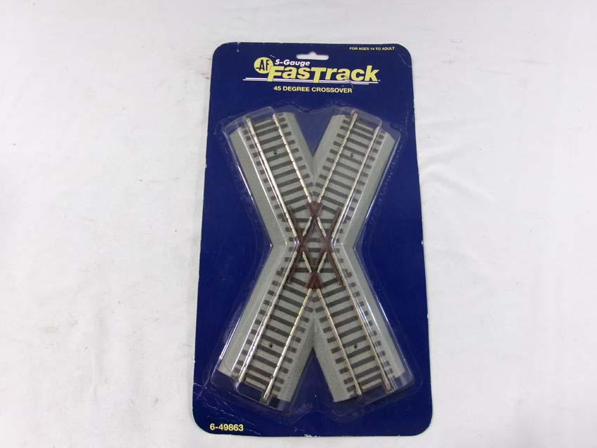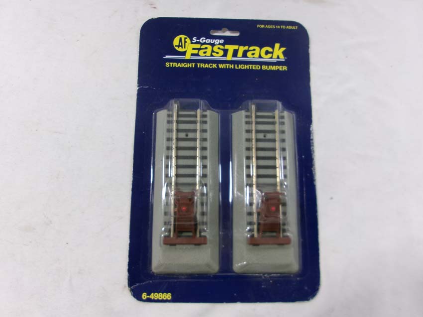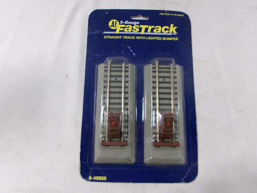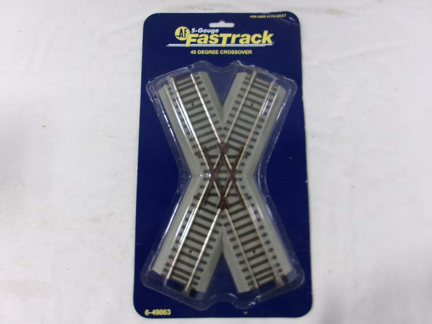 These are the American Flyer-Lionel S Gauge Fastrack three #49866 Straight Track w/Lighted Bumpers and two #49863 45 Degree Crossovers. Blister Cards. Examine closely; what is pictured is what you will receive. Please add $30.00 for US-48 Shipping and Insurance (more west of the Mississippi).