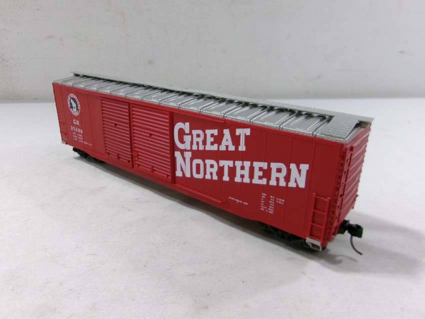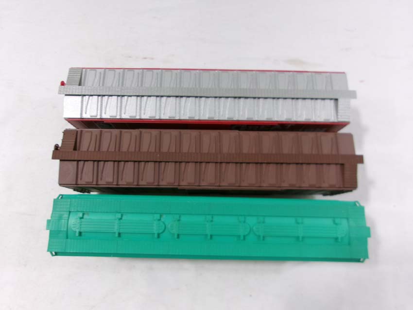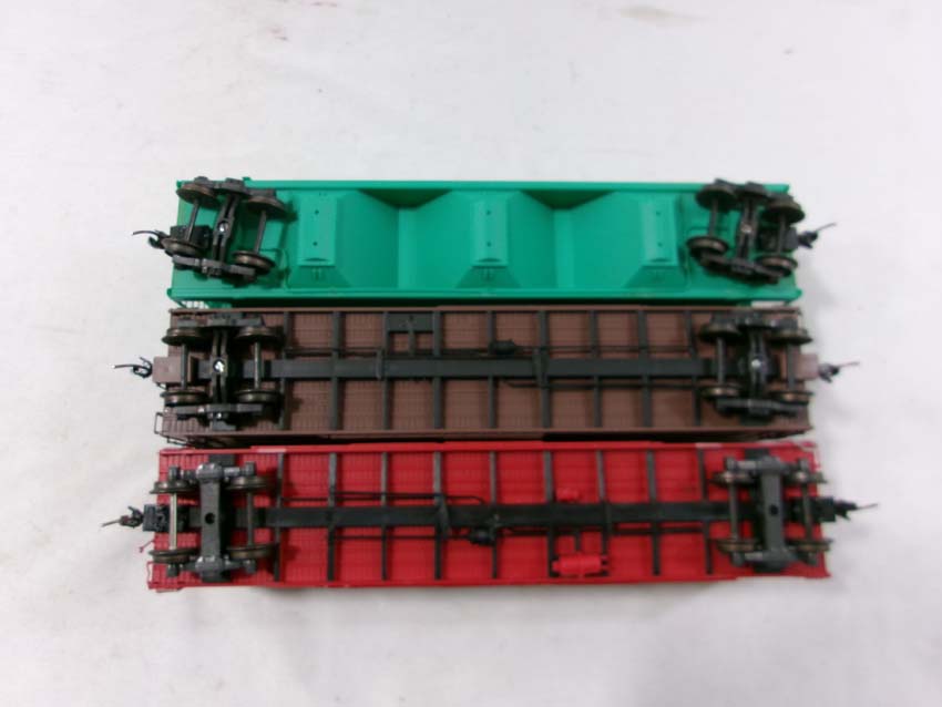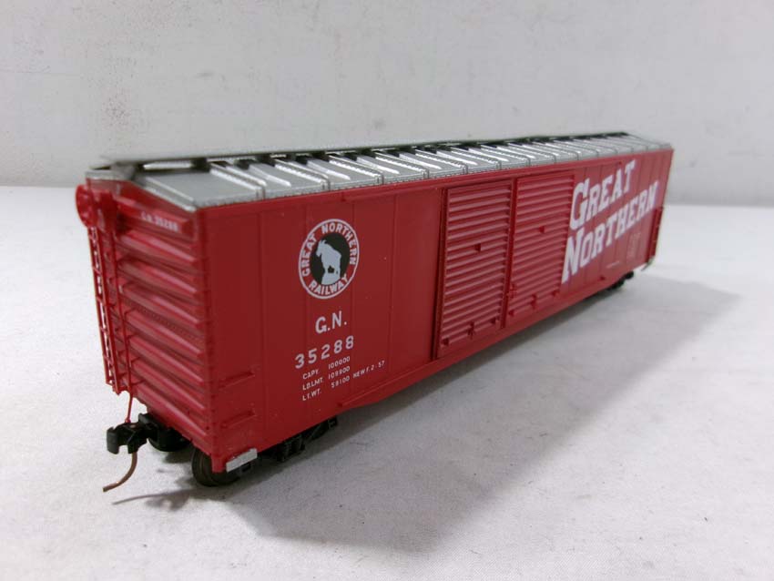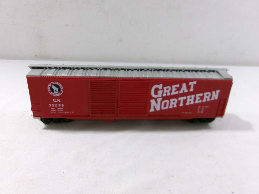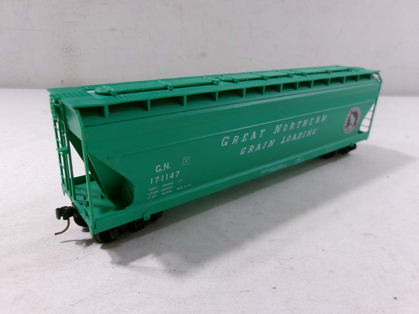 These are the American Models/Pacific Rail Shops S Gauge #5004 CNW ACF Box Car, #B-527 IC 50' Box Car, #B-554 GN 50' Box Car and #? GN Covered Hopper. Original Boxes. Examine closely; what is pictured is what you will receive. Please add $35.00 for US-48 Shipping and Insurance (more west of the Mississippi).