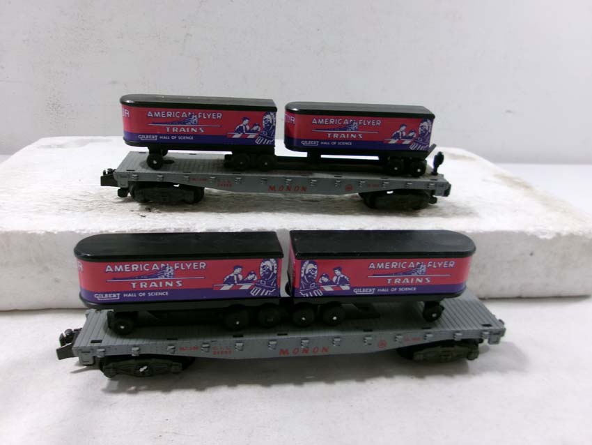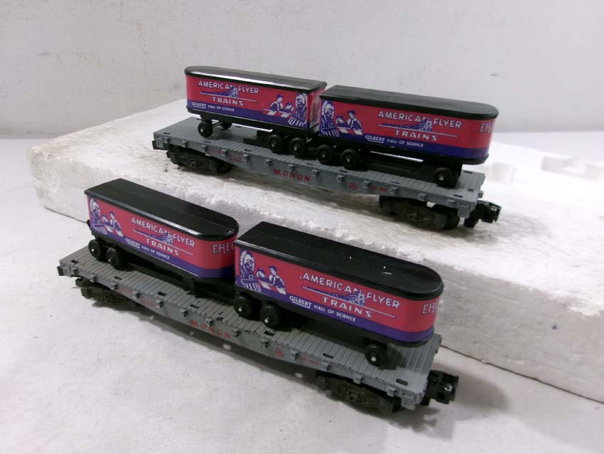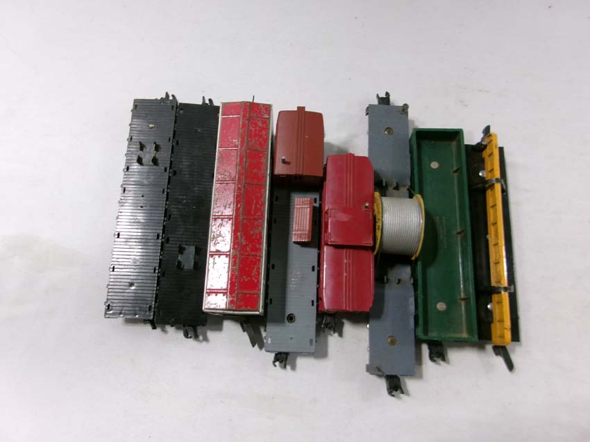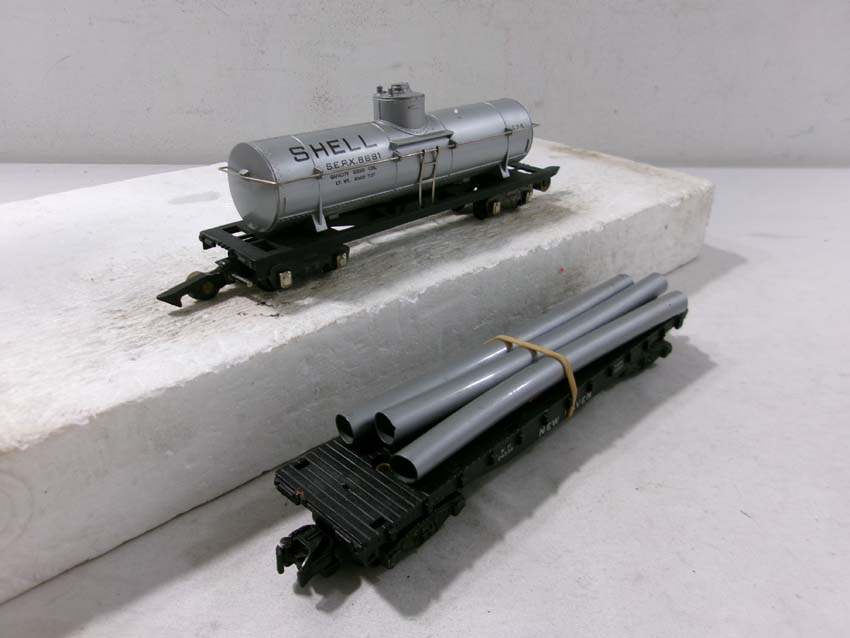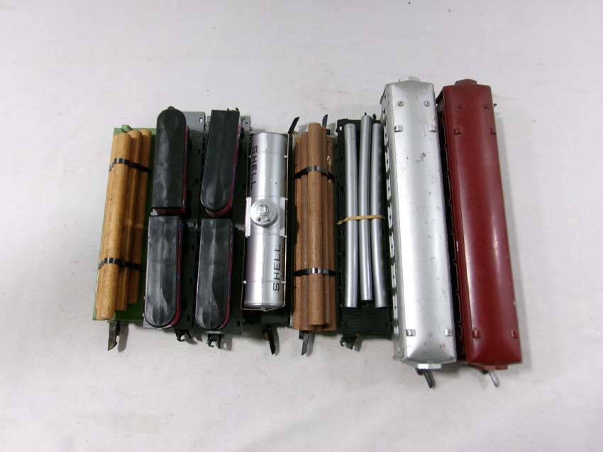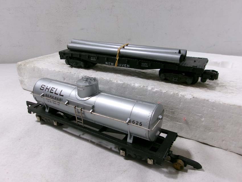 These are the American Flyer S Gauge #735 NH Operating Coach, #655 Silver Bullet Coach, fourteen Assorted Freight Cars (24550s), and two Uncouplers. Two Original Boxes. Examine very closely; what is pictured is what you will receive. Please add $50.00 for US-48 Shipping and Insurance (more west of the Mississippi).