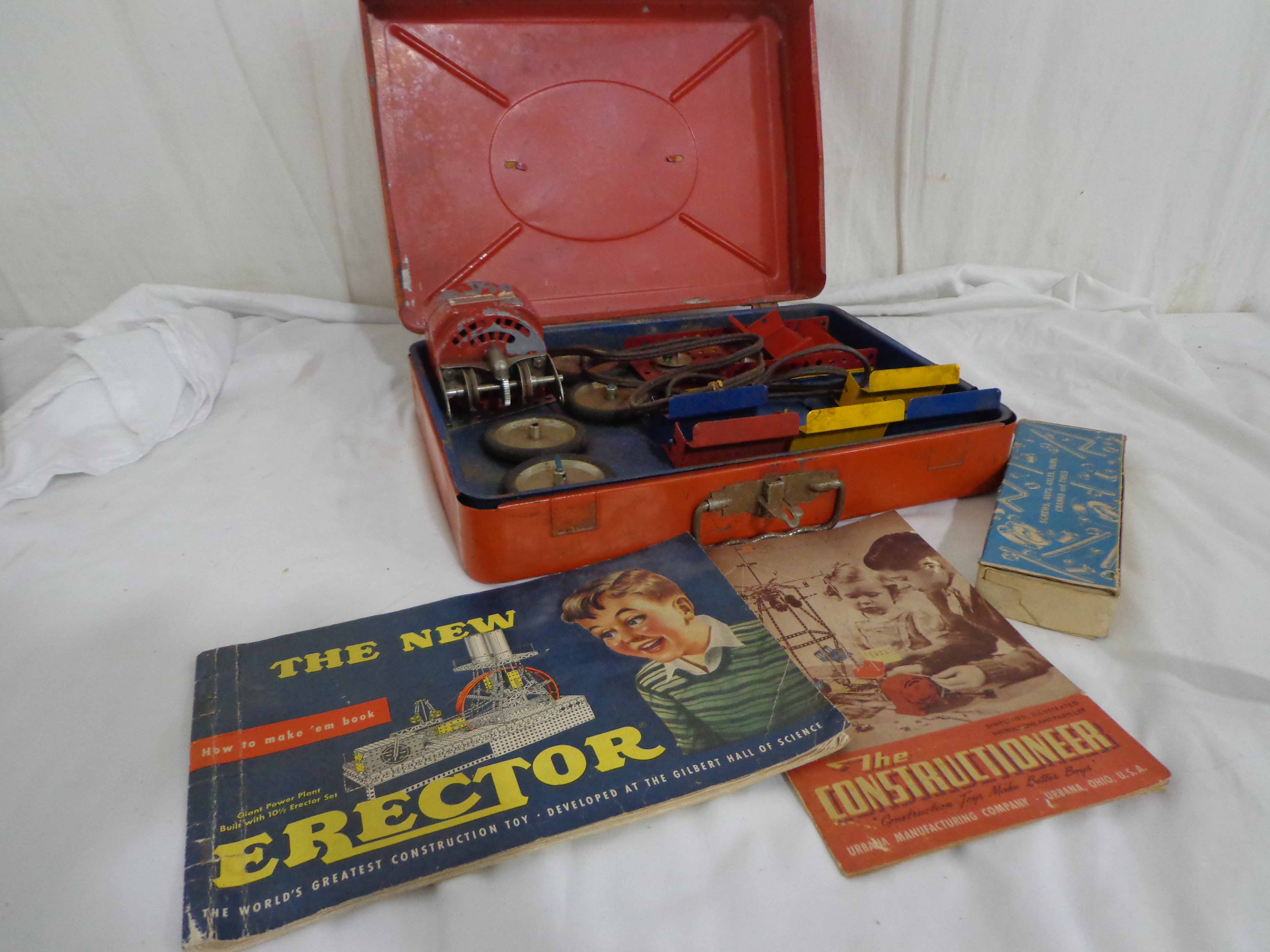 These are the Urbana Constructioneer Metal Building Set and Erector Book. Metal Case/instructions. Examine very closely; what is pictured is what you will receive. Please add $35.00 for US-48 Shipping and Insurance (more west of the Mississippi).