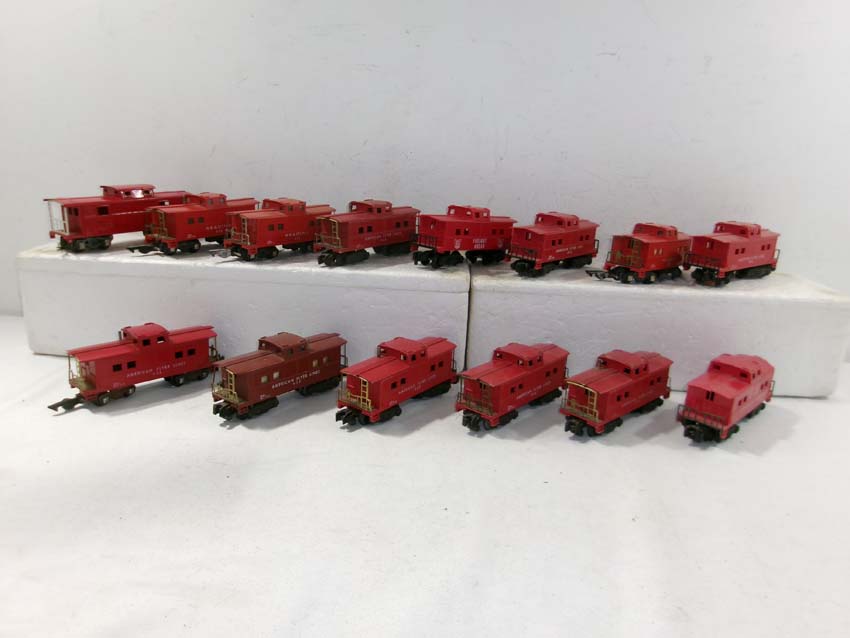 These are fourteen Assorted Cabooses (1 operating, 1 O gauge) that AF made in the 1950s/60s. No Boxes. Examine very closely; what is pictured is what you will receive. Please add $45.00 for US-48 Shipping and Insurance (more west of the Mississippi).