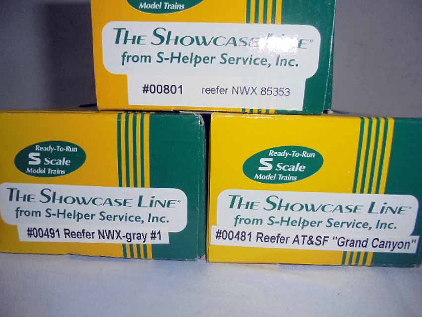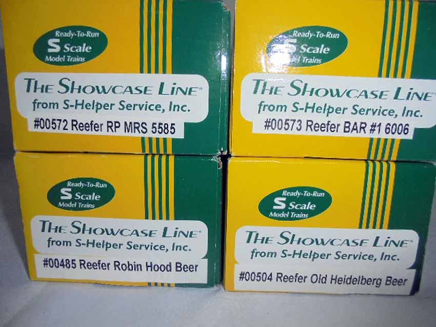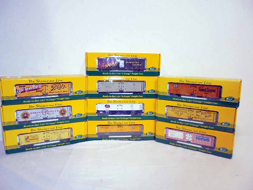 These are ten Assorted Showcase Line S Gauge Reefers. Original Boxes. All Original in our Opinion. Examine closely; what is pictured is what you will receive. Please add $50.00 for US-48 Shipping and Insurance (more west of the Mississippi).