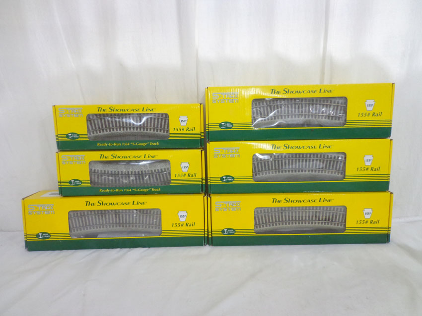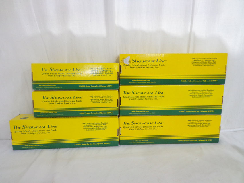 These are the Showcase Line S Gauge two #00292 19 Radius Curved Track and four #00259 25 Radius Track. Original Boxes. Examine very closely; what is pictured is what you will receive. Please add $40.00 for US-48 Shipping and Insurance (more west of the Mississippi). |
