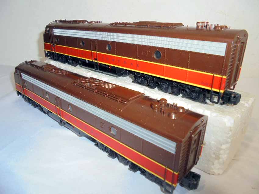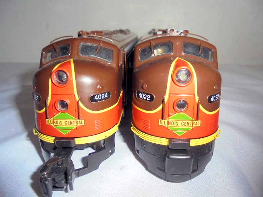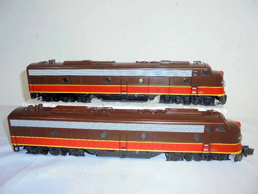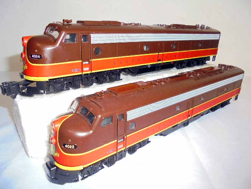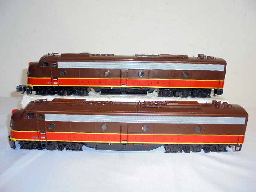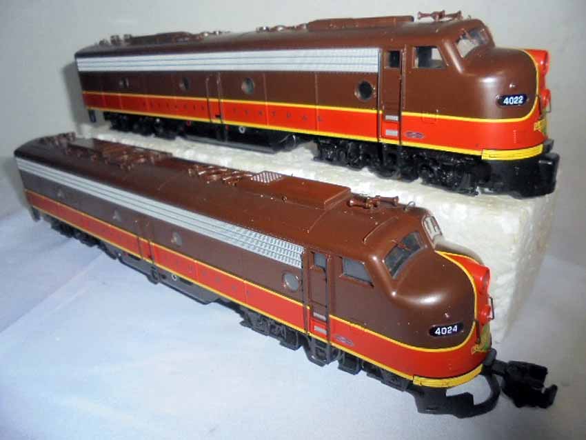 These are the American Models S Gauge Illinois Central EMD E8 2 Unit Diesel Locomotives. Original Box. All Original in our Opinion. Please add $30.00 for US-48 Shipping and Insurance (more west of the Mississippi).