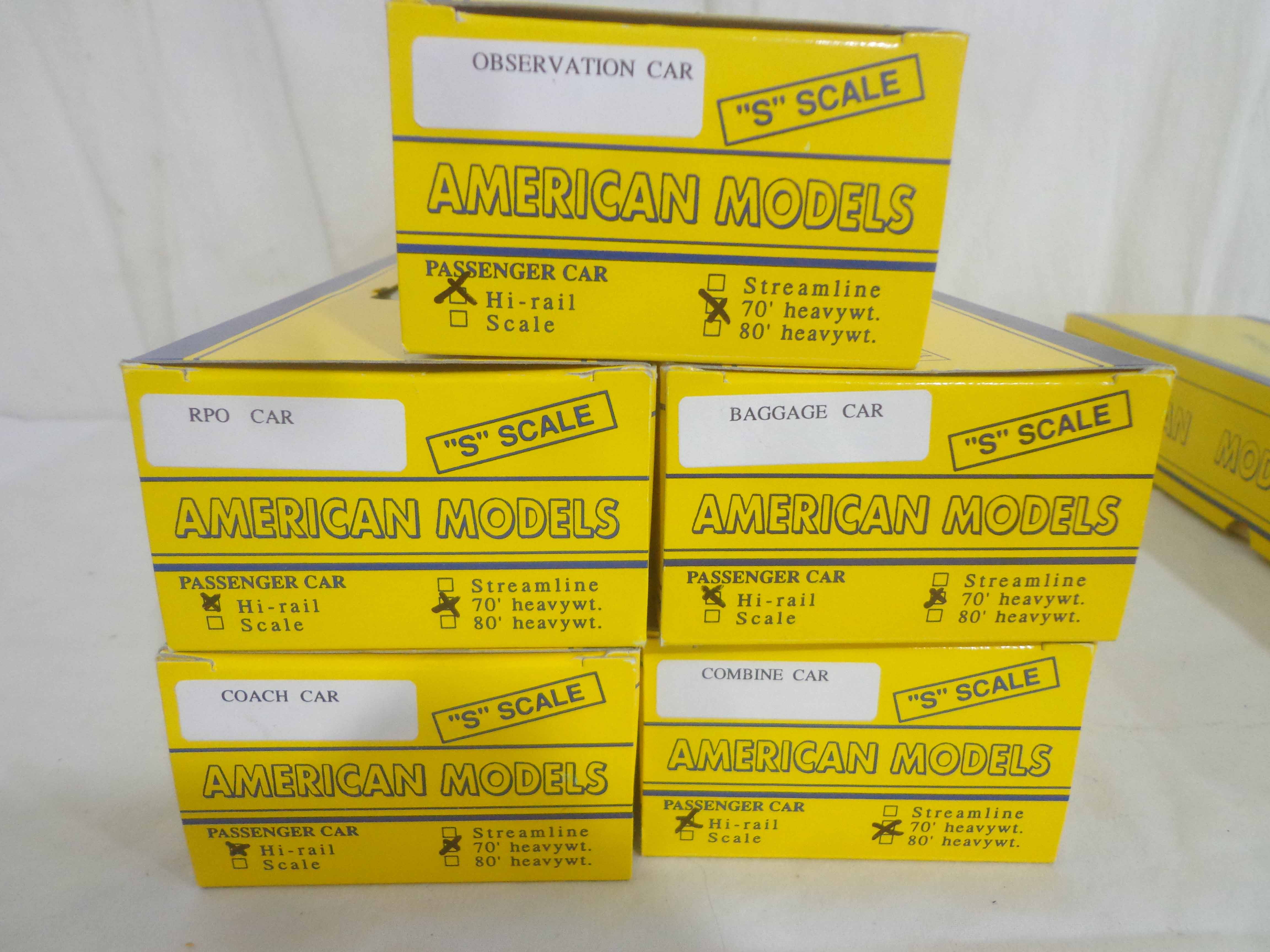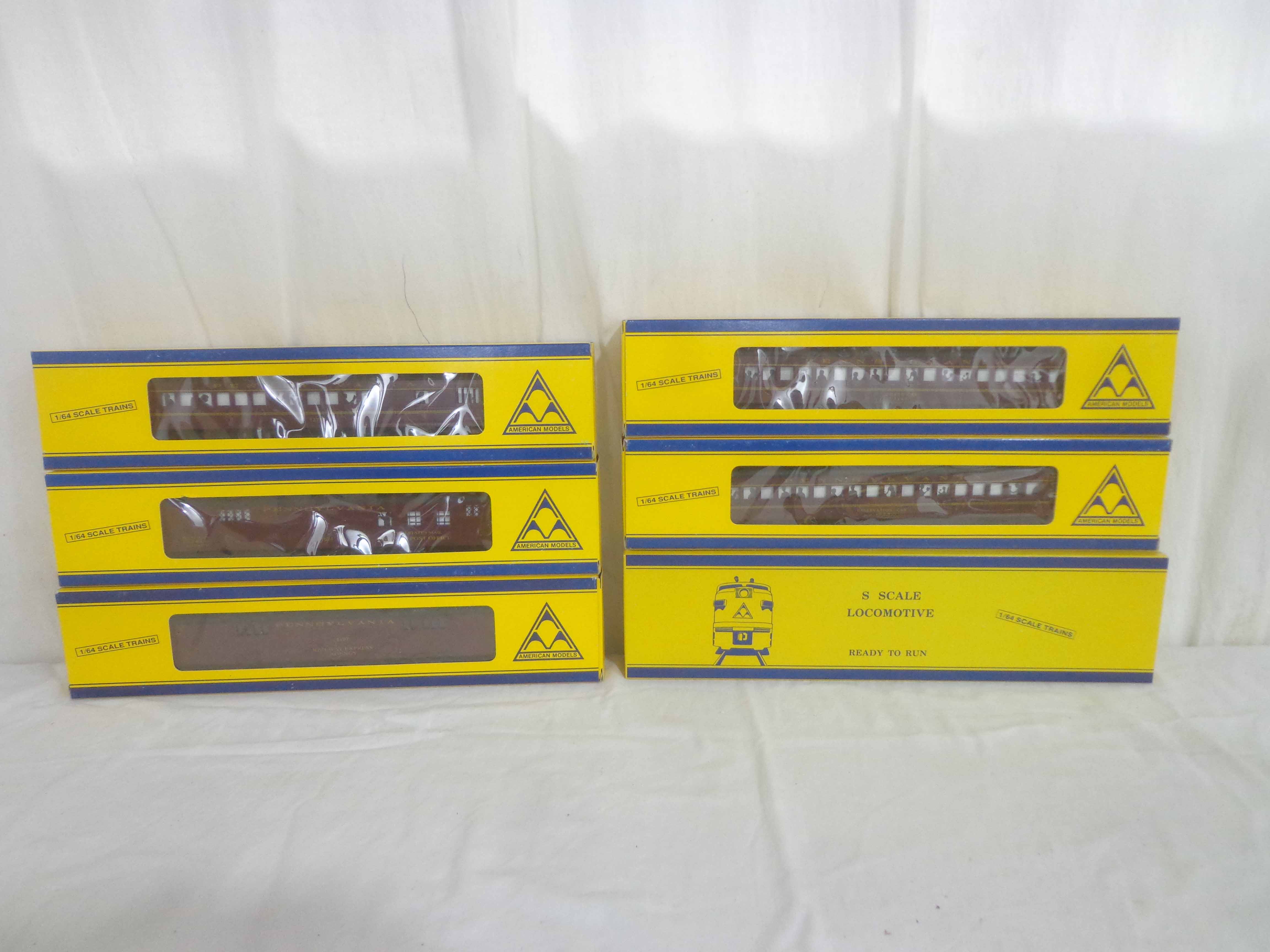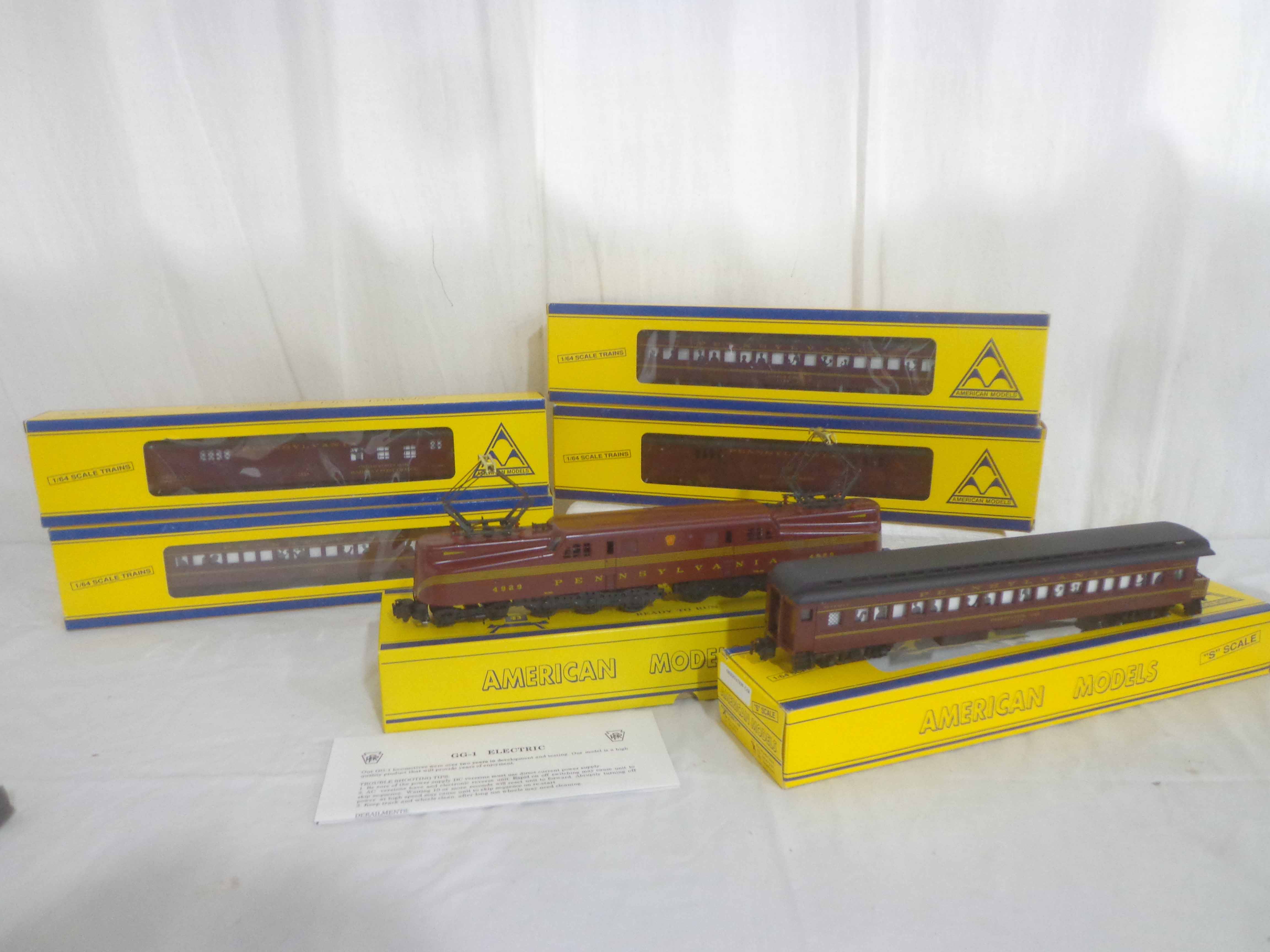 These are the American Models S Gauge #4929 Pennsylvania GG-1 and #1107/1289/1377/1468/1624 Pennsylvania Passenger Cars. Original Boxes. Examine closely; what is pictured is what you will receive. Please add $50.00 for US-48 Shipping and Insurance (more west of the Mississippi).