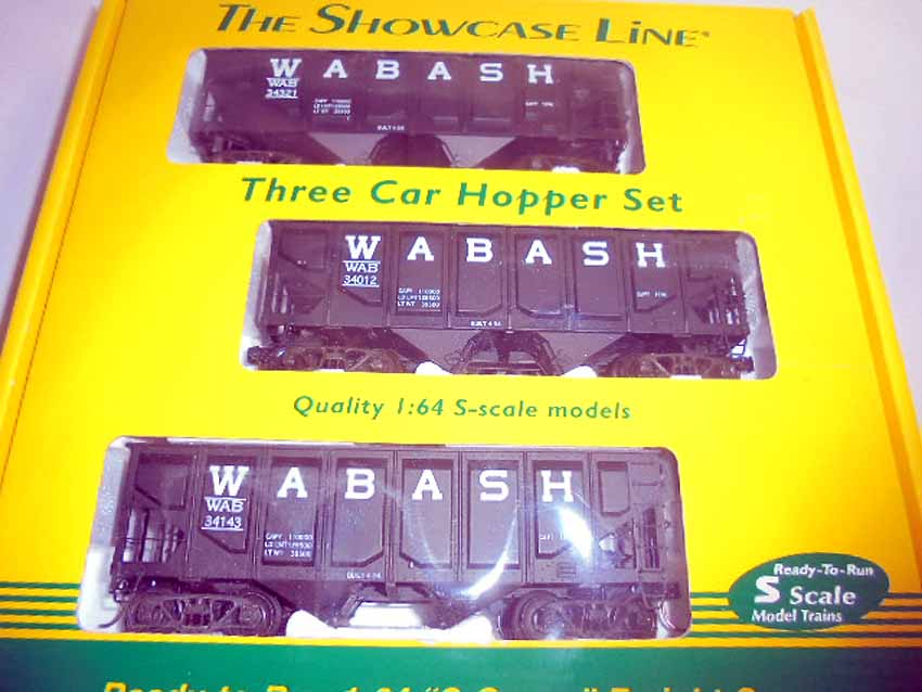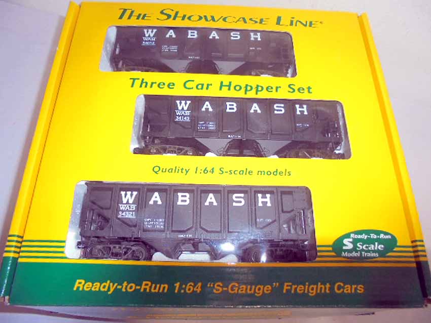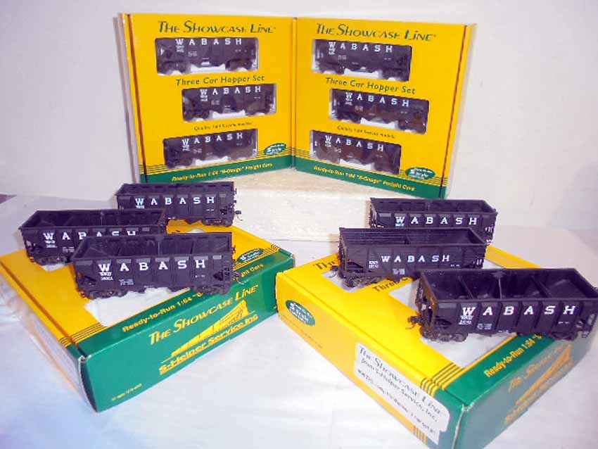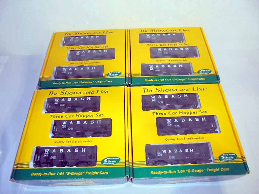 Showcase Line S Gauge: #00782 Wabash Comp Hb 3 Car Set #1 and 3 #00998 Wabash Pan Hb 3 Car Set #1/OBs (12 cars)
