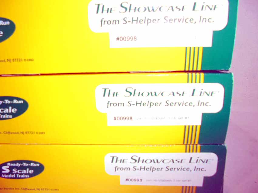 These are the #00782 Wabash Comp Hb 3 Car Set #1 and three #00998 Wabash Pan Hb 3 Car Set #1 that Showcase Line made in S Gauge some time in the past (a total of 12 cars). Original Boxes. All Original in our Opinion. Please add $50.00 for US-48 Shipping and Insurance. (more west of the Mississippi). |
