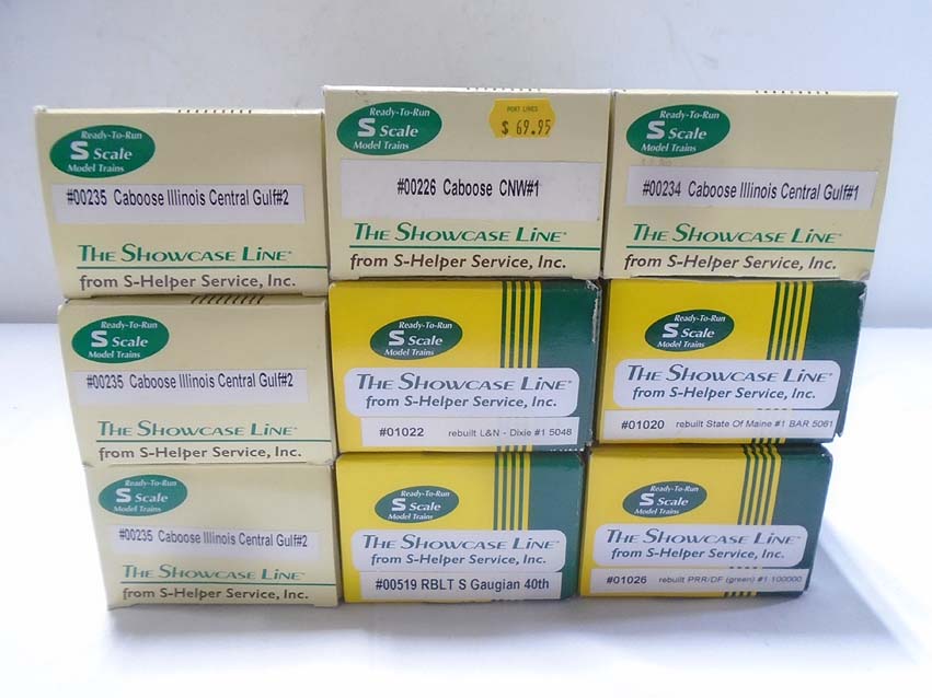 These are seven Assorted Freight Cars & Cabooses that Showcase Line made in S Gauge in the recent past. Original Boxes. Examine very closely; what is pictured is what you will receive. Please add $45.00 for US-48 Shipping and Insurance (more west of the Mississippi).