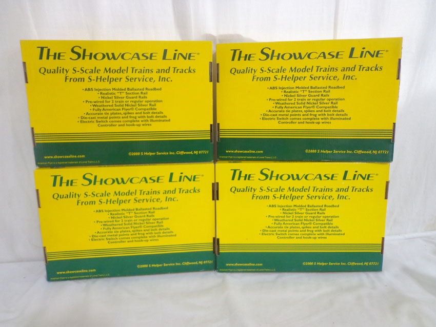 These are the Showcase Line S Gauge two #00299 Remote Control Left Hand Switches and two #00298 Remote Control Right Hand Switches. Original Boxes. Examine very closely; what is pictured is what you will receive. Please add $35.00 for US-48 Shipping and Insurance (more west of the Mississippi). |