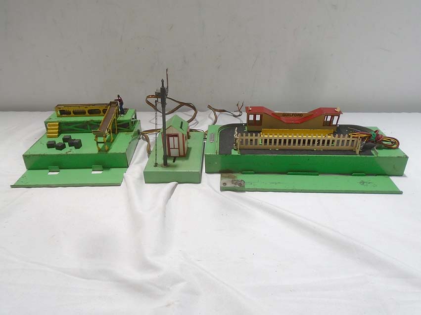 AF S Gauge: #758 Gateman Crossing Gate, #766 Passenger Station, and #770 Baggage Unloading Station