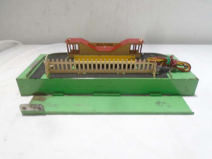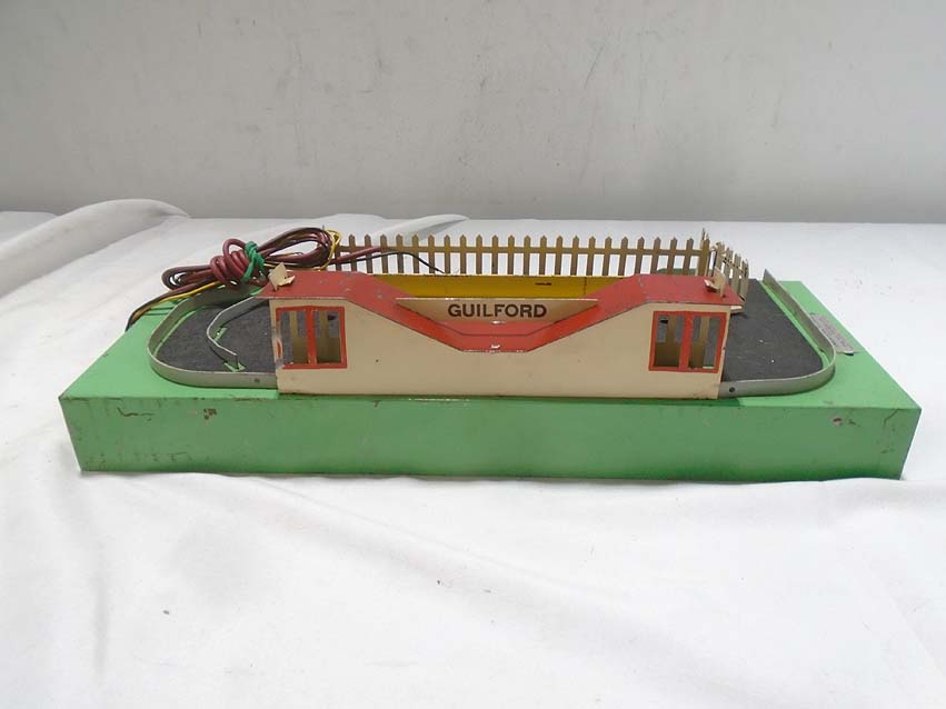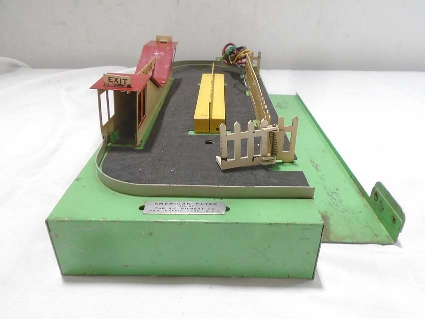 These are the #758 Gateman Crossing Gate, #766 Passenger Station, and #770 Baggage Unloading Station that American Flyer made in S Gauge in the 1940s/50s. As Is. No Boxes. Examine closely; what is pictured is what you will receive. Please add $40.00 for US-48 Shipping and Insurance (more west of the Mississippi).